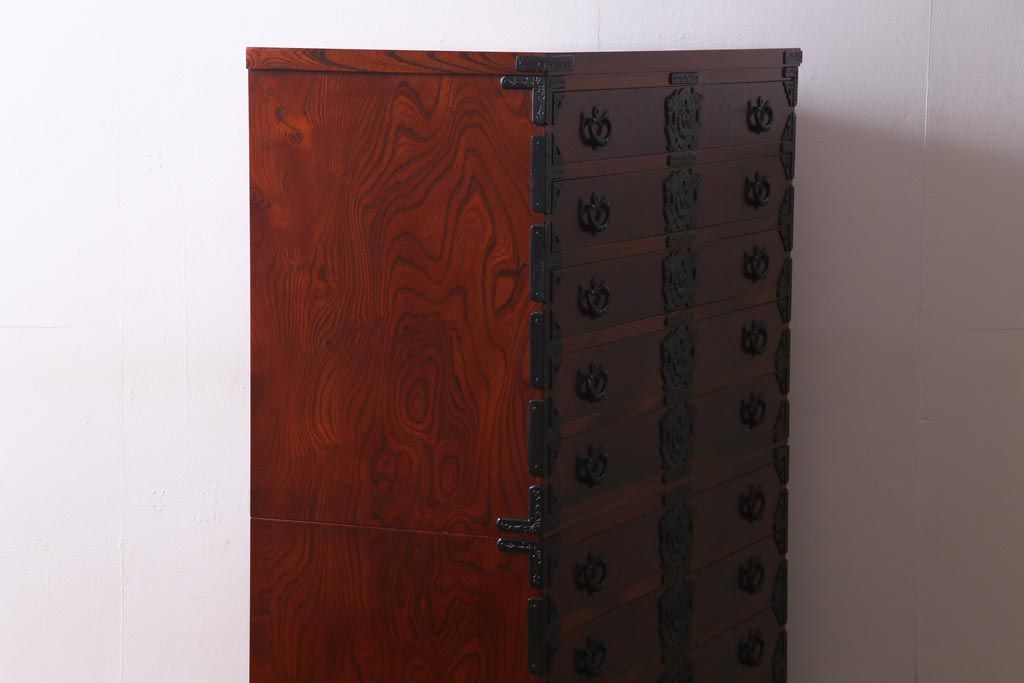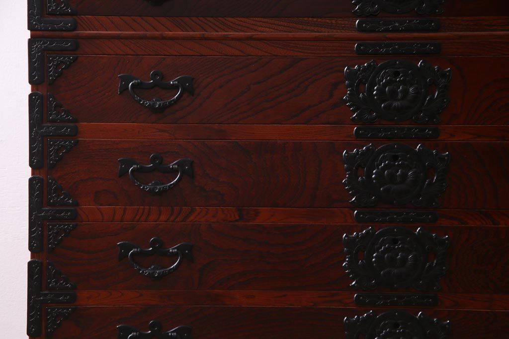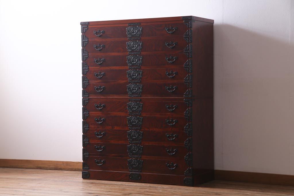 和箪笥> 着物箪笥 > 中古 岩谷堂箪笥 ケヤキ材 引き出し10杯 荘厳な印象を与える重宝箪笥(着物箪笥、呉服箪笥、小袖箪笥)(定価約65万円)(R-037437)