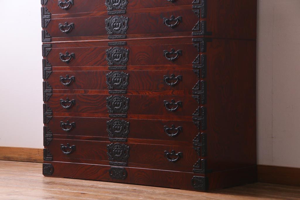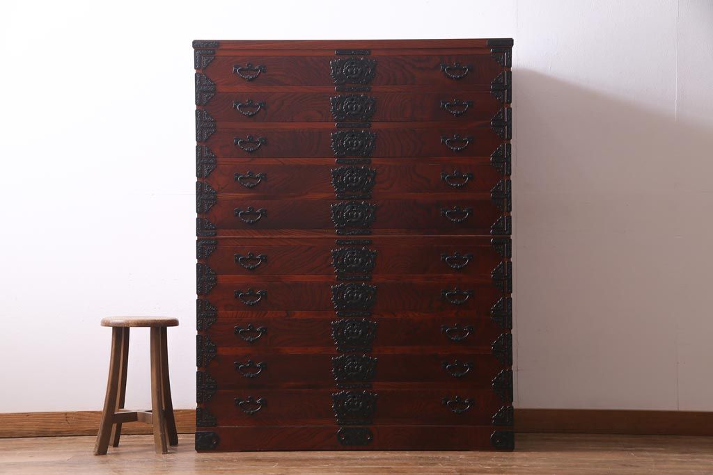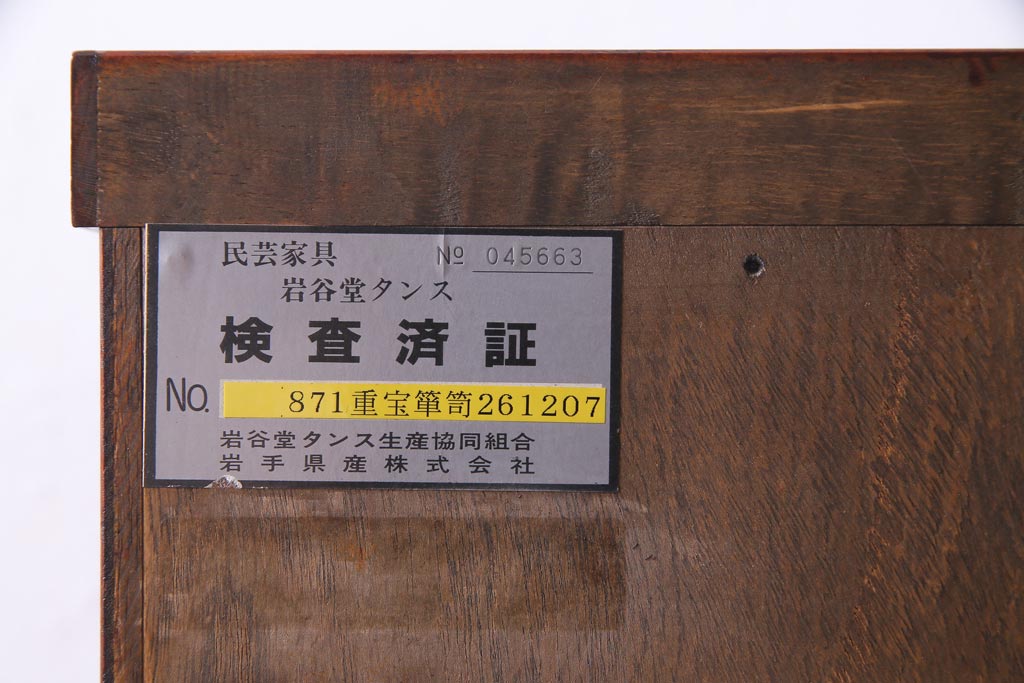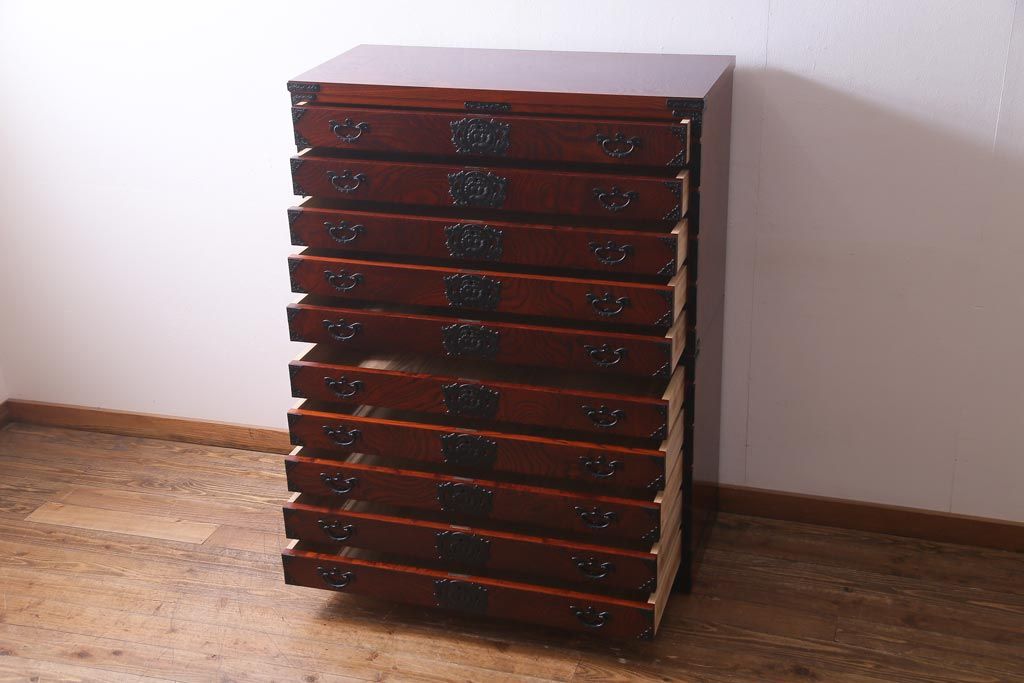 民芸家具 > 中古 岩谷堂箪笥 ケヤキ材 引き出し10杯 荘厳な印象を与える重宝箪笥(着物箪笥、呉服箪笥、小袖箪笥)(定価約65万円)(R-037437)