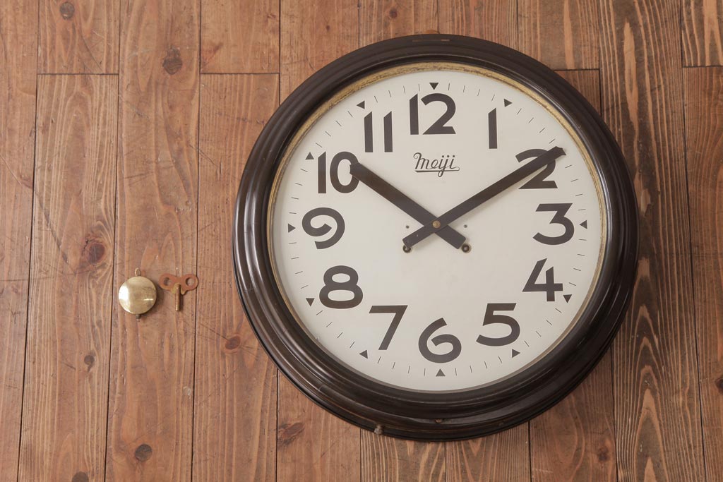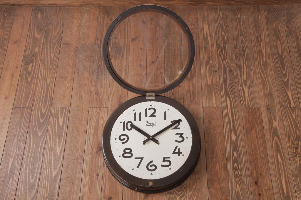 時計> 掛け時計 > アンティーク雑貨 レトロ雑貨 特大サイズ! Meiji(明治時計社) 手巻き式 トーマス型 丸型掛時計(壁掛け時計、柱時計、振り子時計)(R-037475)