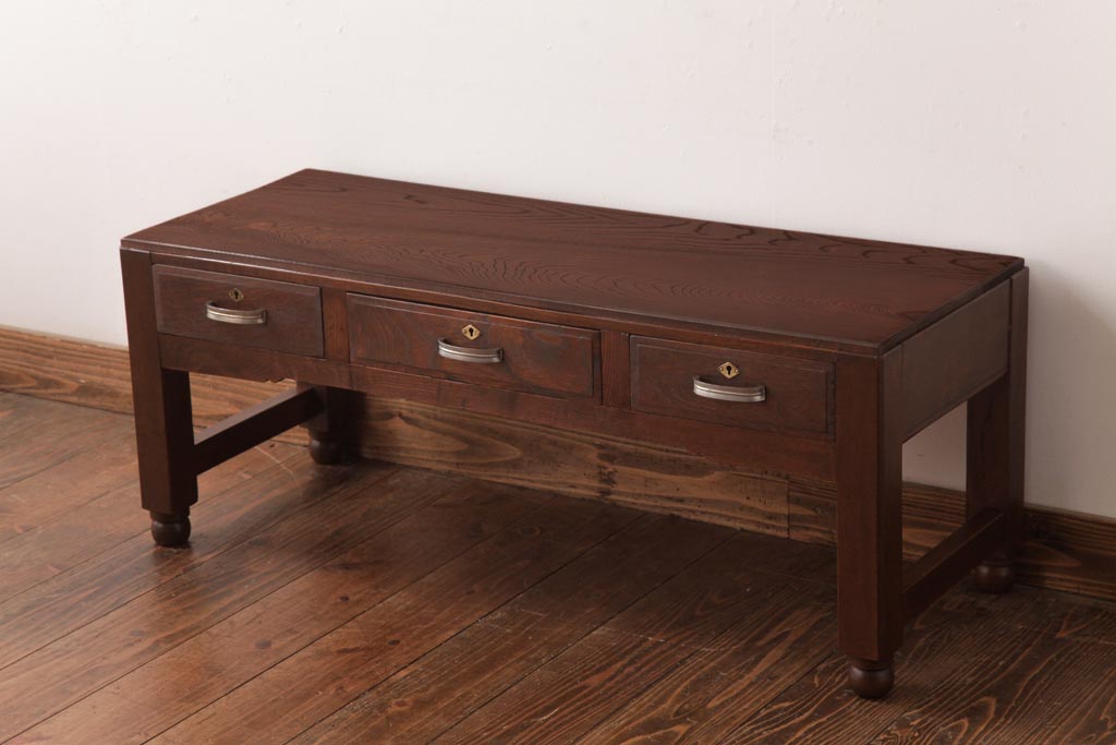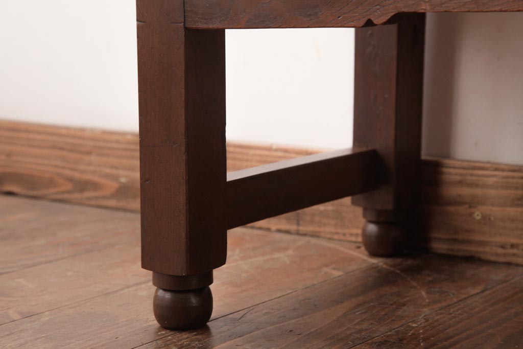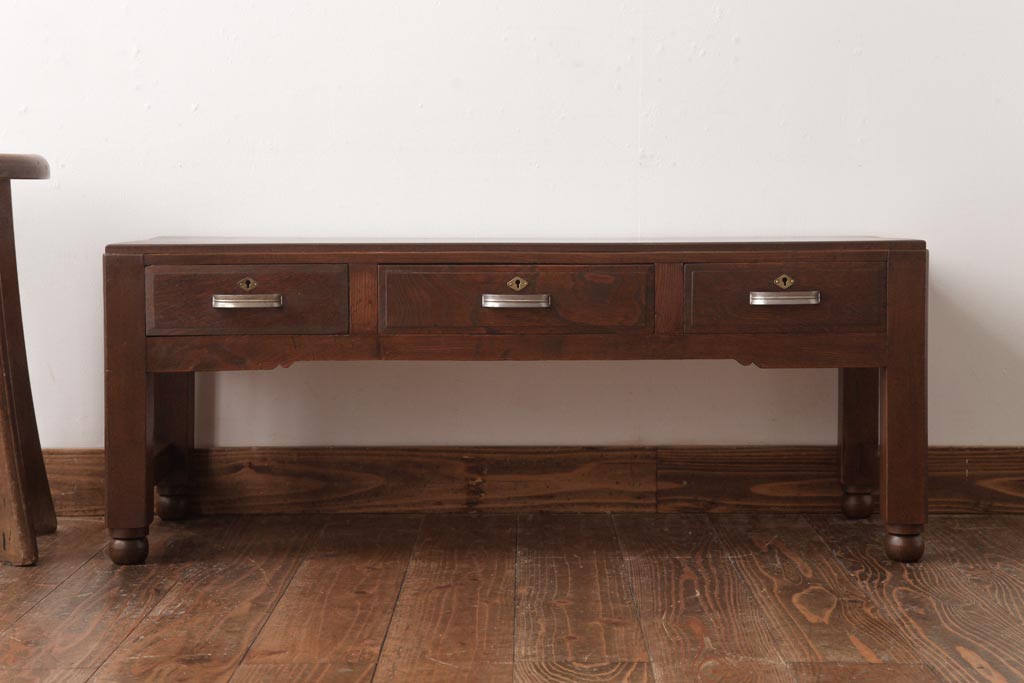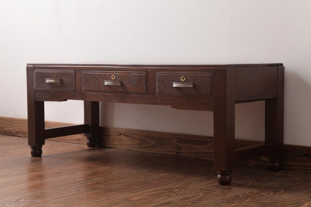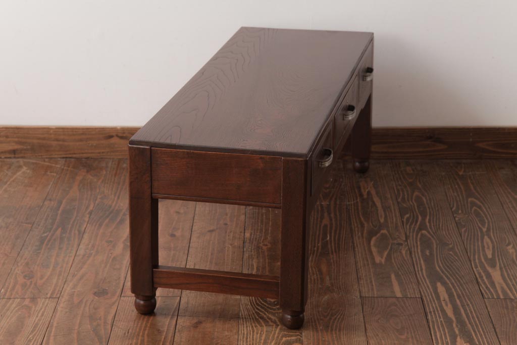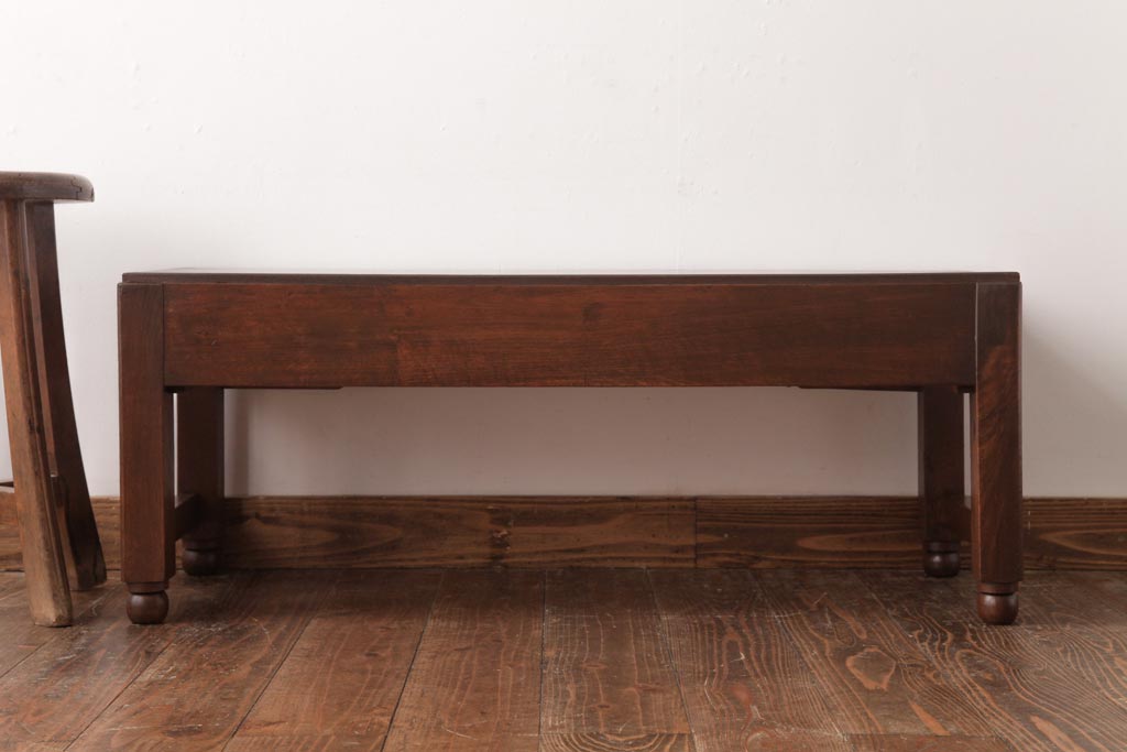 アンティーク家具 薄型 丸脚がレトロな栓材製の文机(ローテーブル、センターテーブル)(R-037441)