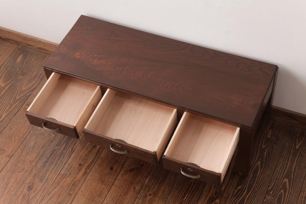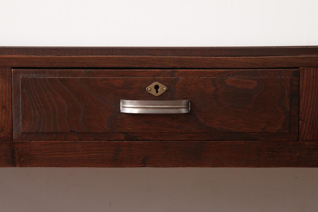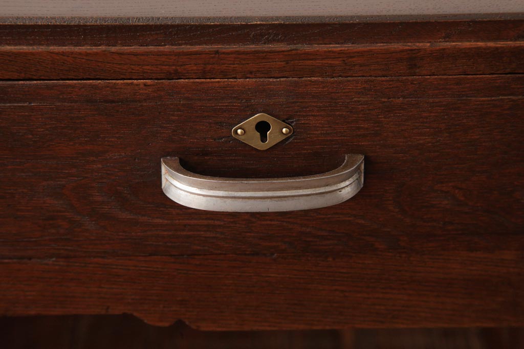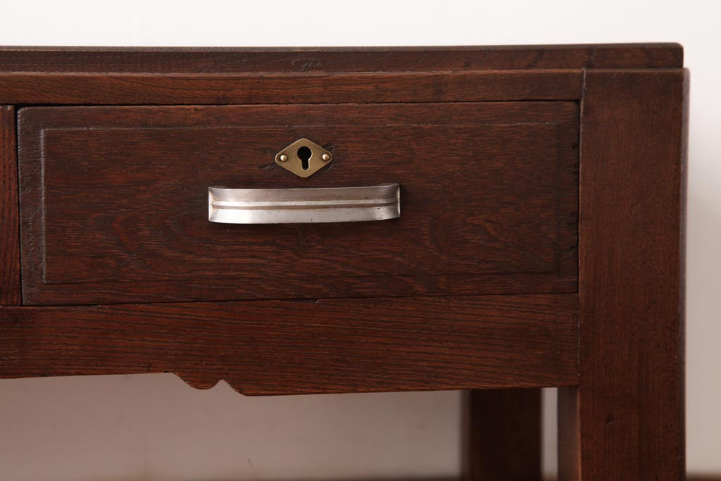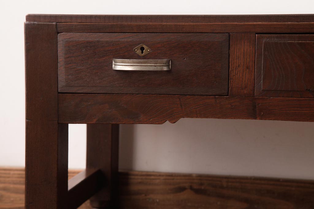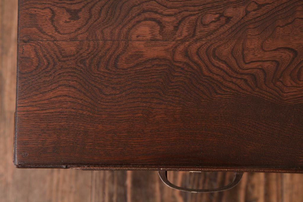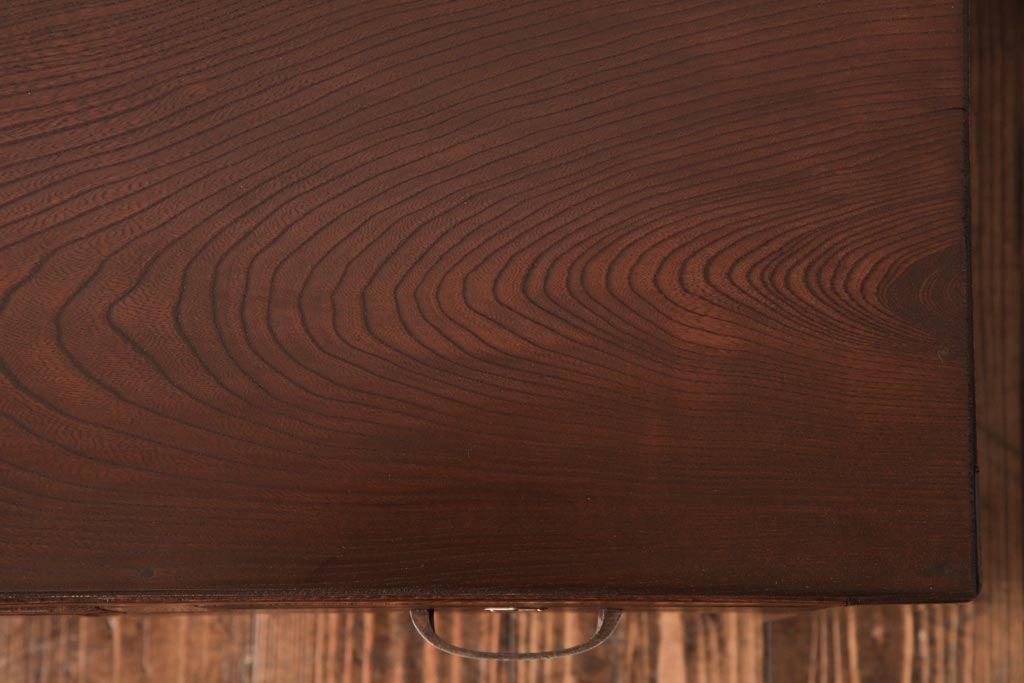 アンティーク家具 薄型 丸脚がレトロな栓材製の文机(ローテーブル、センターテーブル)(R-037441)