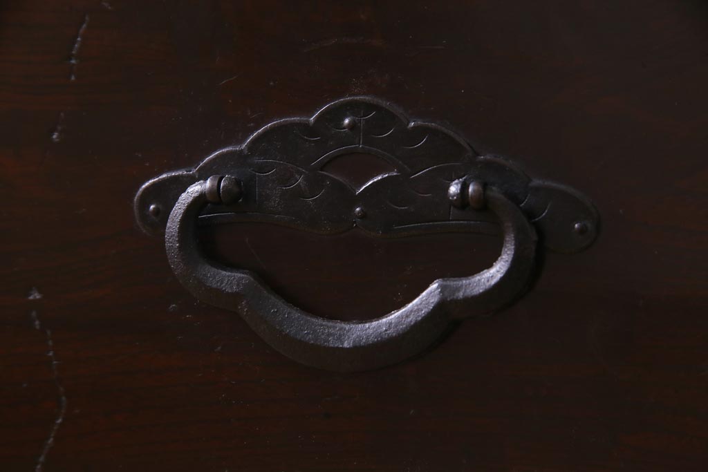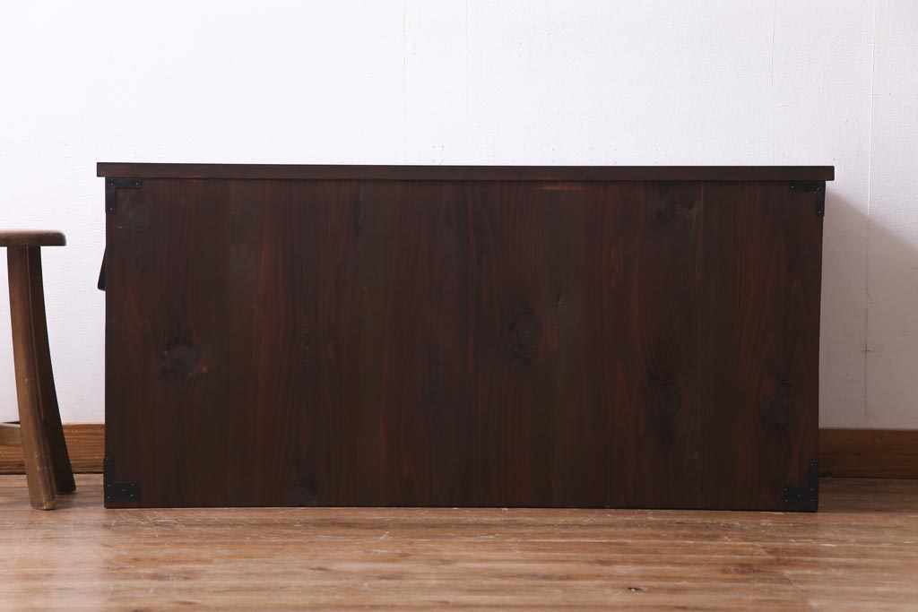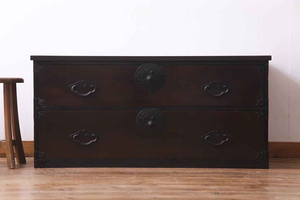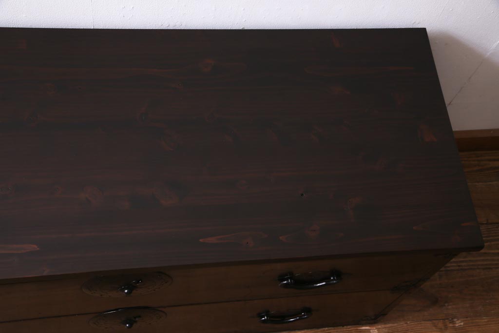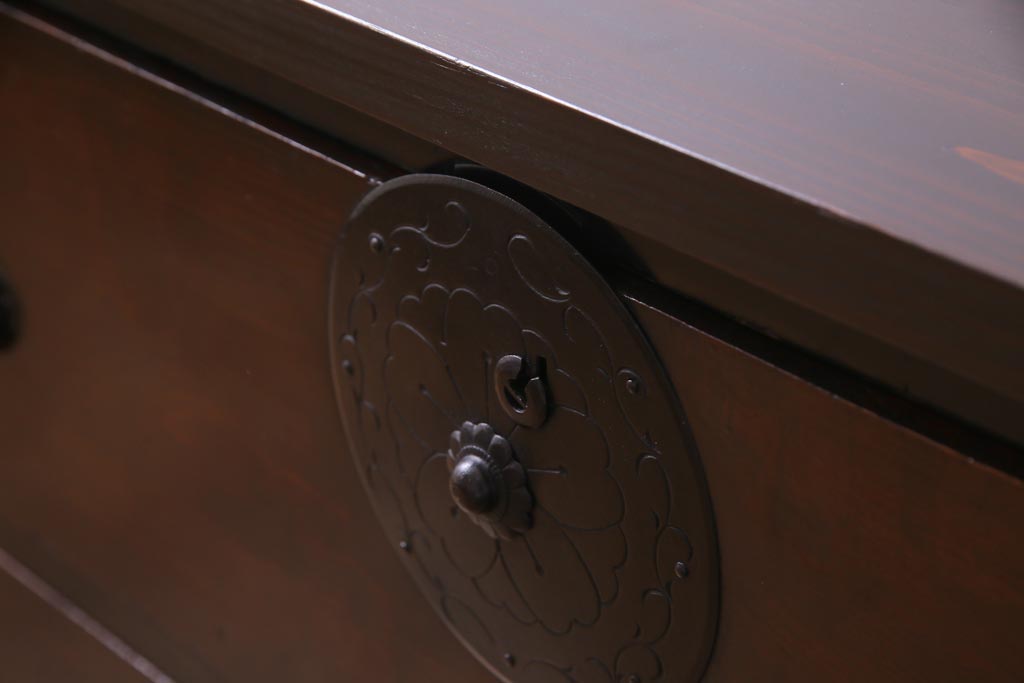 ラフジュ工房> チェスト・引き出し> ローチェスト > アンティーク家具 明治期 前面栗材 天板リメイク 桜丸金具の米沢箪笥ローチェスト(引き出し)(R-037399)