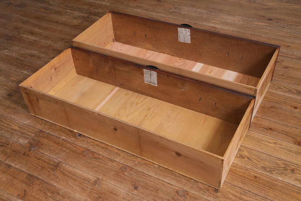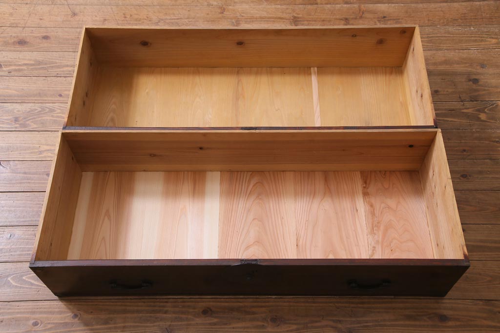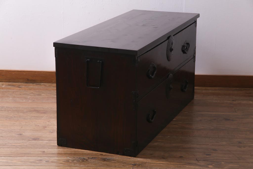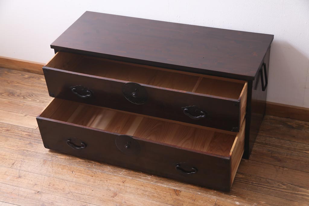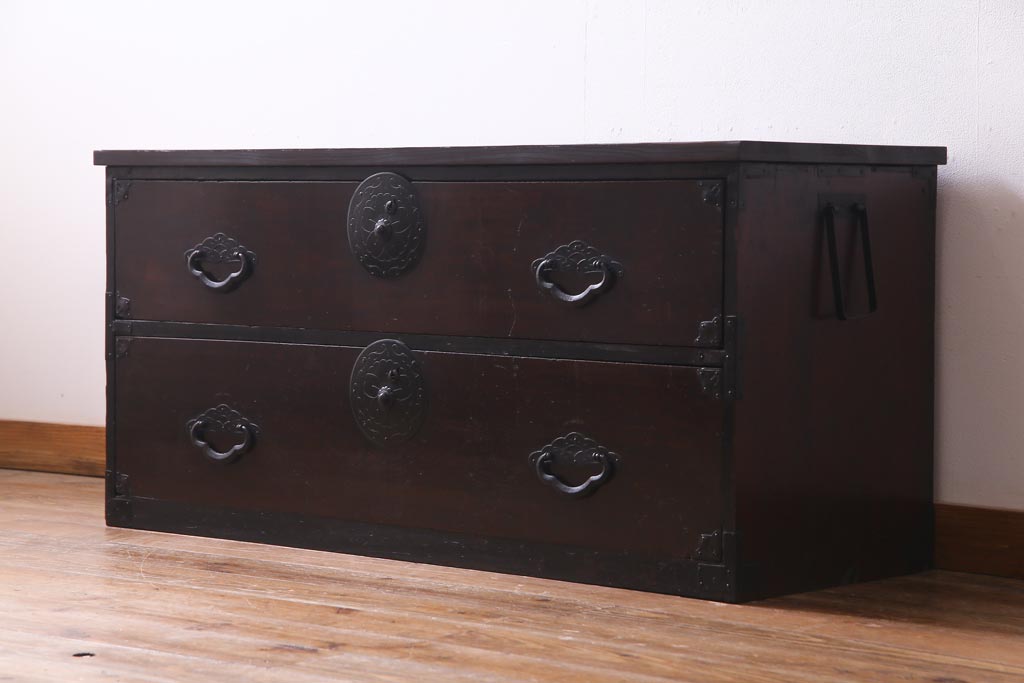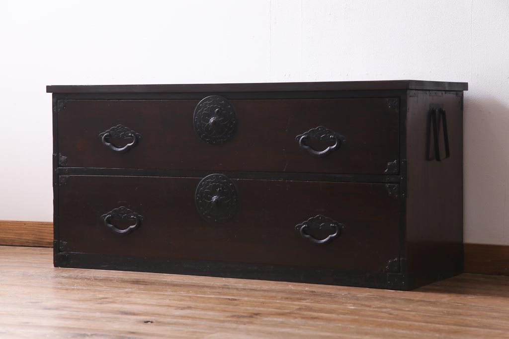 ラフジュ工房> チェスト・引き出し> ローチェスト > アンティーク家具 明治期 前面栗材 天板リメイク 桜丸金具の米沢箪笥ローチェスト(引き出し)(R-037399)