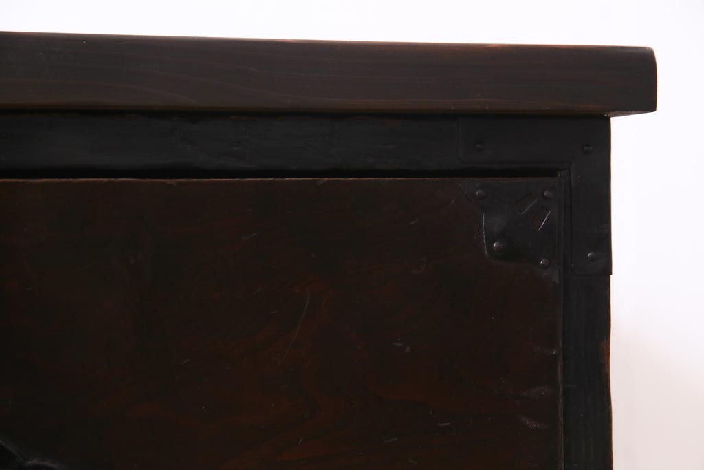 ラフジュ工房> キャビネット・戸棚> テレビ台・ローボード > アンティーク家具 明治期 前面栗材 天板リメイク 桜丸金具の米沢箪笥ローチェスト(引き出し)(R-037399)