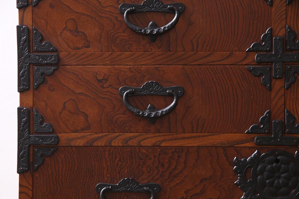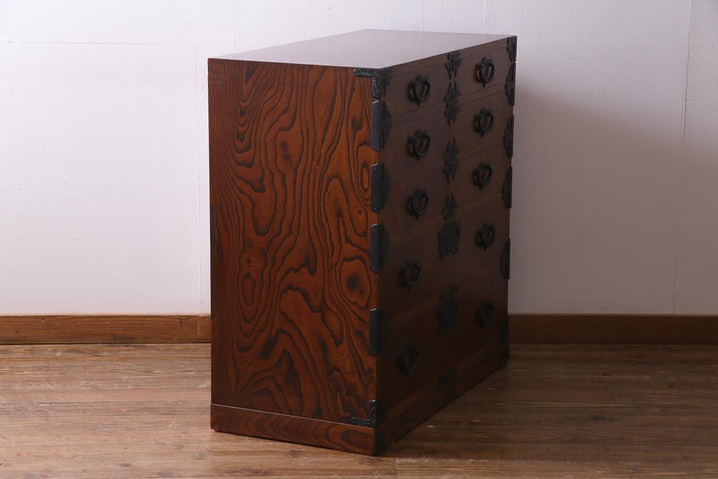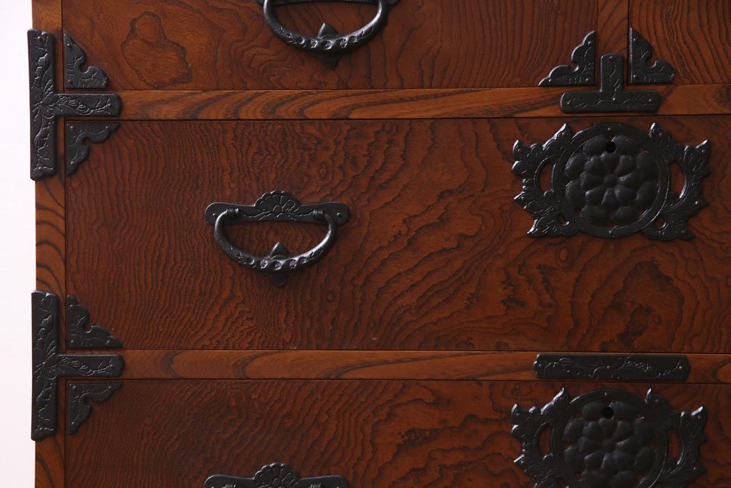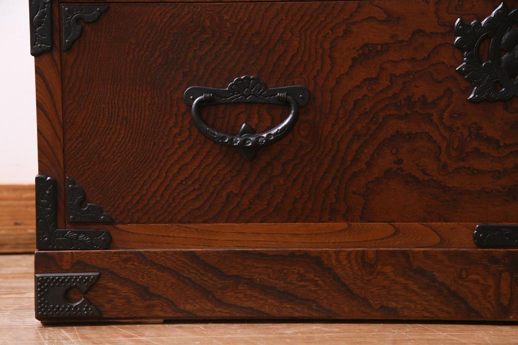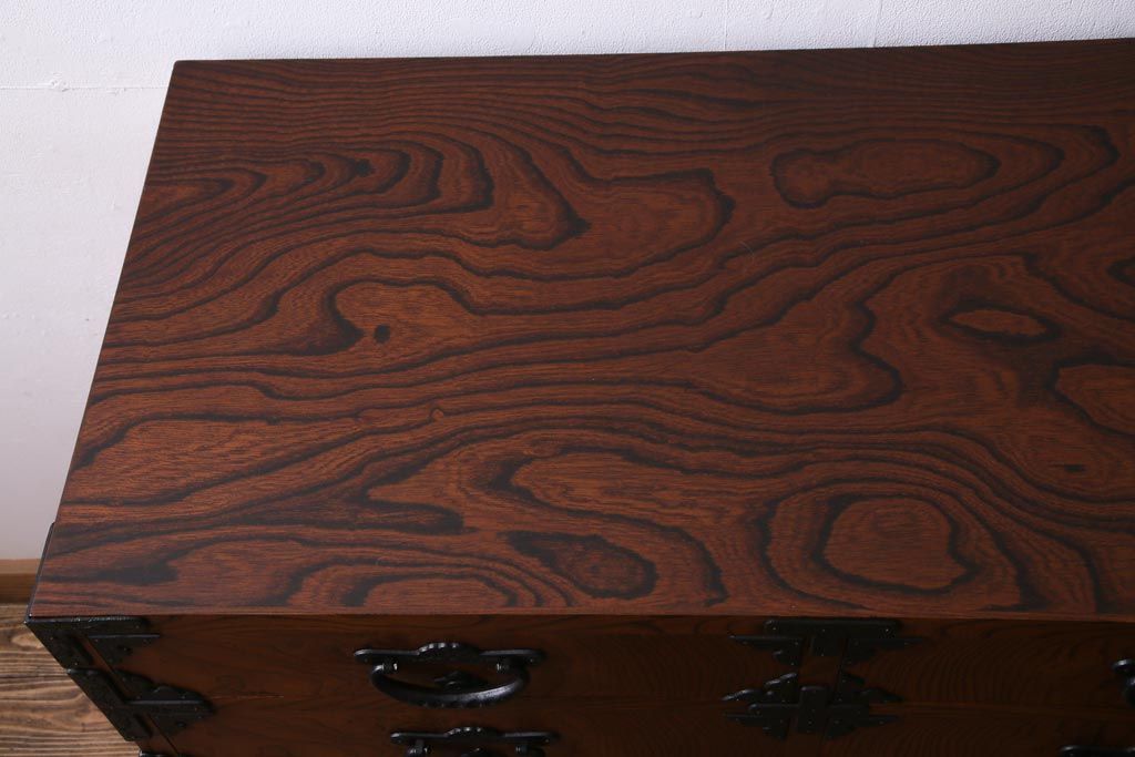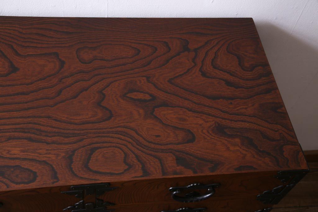 中古 岩谷堂箪笥 迫力のある杢目のビンテージ衣装箪笥(整理箪笥、チェスト)(R-037452)