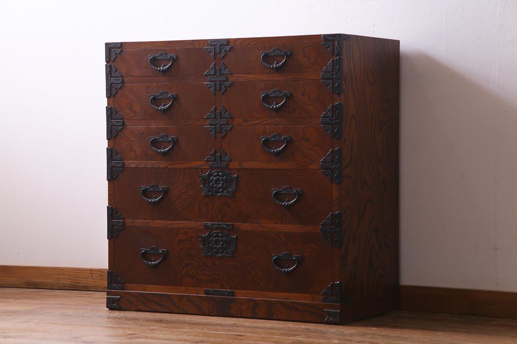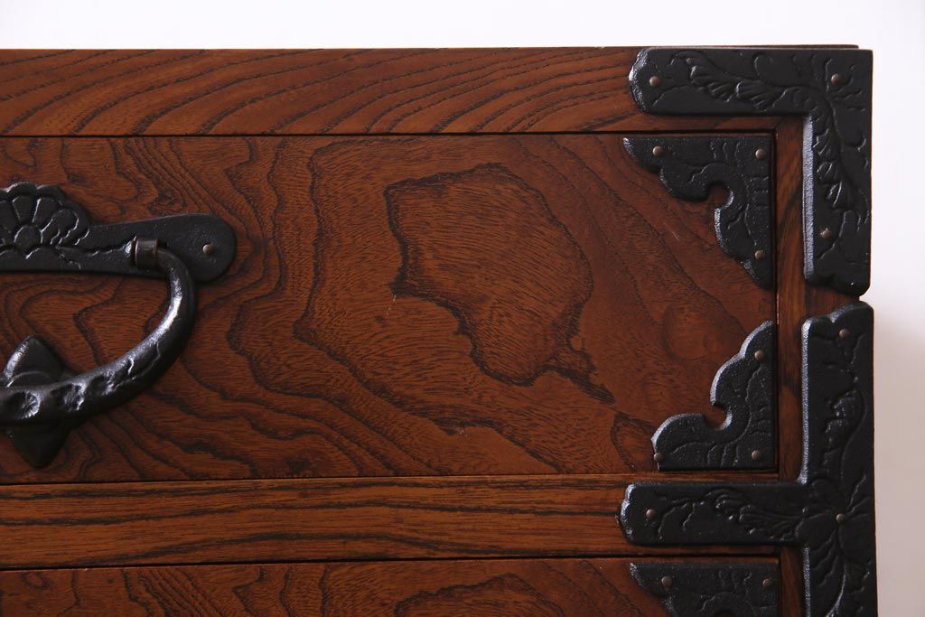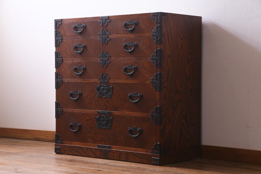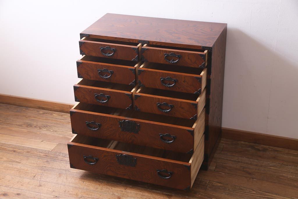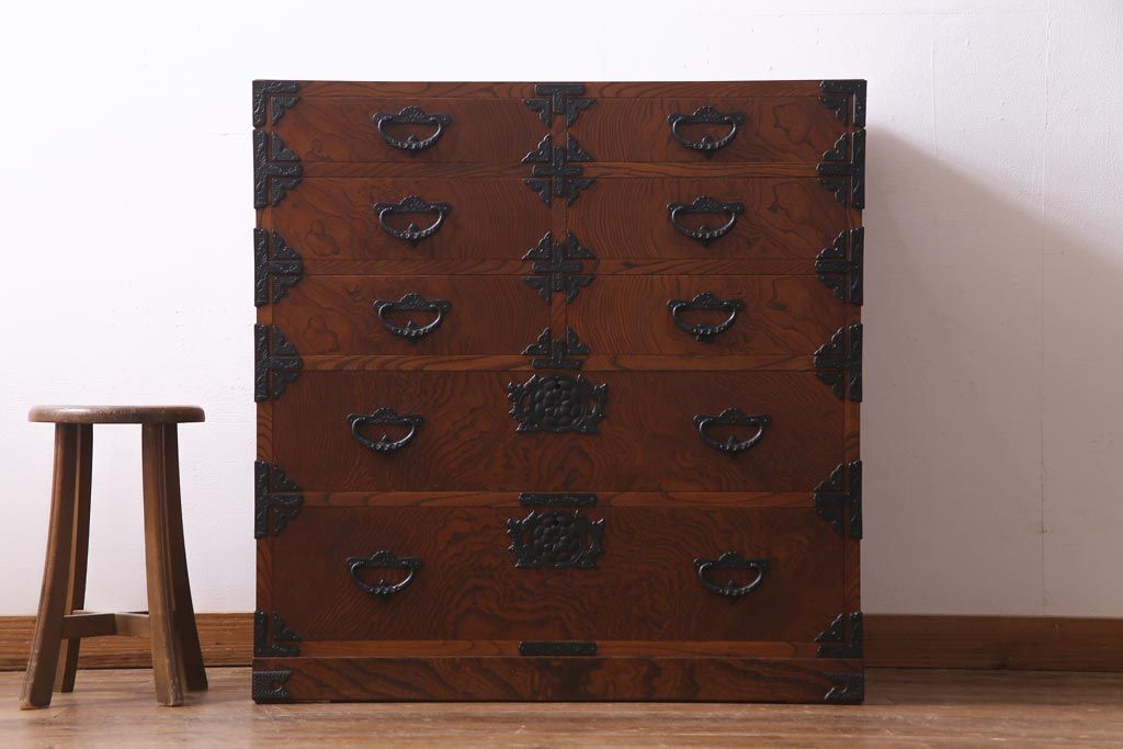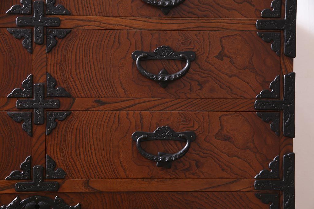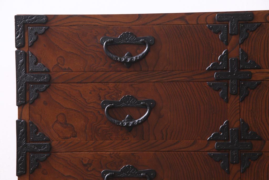中古 岩谷堂箪笥 迫力のある杢目のビンテージ衣装箪笥(整理箪笥、チェスト)(R-037452)