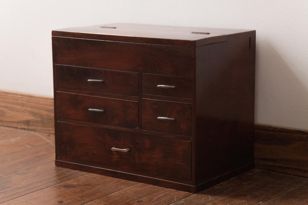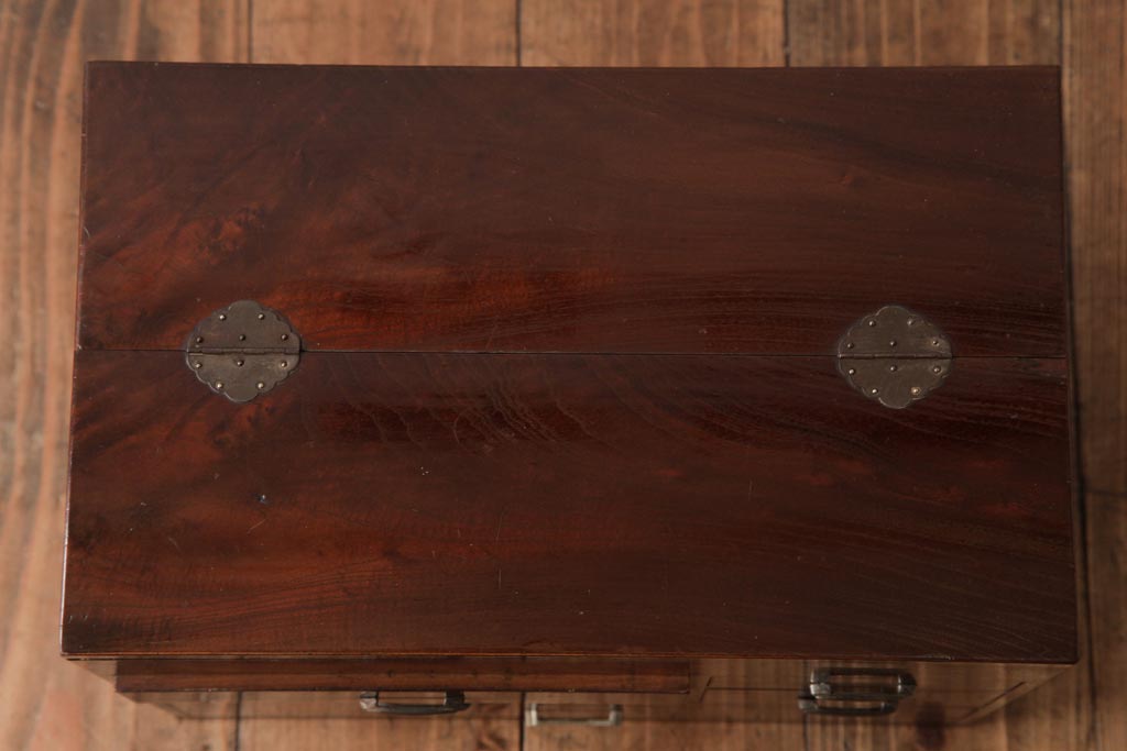 ラフジュ工房> 小物収納・トランク> 裁縫箱・ソーイングボックス > アンティーク家具 和製アンティーク 桑材貼り 上品でレトロな裁縫箱(小引き出し、小物収納)(R-037478)