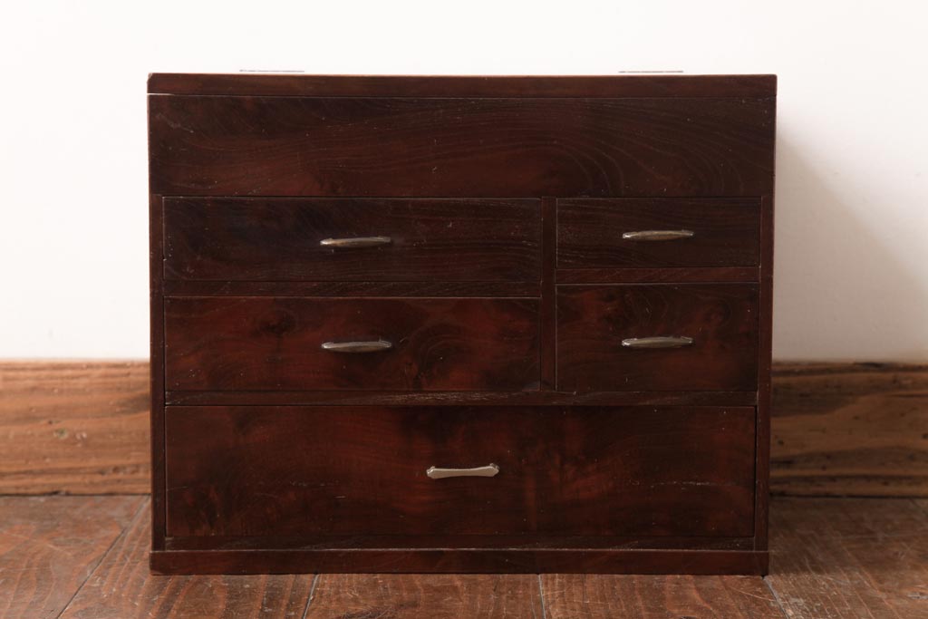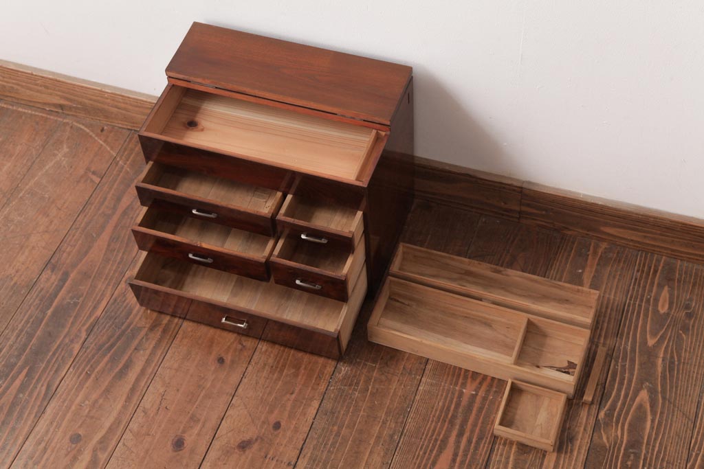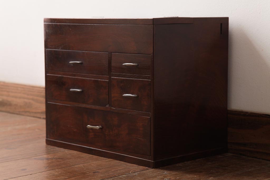 アンティーク家具 和製アンティーク 桑材貼り 上品でレトロな裁縫箱(小引き出し、小物収納)(R-037478)