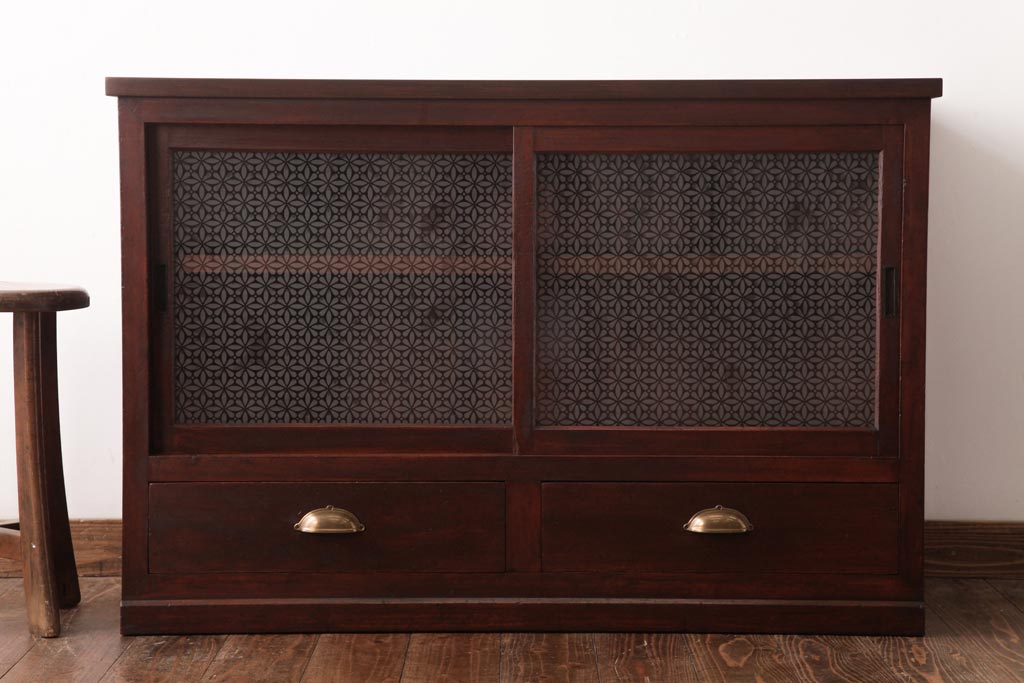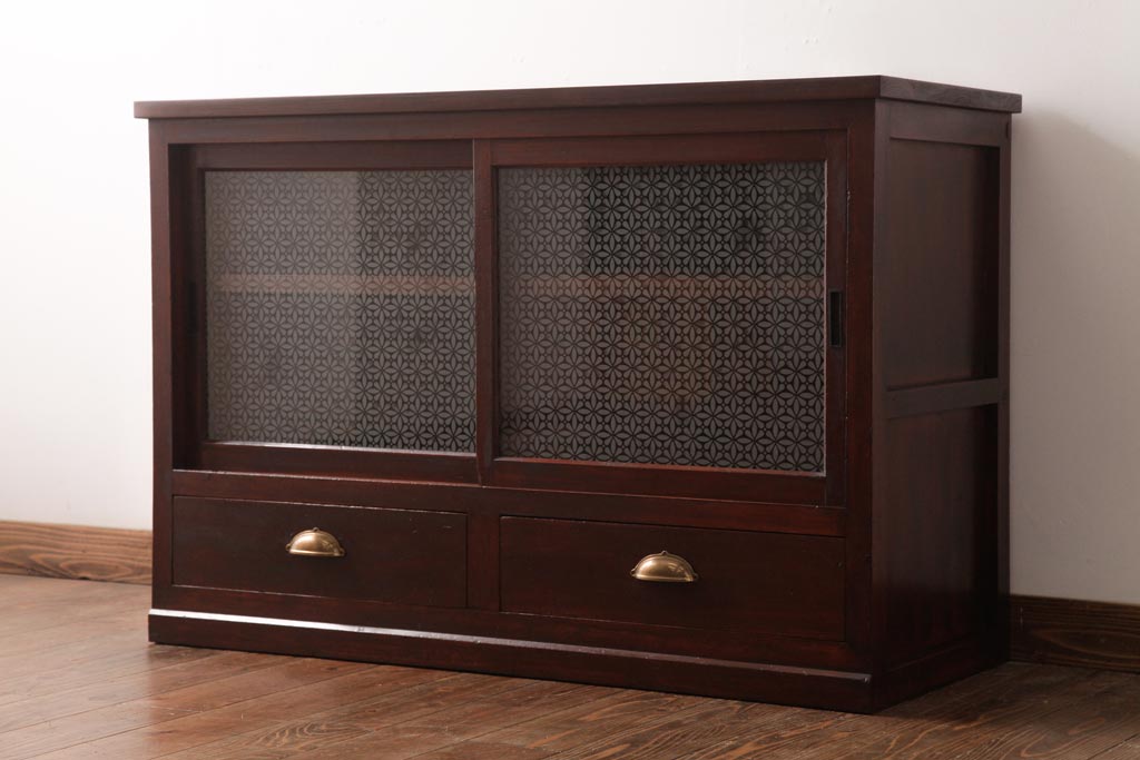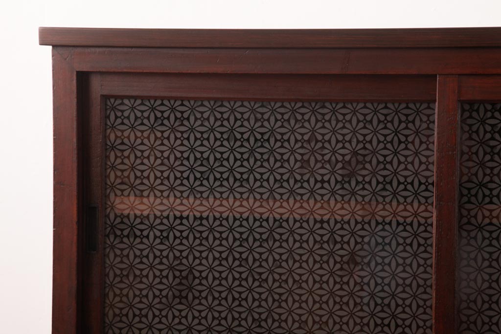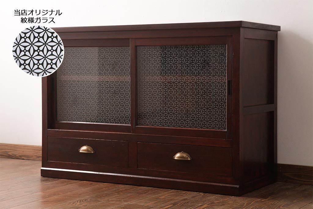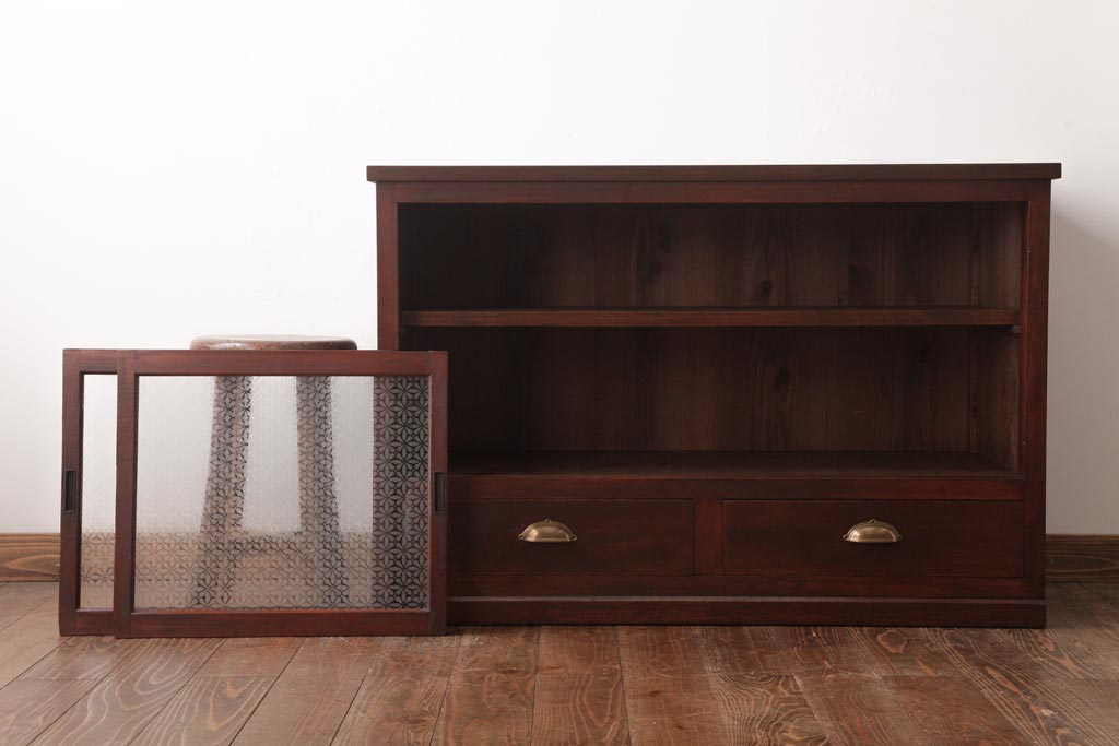 ラフジュ工房> キャビネット・戸棚> サイドキャビネット > アンティーク家具 和製アンティーク 当店オリジナルガラス 前面ヒノキ材 レトロな雰囲気漂うリメイクキャビネット(収納棚、ガラス戸棚、サイドボード)(R-037428)