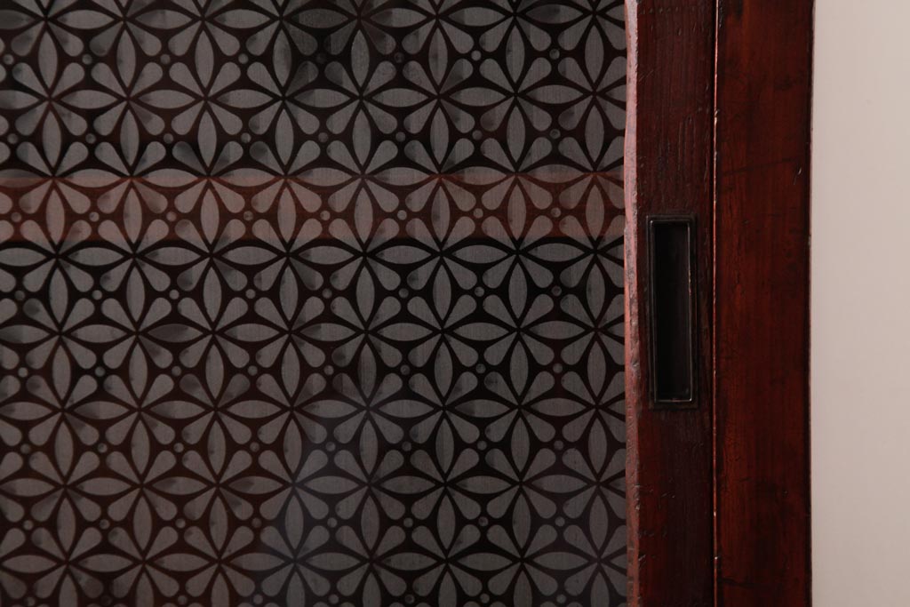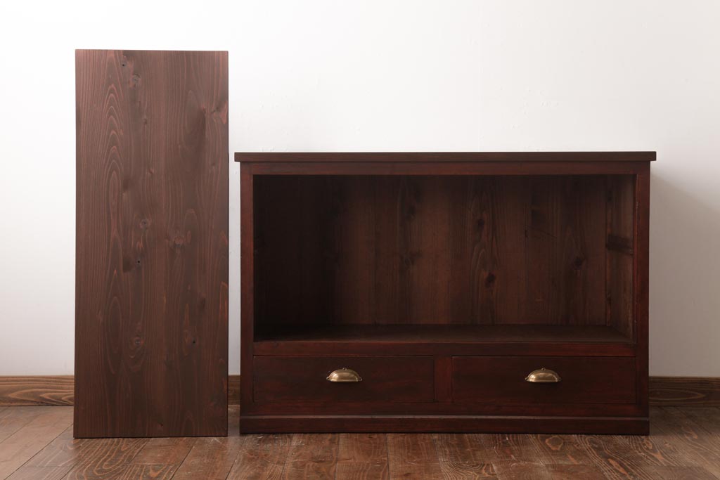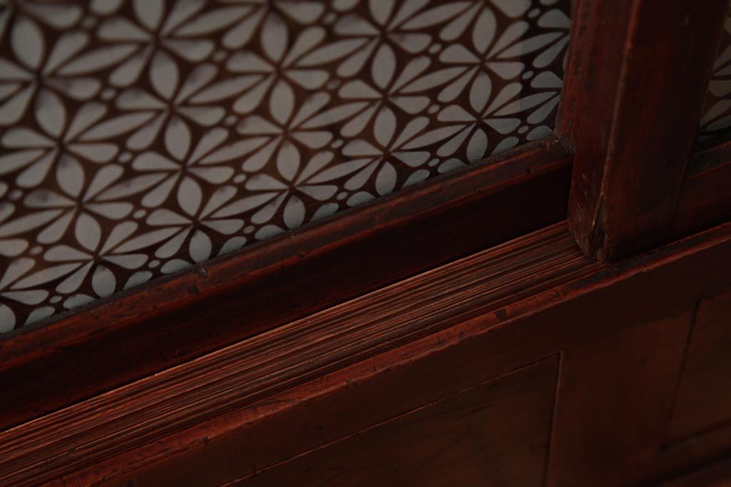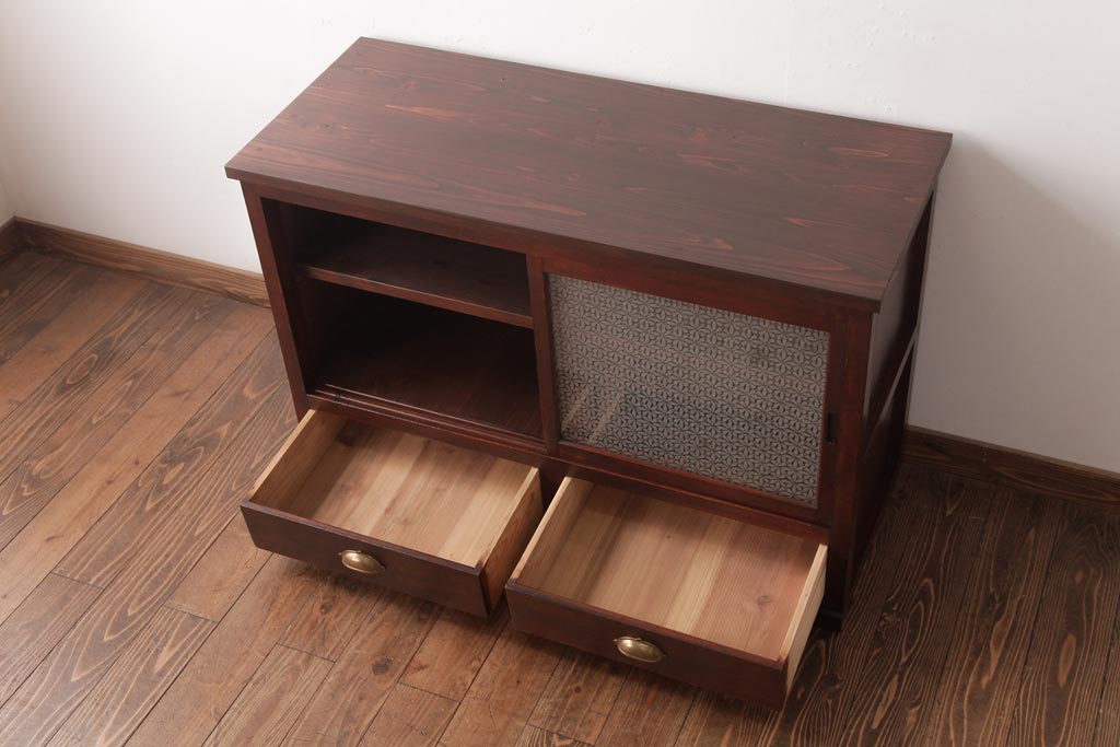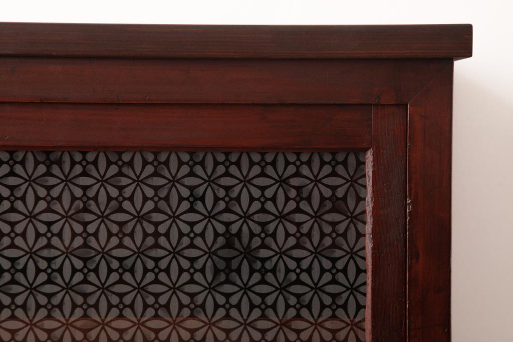 ラフジュ工房> キャビネット・戸棚> サイドキャビネット > アンティーク家具 和製アンティーク 当店オリジナルガラス 前面ヒノキ材 レトロな雰囲気漂うリメイクキャビネット(収納棚、ガラス戸棚、サイドボード)(R-037428)