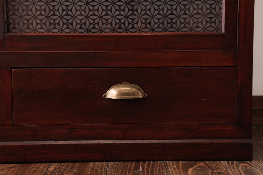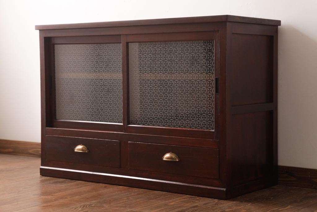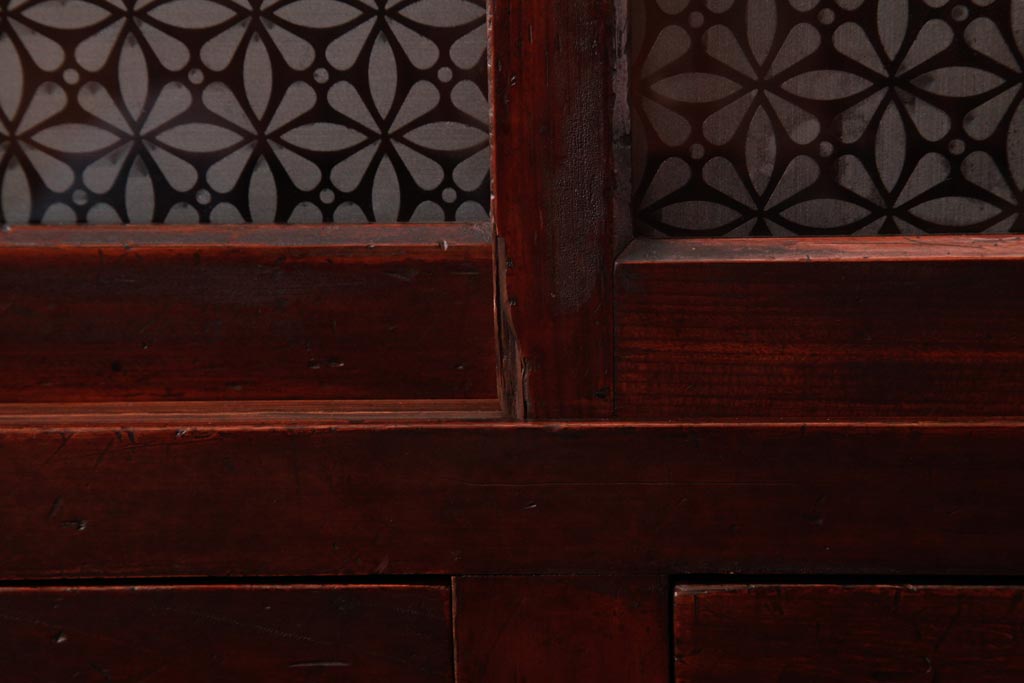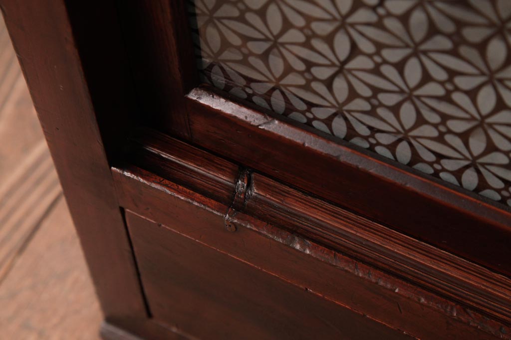 アンティーク家具 和製アンティーク 当店オリジナルガラス 前面ヒノキ材 レトロな雰囲気漂うリメイクキャビネット(収納棚、ガラス戸棚、サイドボード)(R-037428)