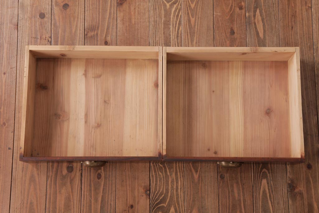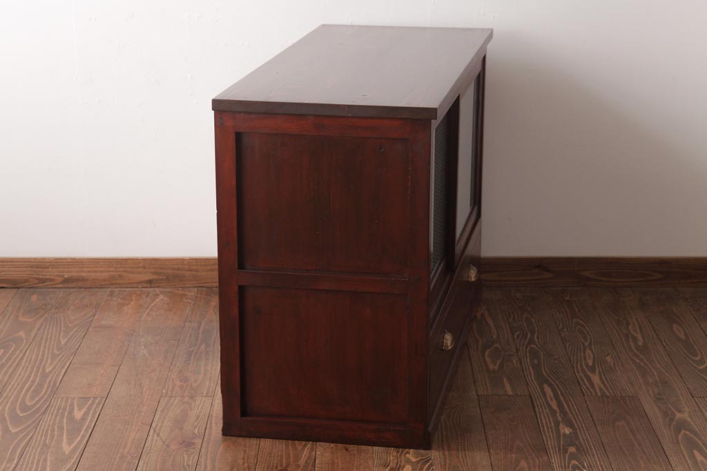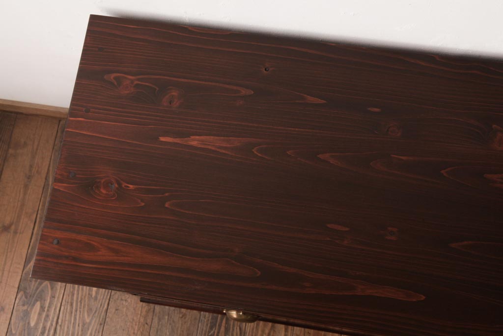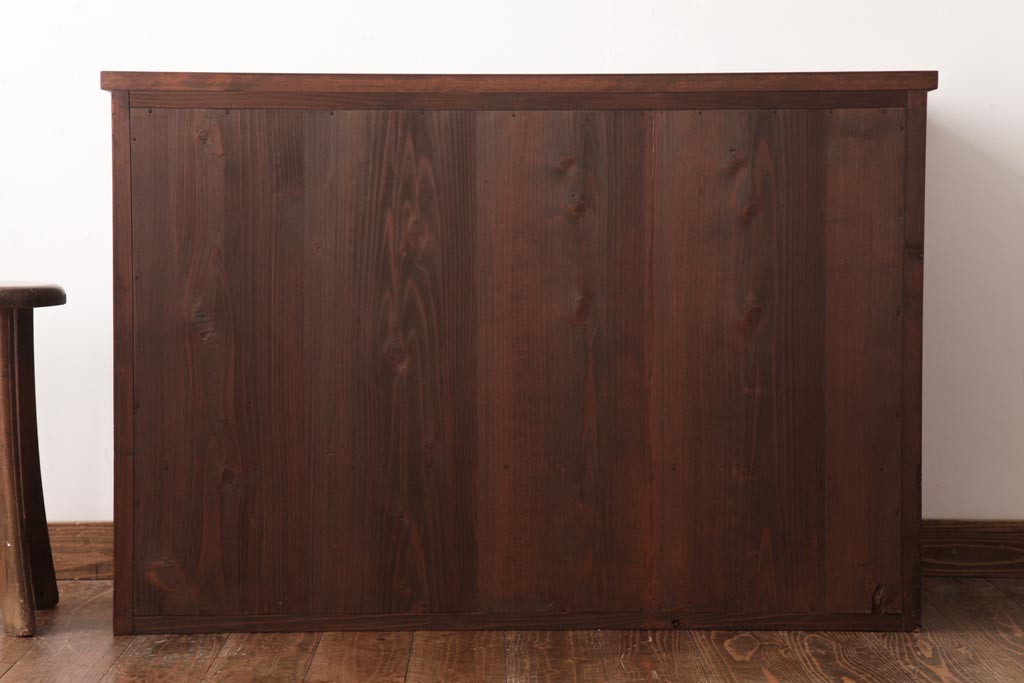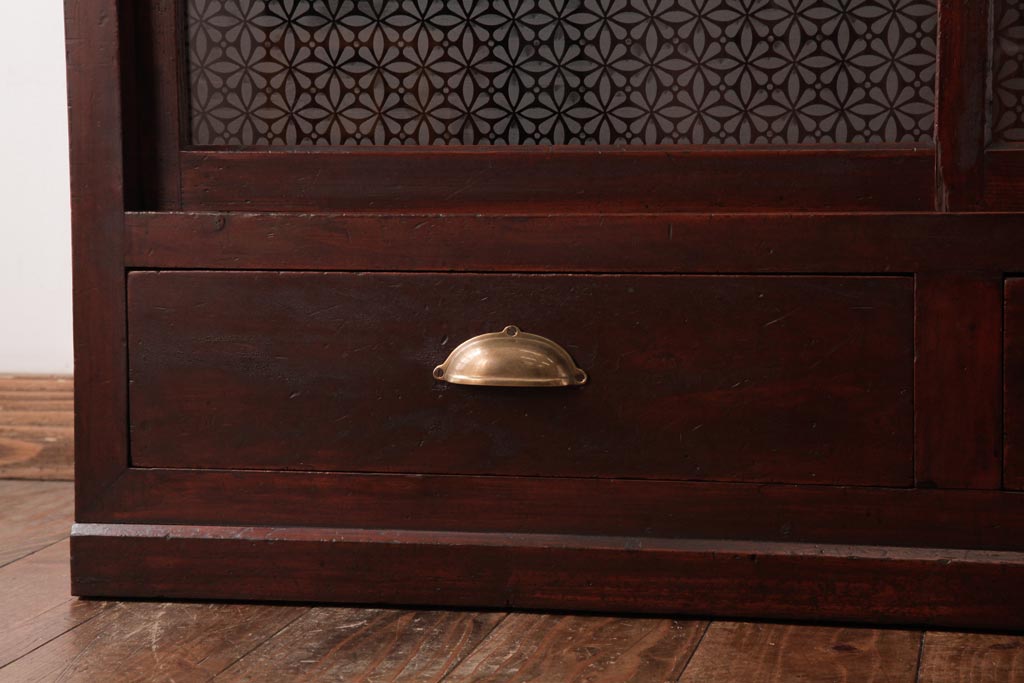 アンティーク家具 和製アンティーク 当店オリジナルガラス 前面ヒノキ材 レトロな雰囲気漂うリメイクキャビネット(収納棚、ガラス戸棚、サイドボード)(R-037428)