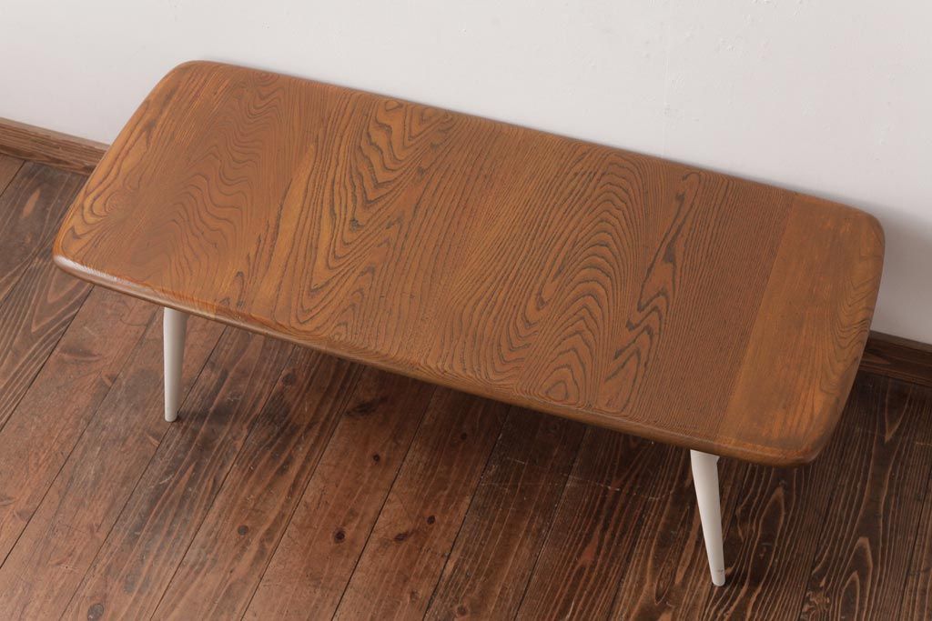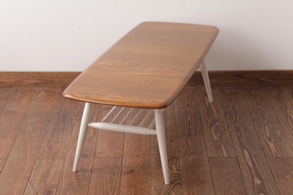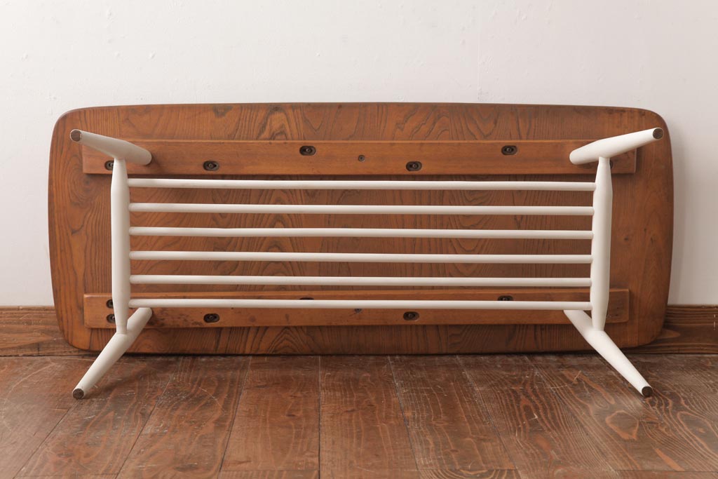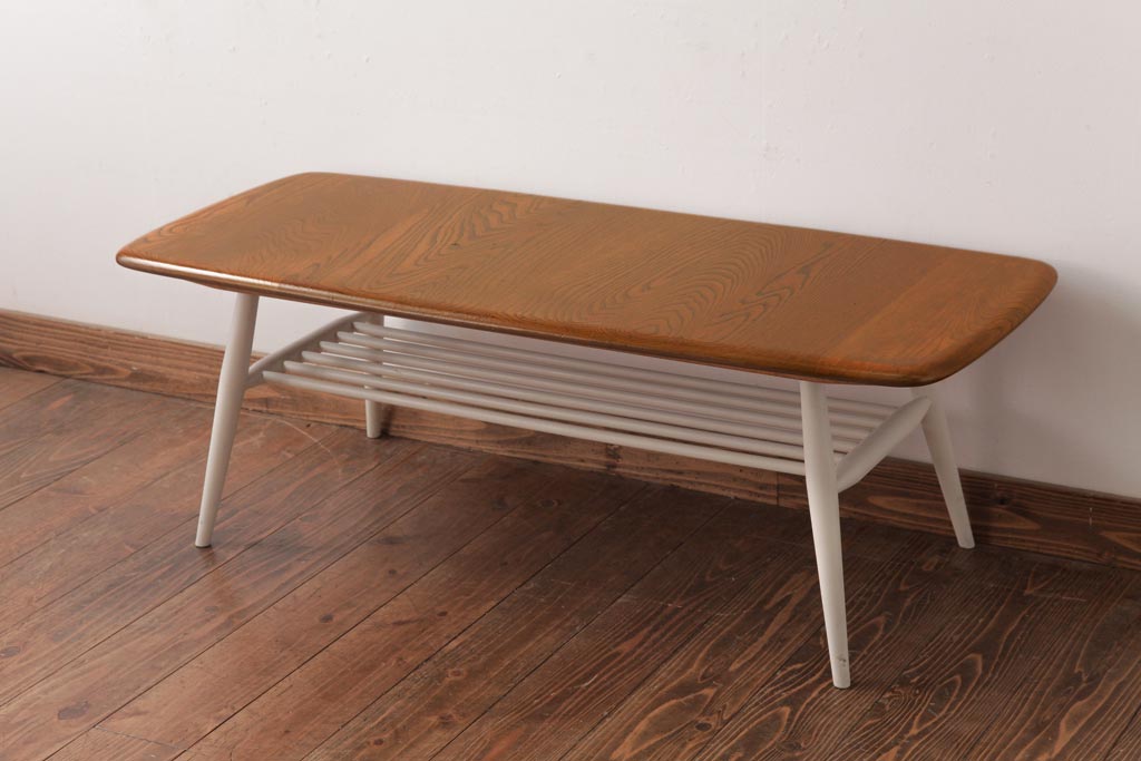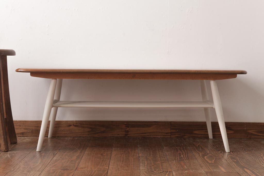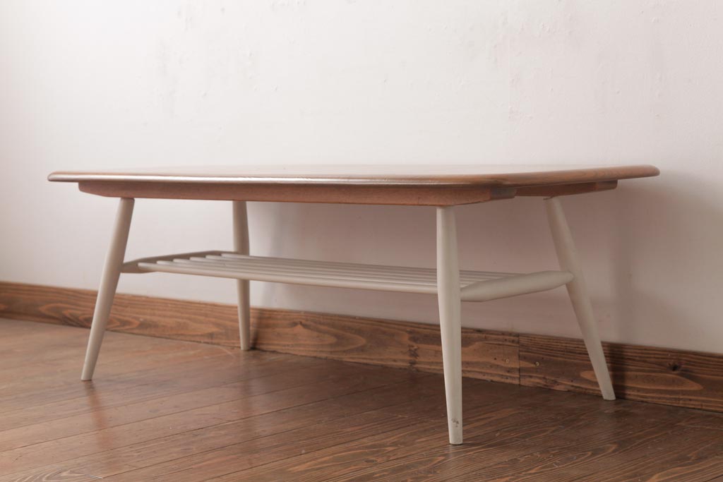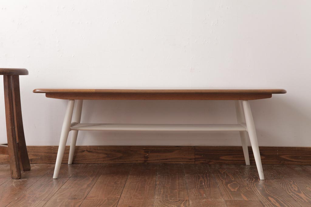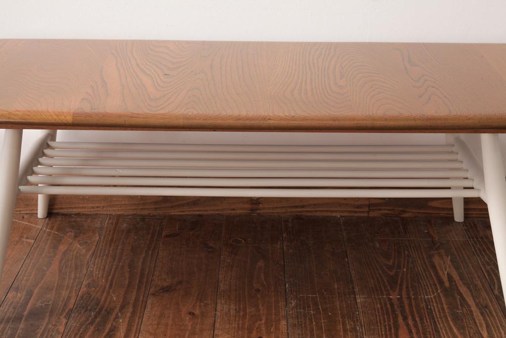 ヴィンテージ家具 イギリスビンテージ ERCOL(アーコール) マガジンラック付き ナチュラルペイントコーヒーテーブル(センターテーブル)(R-037429)