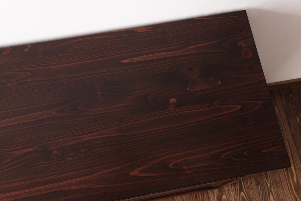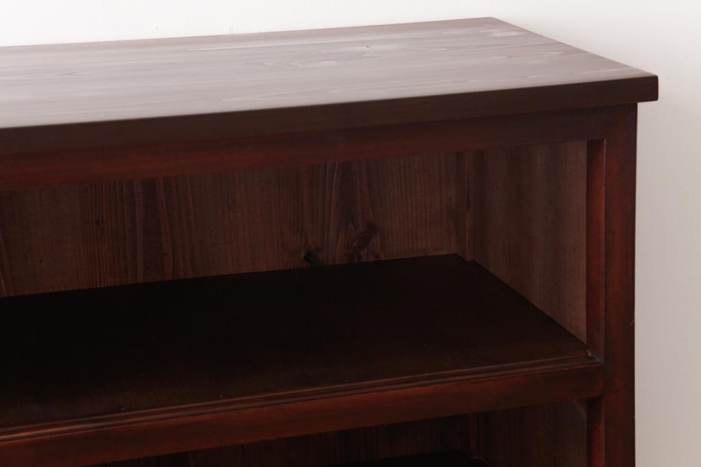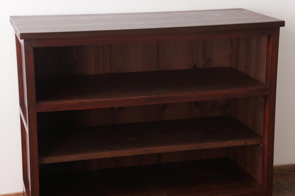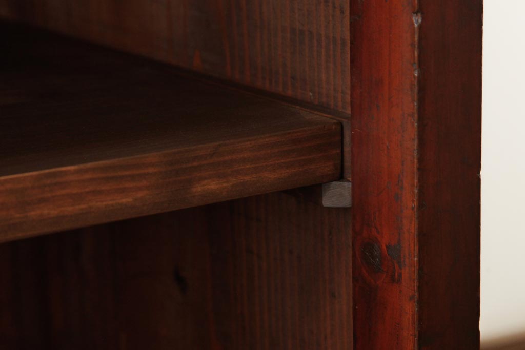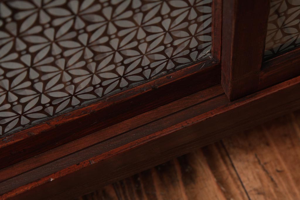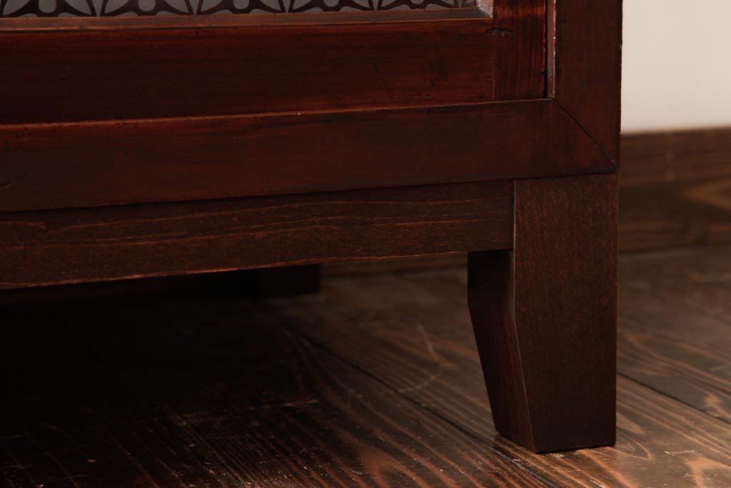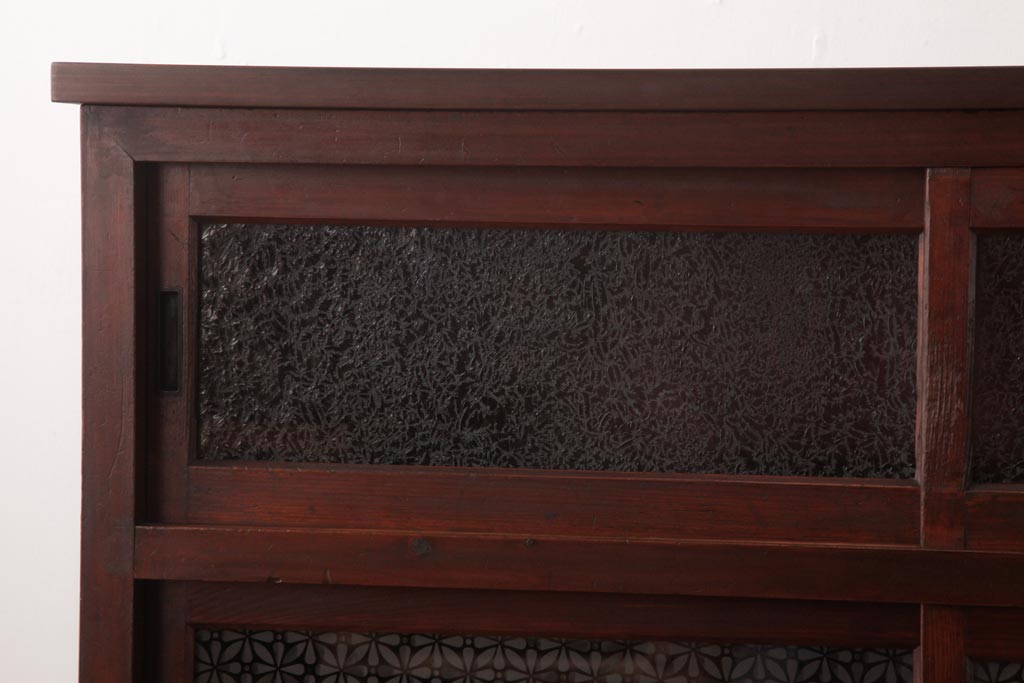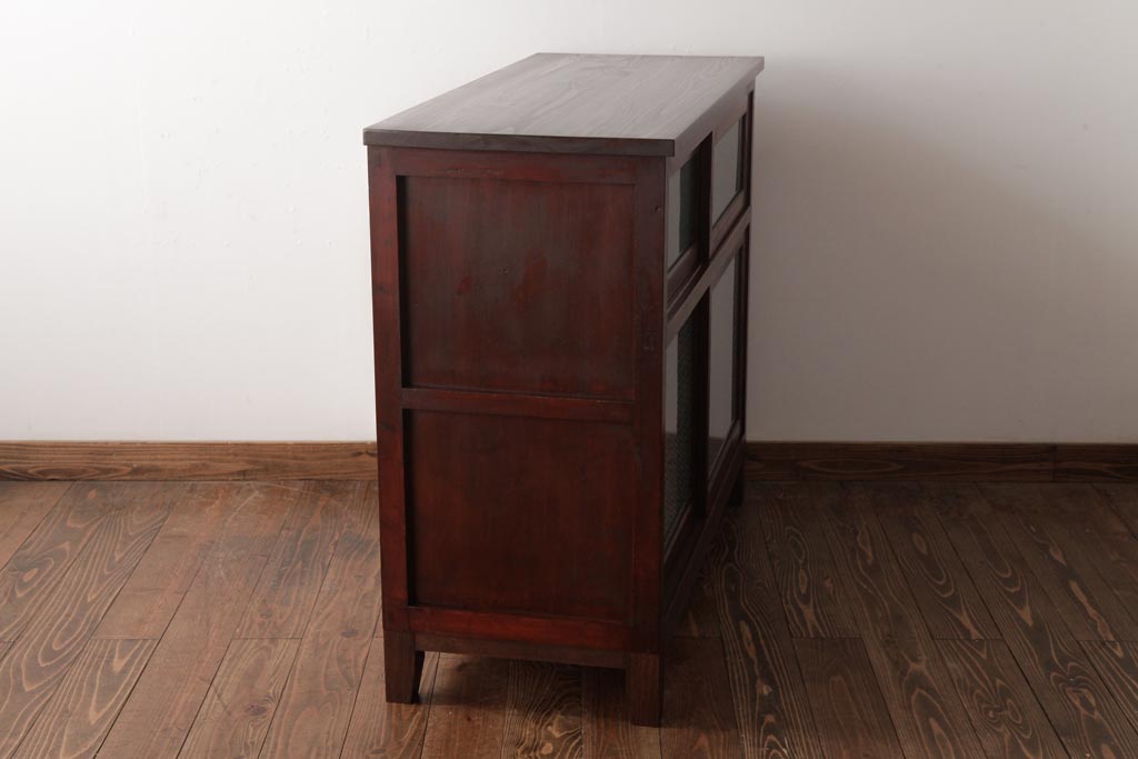 ラフジュ工房> キャビネット・戸棚> サイドキャビネット > アンティーク家具 和製アンティーク 当店オリジナルガラス 前面ヒノキ材 昔懐かしい和の雰囲気漂うリメイクキャビネット(収納棚、ガラス戸棚、サイドボード)(R-037427)