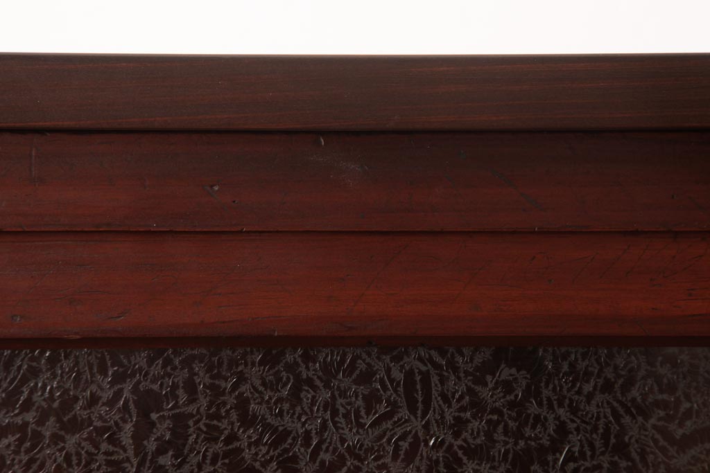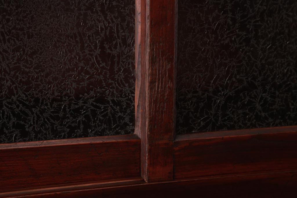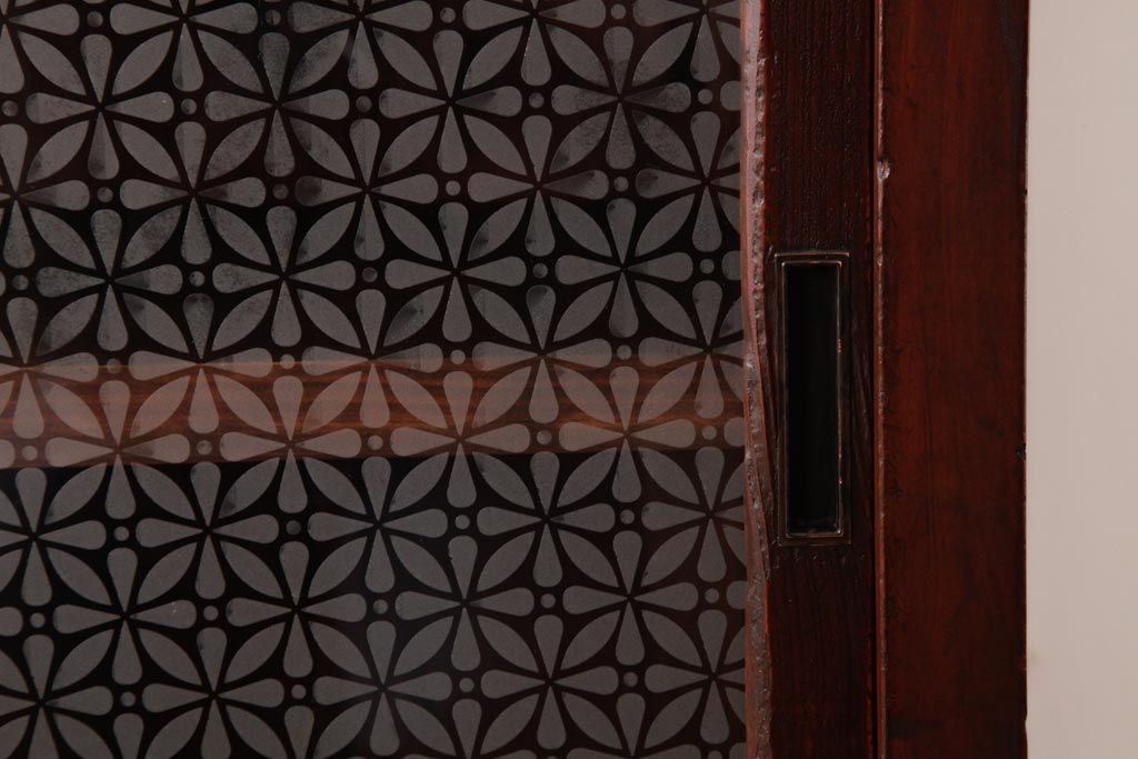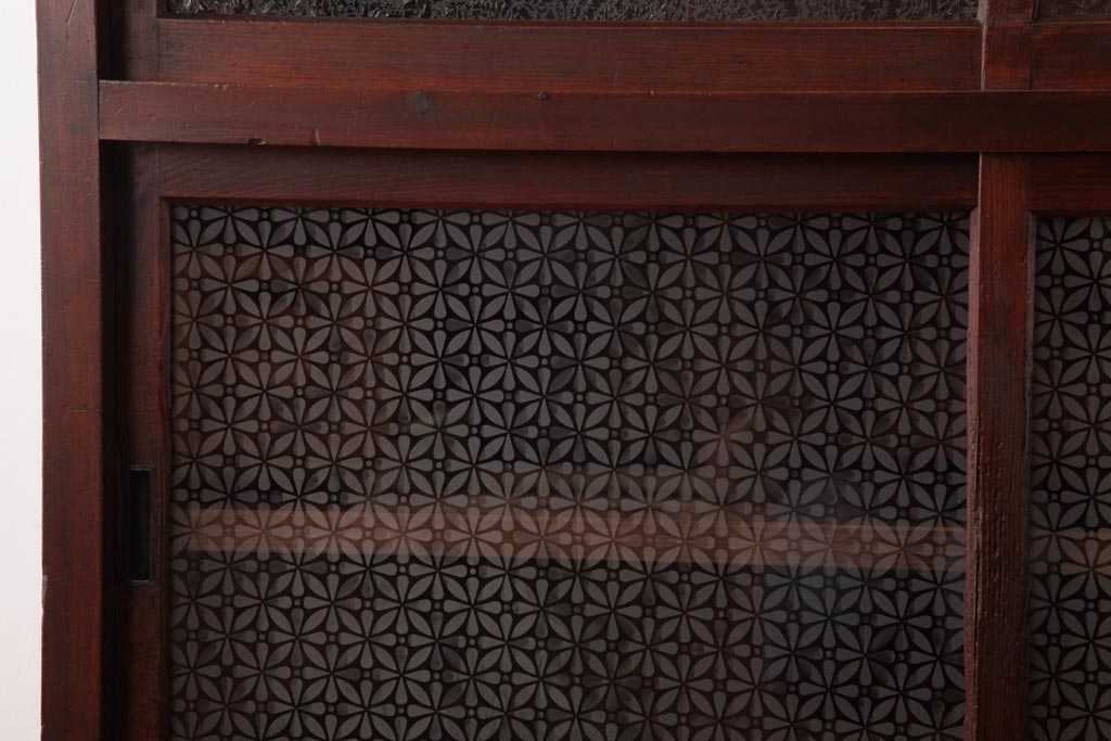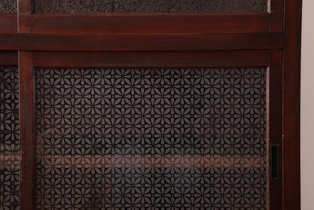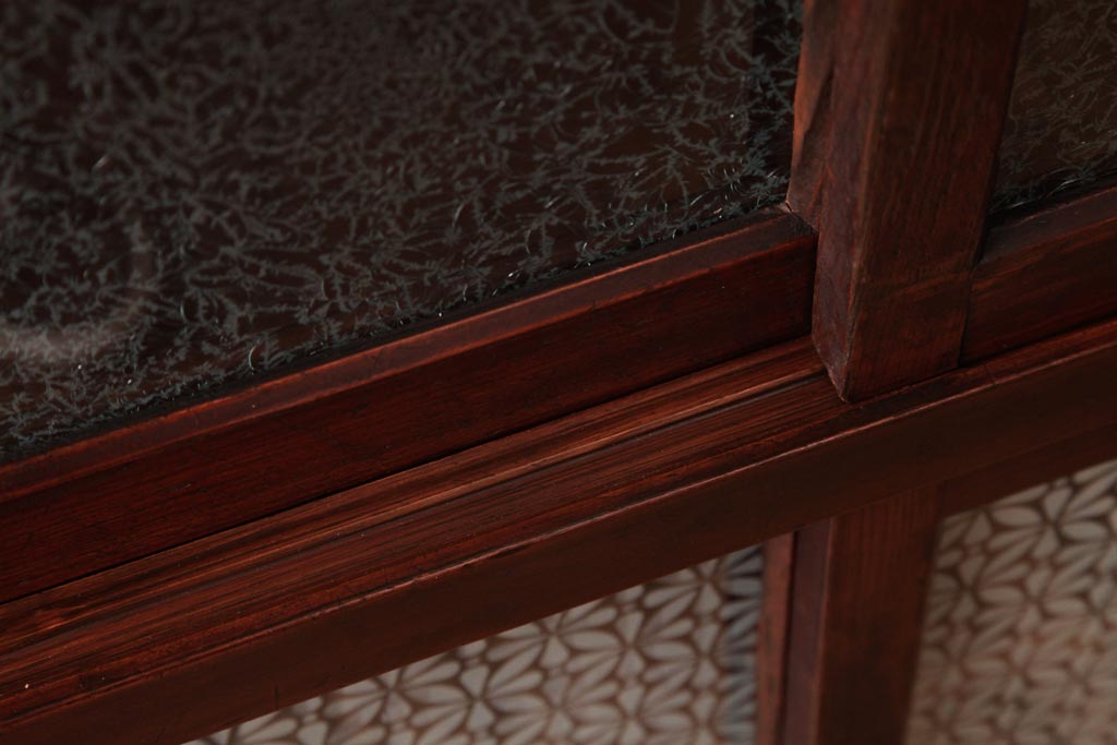 アンティーク家具 和製アンティーク 当店オリジナルガラス 前面ヒノキ材 昔懐かしい和の雰囲気漂うリメイクキャビネット(収納棚、ガラス戸棚、サイドボード)(R-037427)