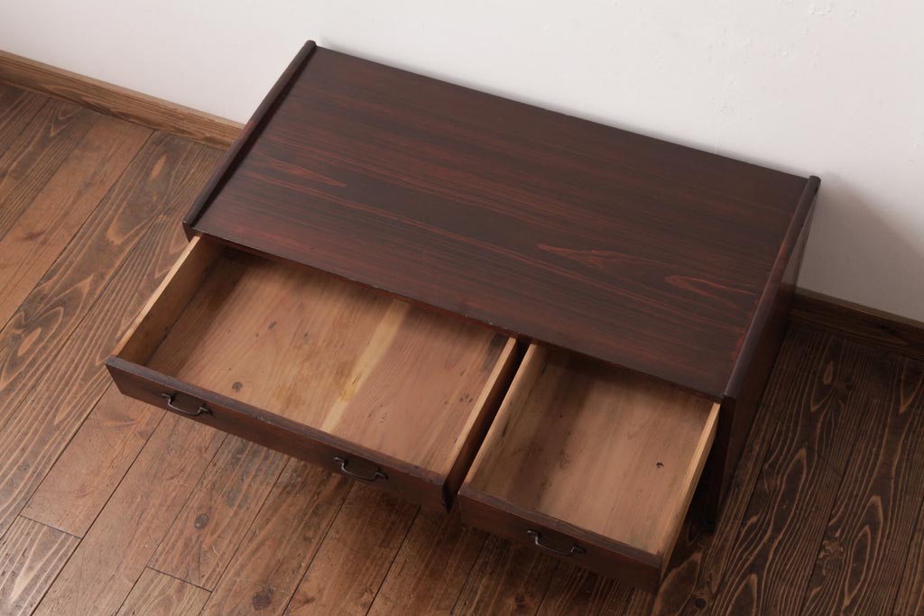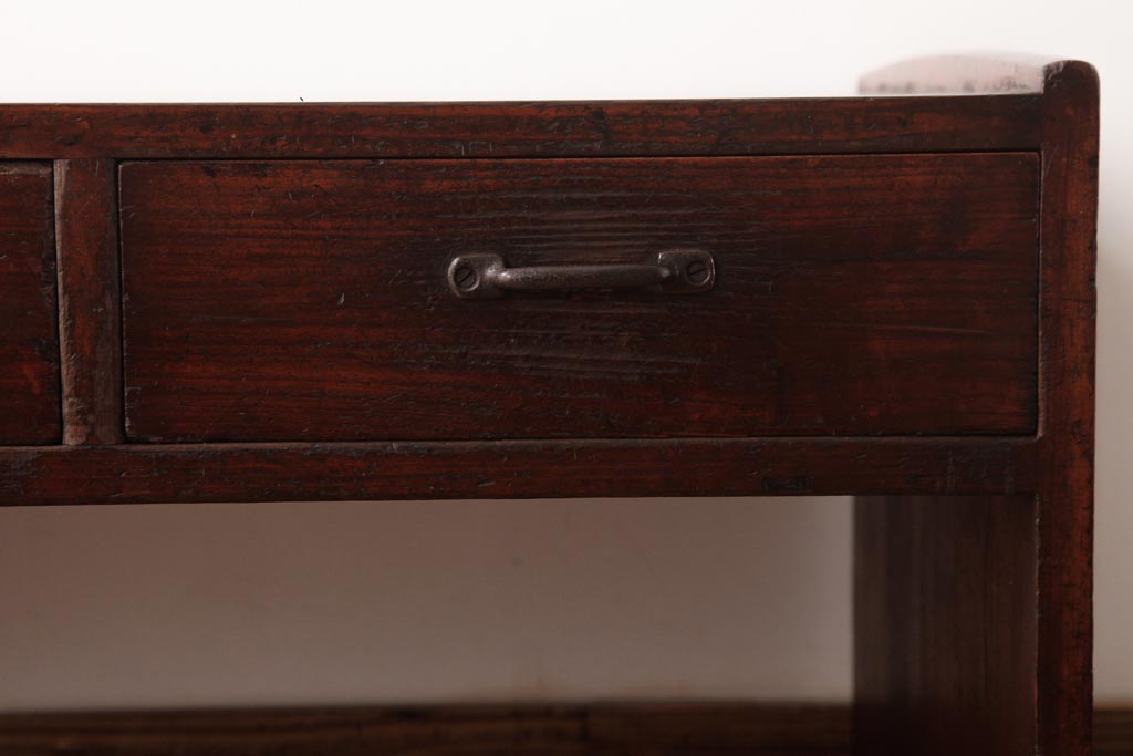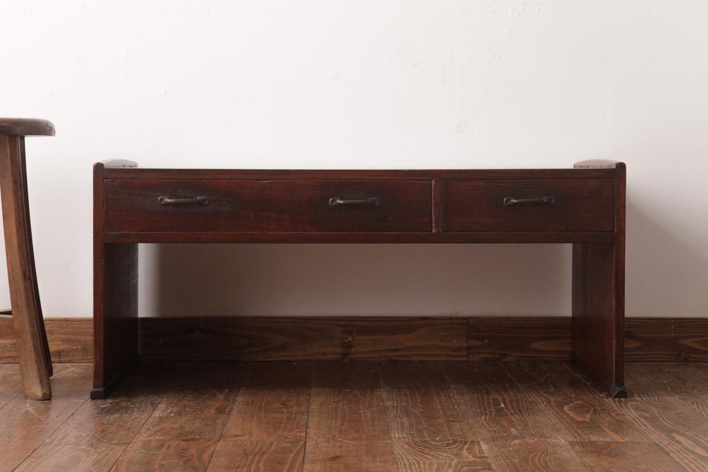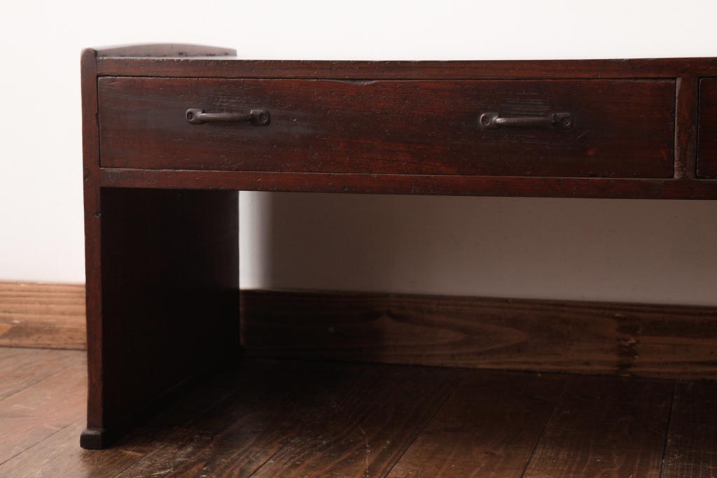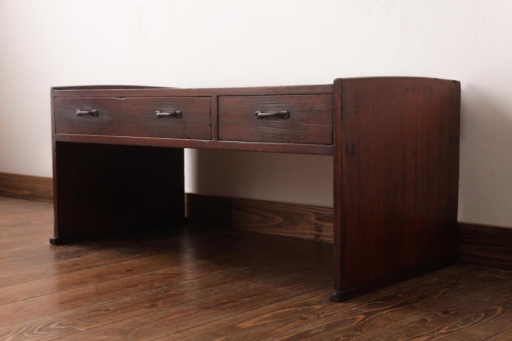 レトロ家具 和製アンティーク 檜材 古い木の風合いが味わい深い文机(座机、ローテーブル)(R-037447)