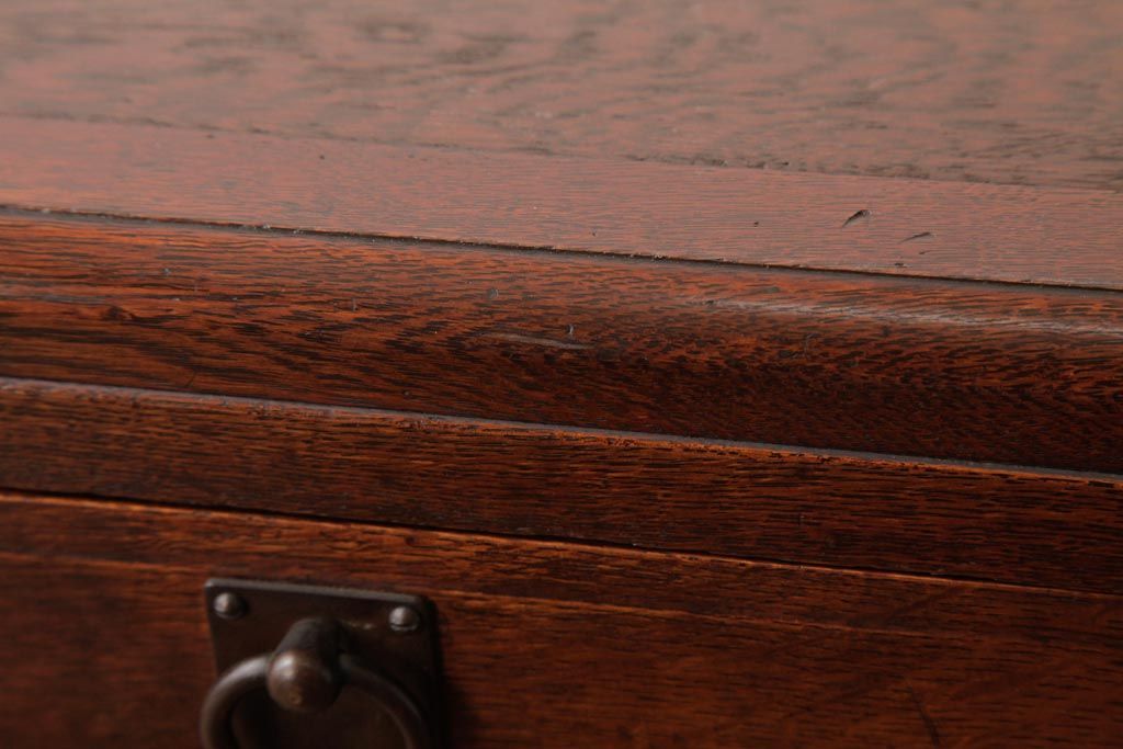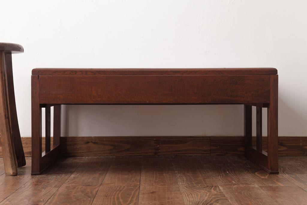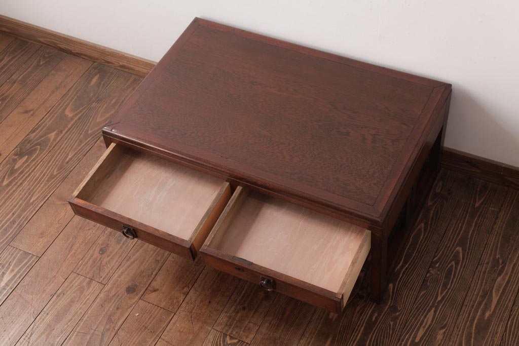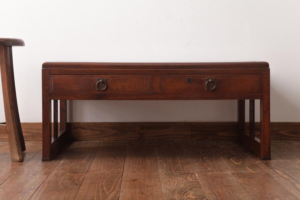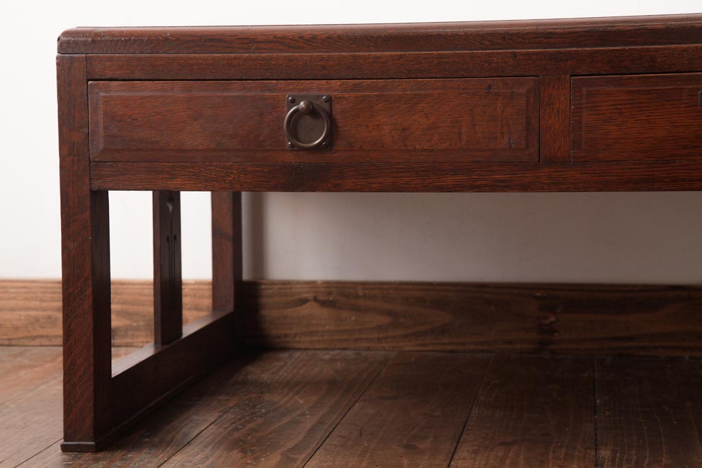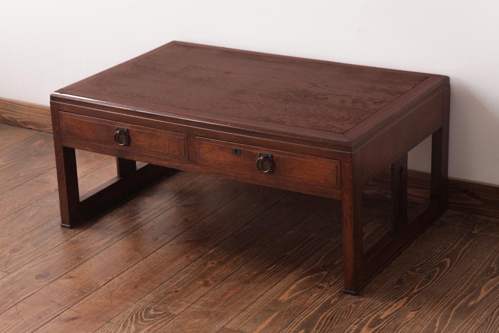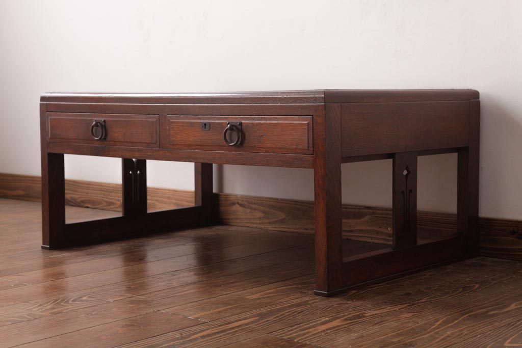 ラフジュ工房> テーブル> センターテーブル・ローテーブル > 和製アンティーク 栓材 植物モチーフの透かしが目を引く素朴な文机(ローテーブル、座卓)(R-037423)