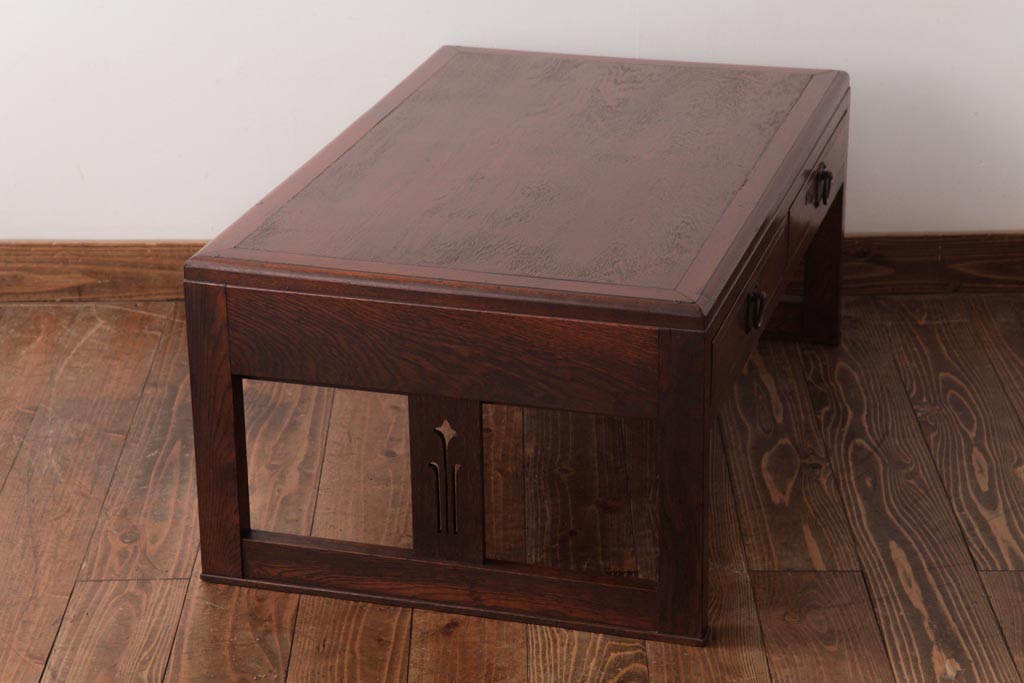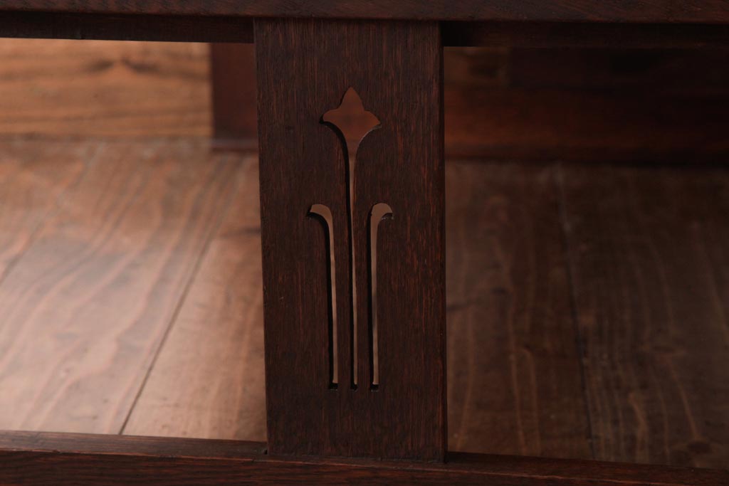 和製アンティーク 栓材 植物モチーフの透かしが目を引く素朴な文机(ローテーブル、座卓)(R-037423)