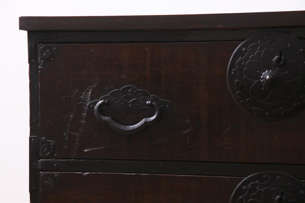 ラフジュ工房> 和箪笥 > アンティーク家具 明治期 前面栗材 天板リメイク 桜丸金具の米沢箪笥ローチェスト(引き出し)(R-037340)