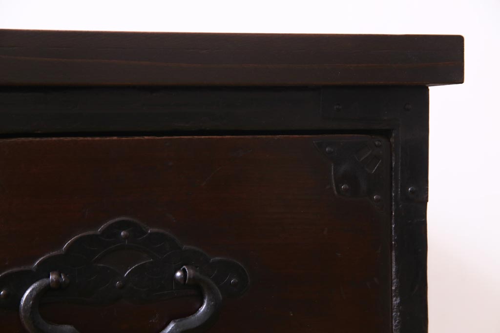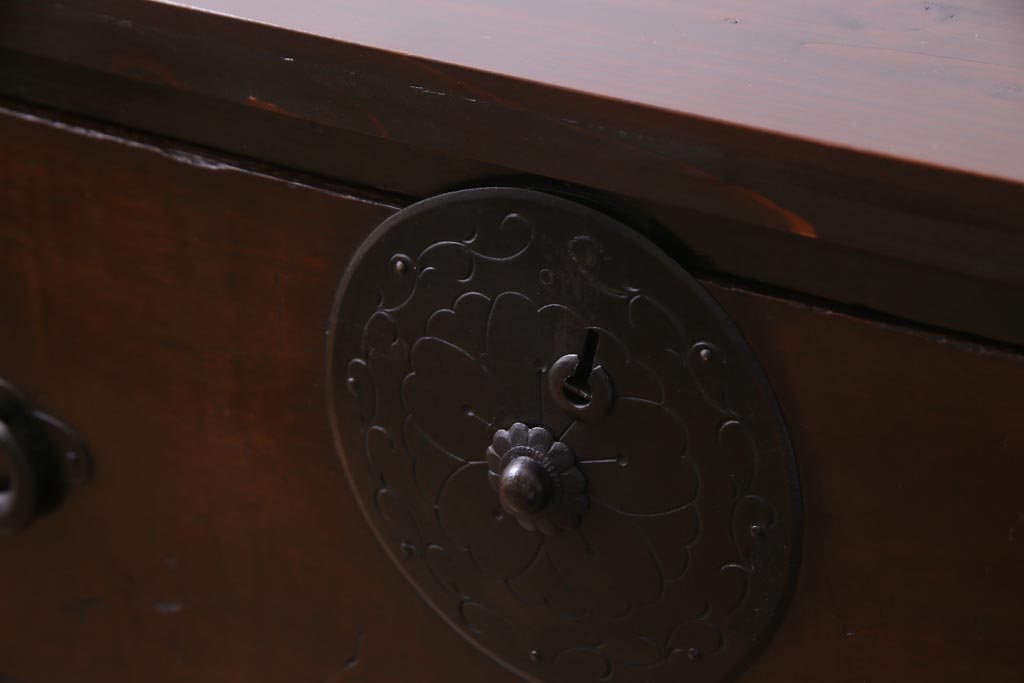 ラフジュ工房> チェスト・引き出し> ローチェスト > アンティーク家具 明治期 前面栗材 天板リメイク 桜丸金具の米沢箪笥ローチェスト(引き出し)(R-037340)