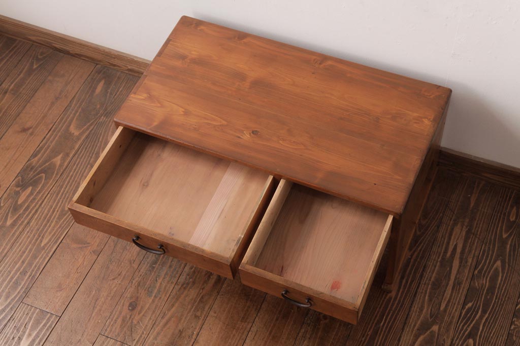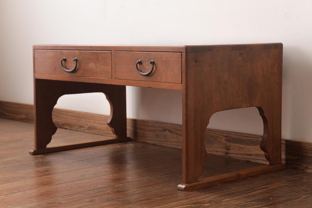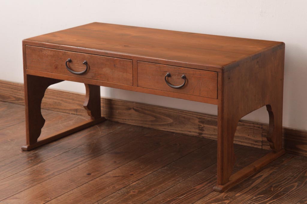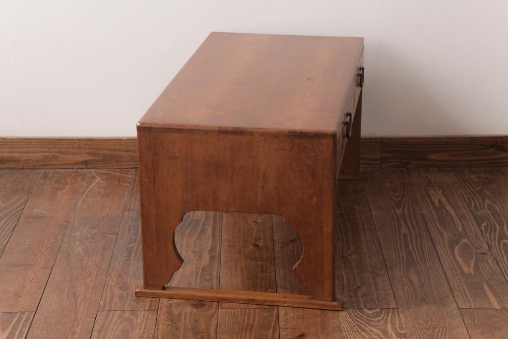 レトロ家具 和製アンティーク ヒノキ材 柔らかな木の風合いが魅力の文机(ローテーブル)(R-037448)