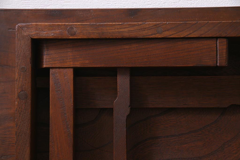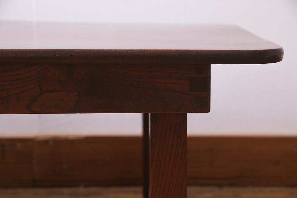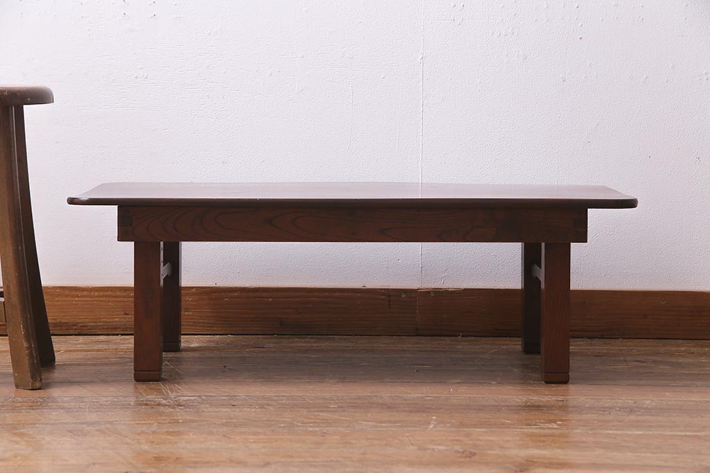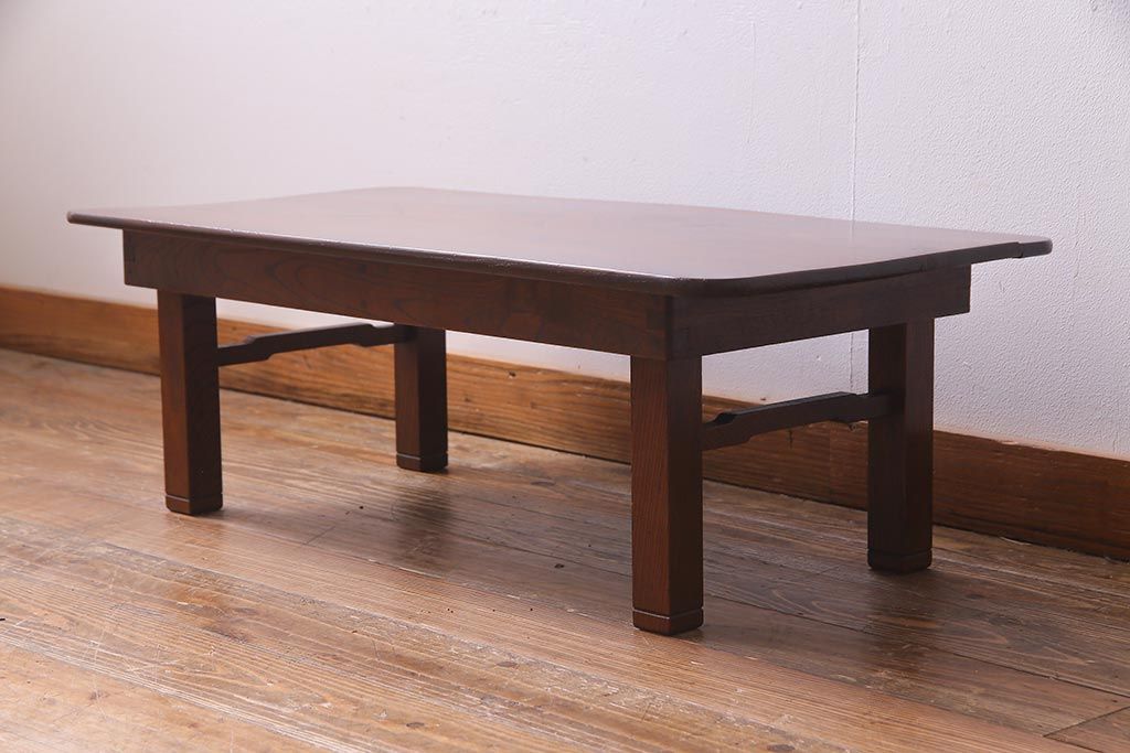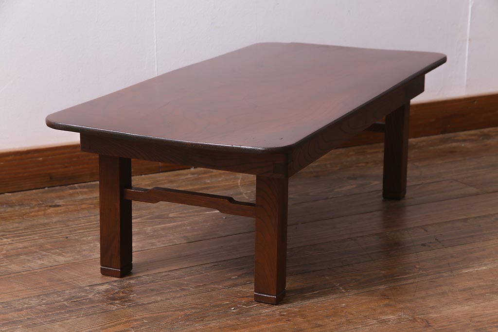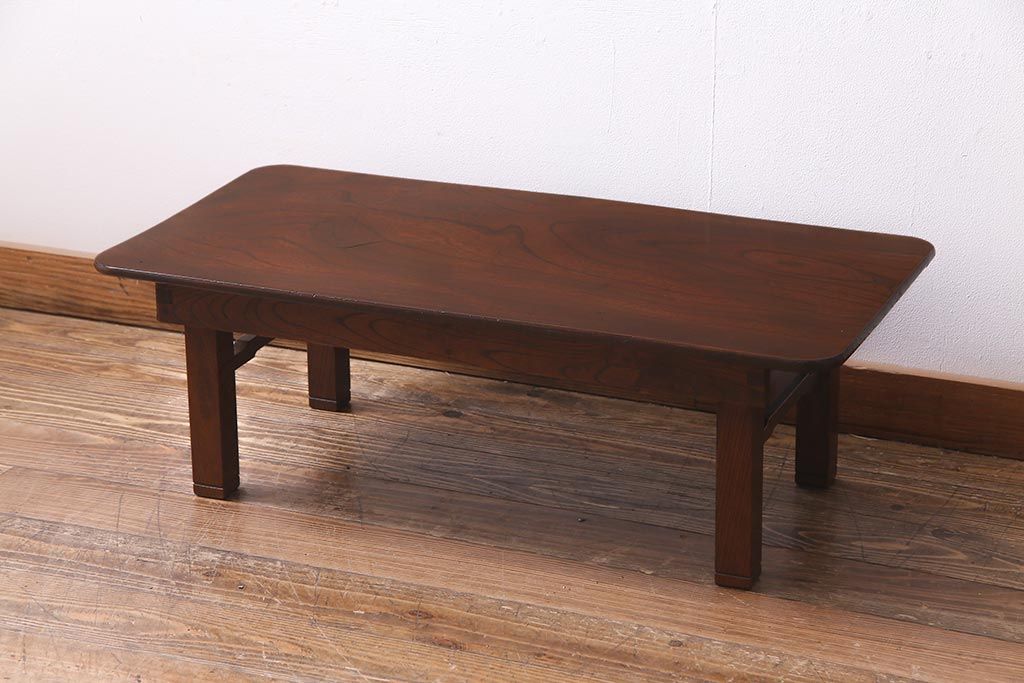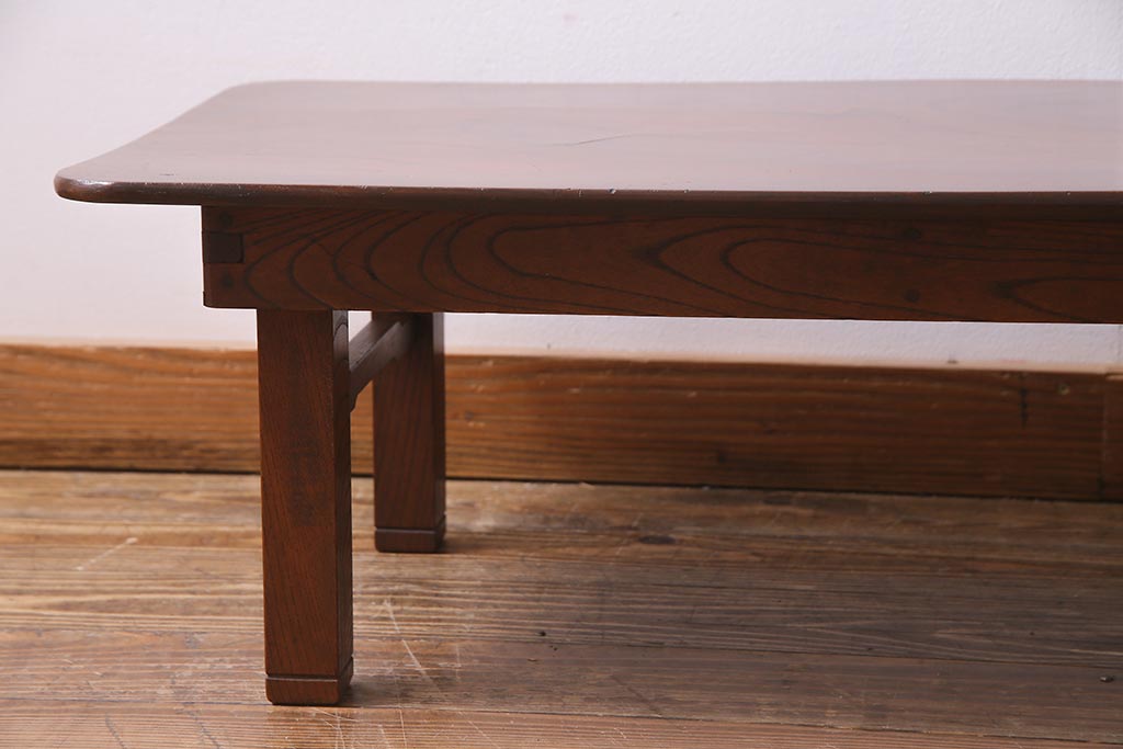 アンティーク家具 和製アンティーク 総ケヤキ材 一枚板 大胆な杢目が美しいレトロな角ちゃぶ台(ローテーブル)(R-037521)です。