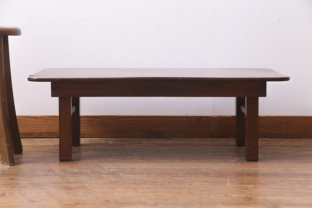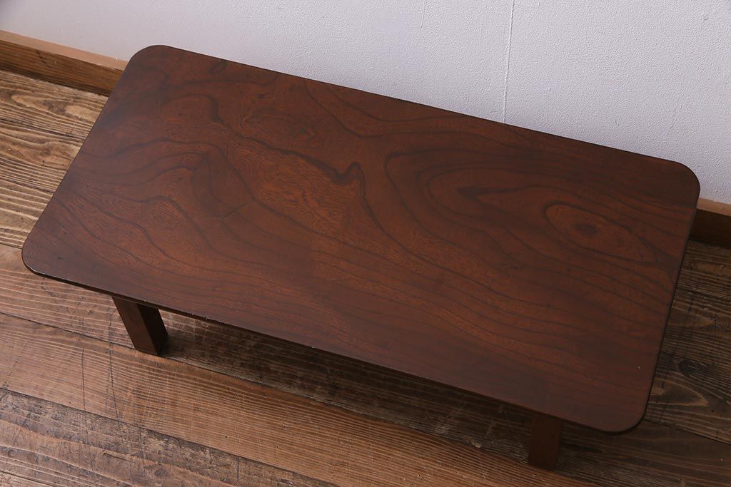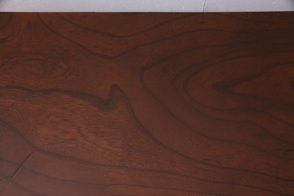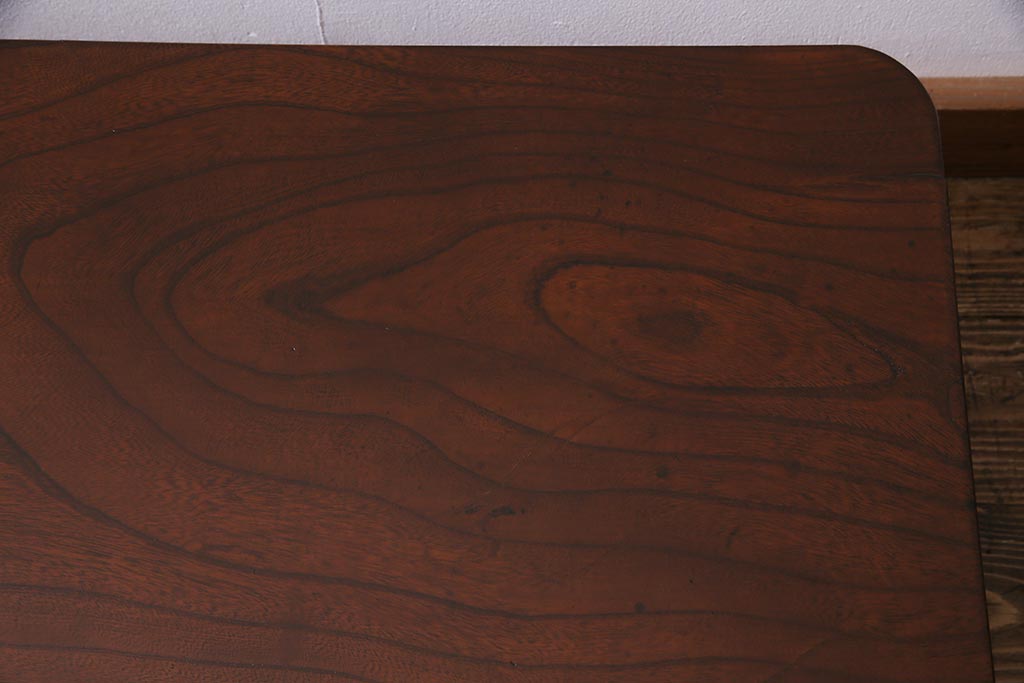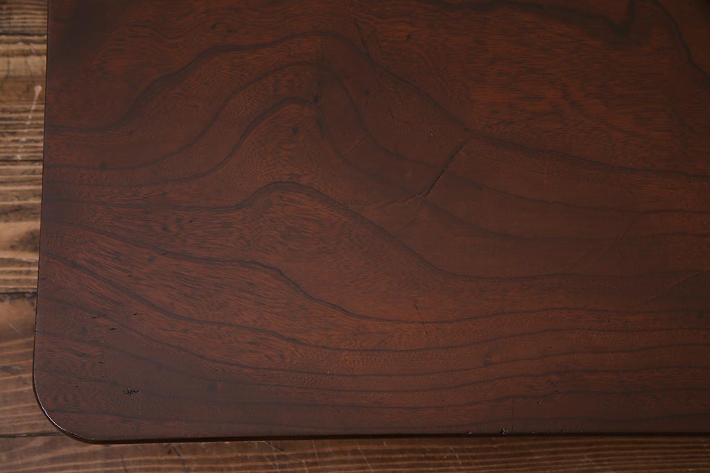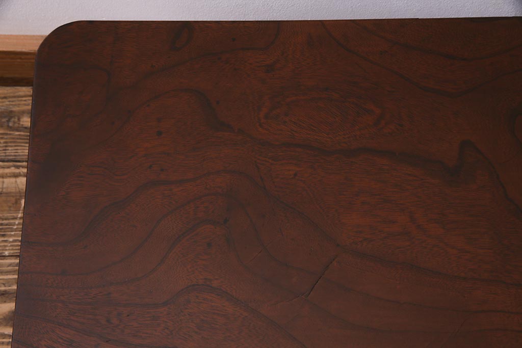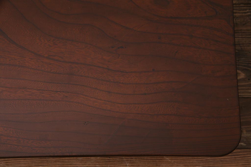 テーブル> ちゃぶ台 > アンティーク家具 和製アンティーク 総ケヤキ材 一枚板 大胆な杢目が美しいレトロな角ちゃぶ台(ローテーブル)(R-037521)