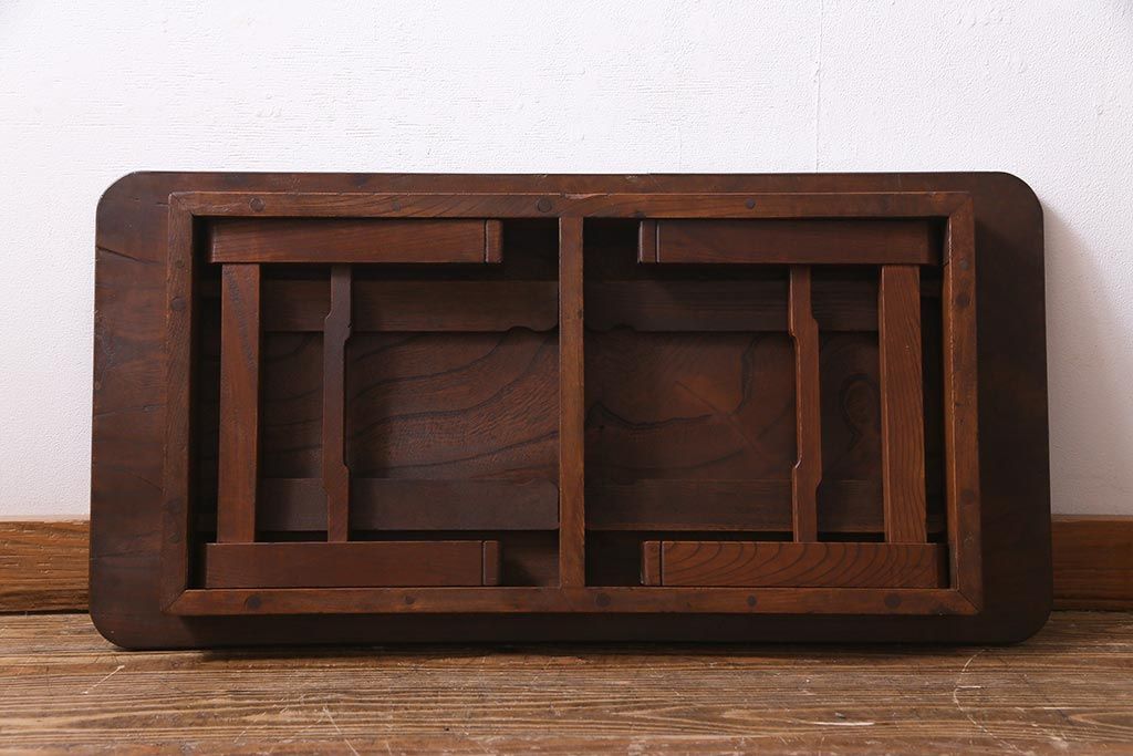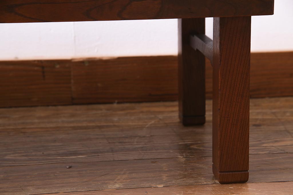 アンティーク家具 和製アンティーク 総ケヤキ材 一枚板 大胆な杢目が美しいレトロな角ちゃぶ台(ローテーブル)(R-037521)
