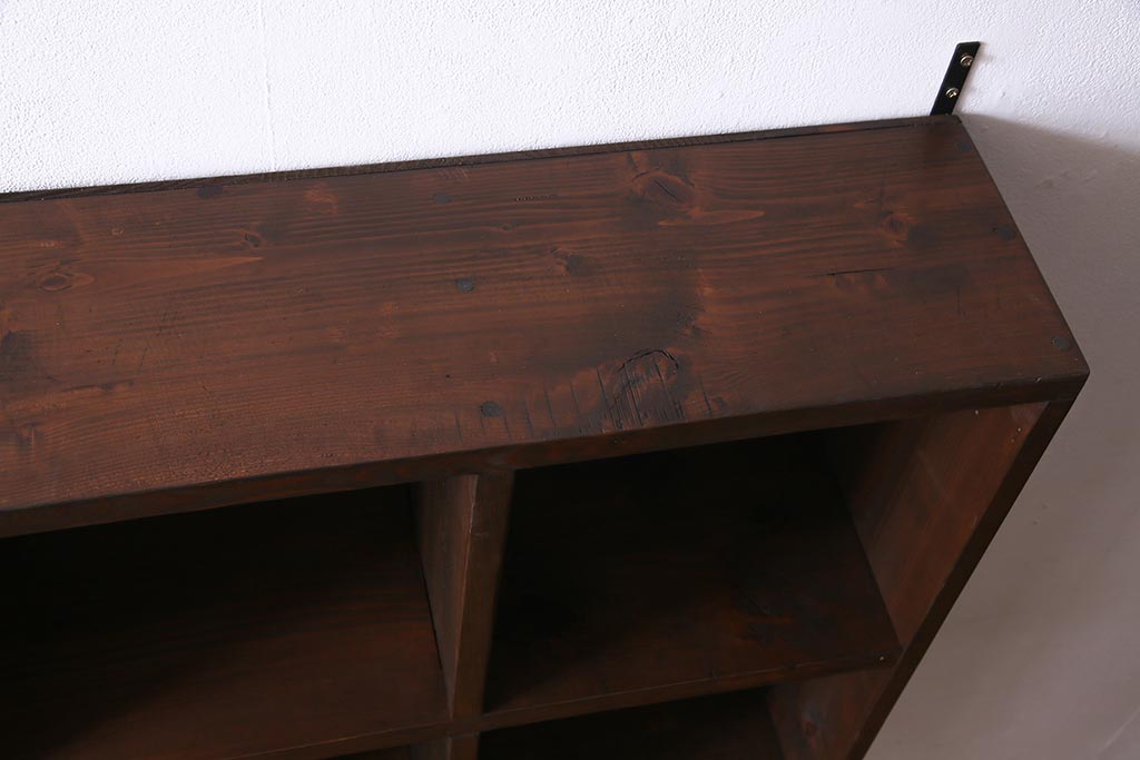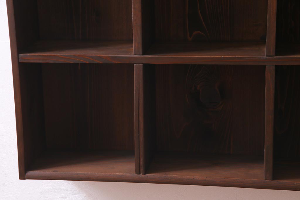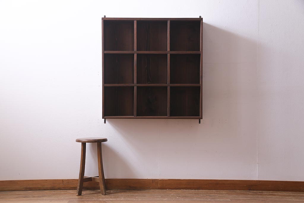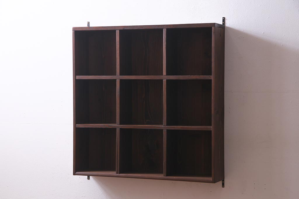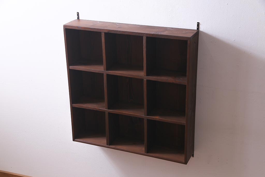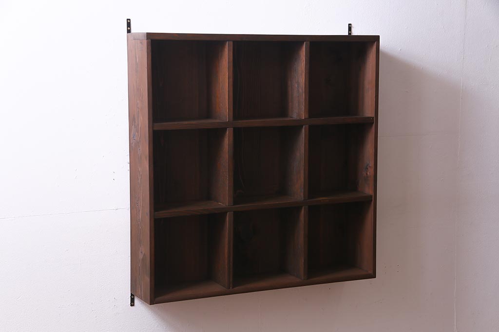 ラフジュ工房オリジナル 古材リメイク家具 3×3マス 収納とディスプレイが楽しめる壁掛けマス目棚(壁掛け収納棚、ウォールラック)(R-037443)
