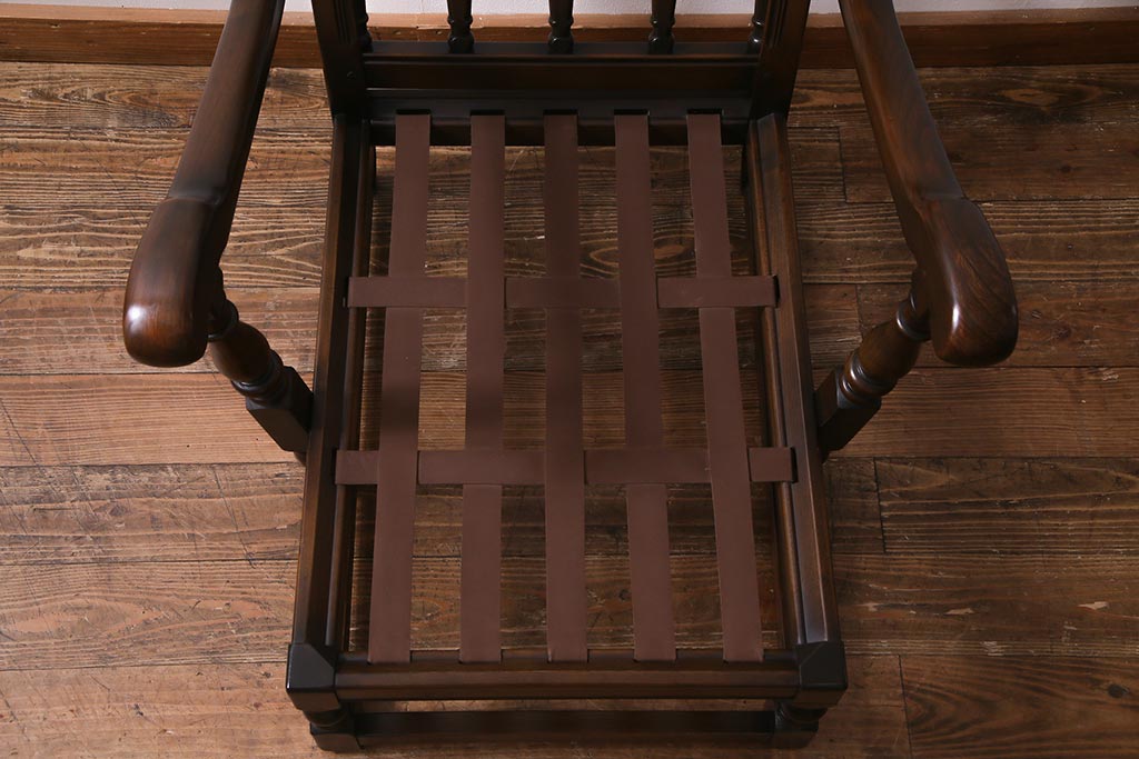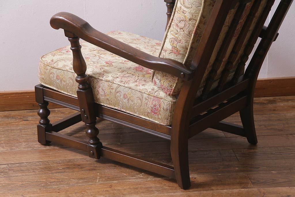 ヴィンテージ家具 イギリスビンテージ ERCOL(アーコール) Old Colonial(オールドコロニアル) ニレ材 シックな佇まいのイージーチェア(アームソファ、1人掛けソファ)(R-037537)です。