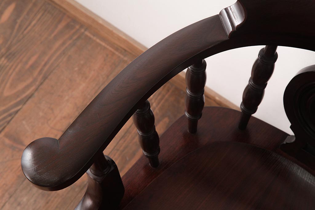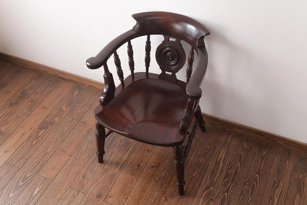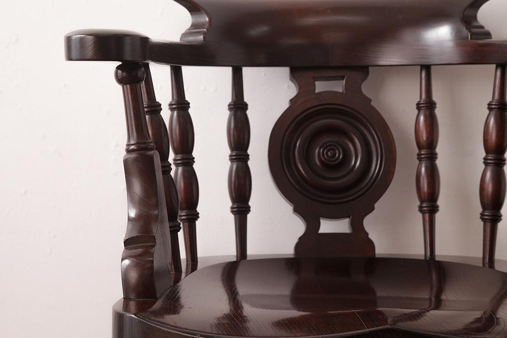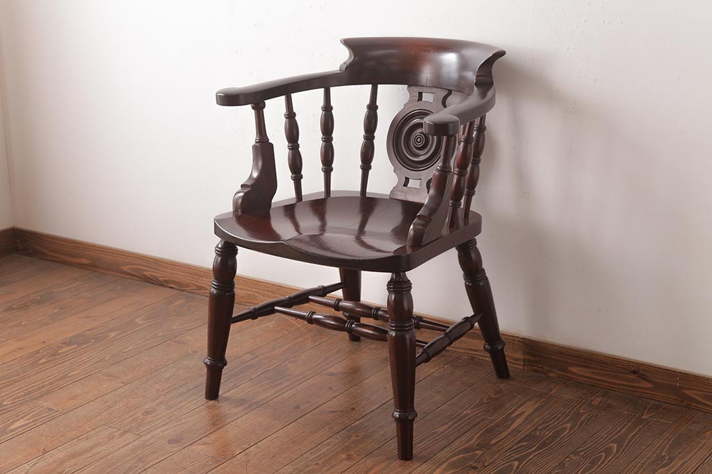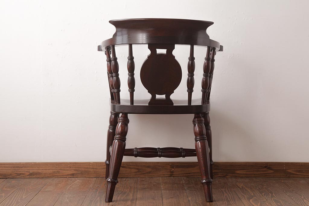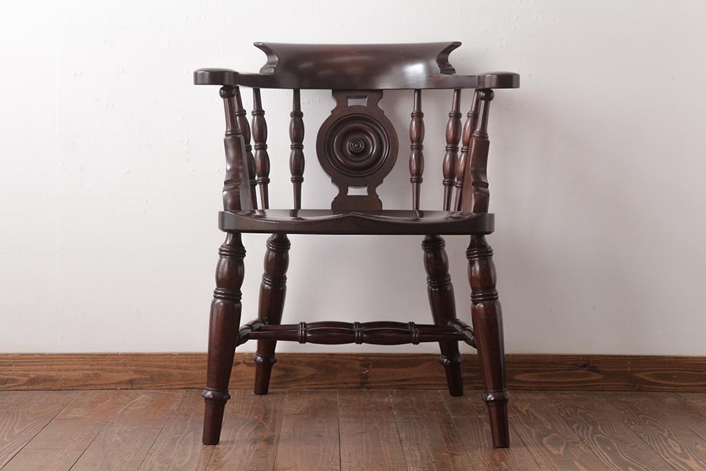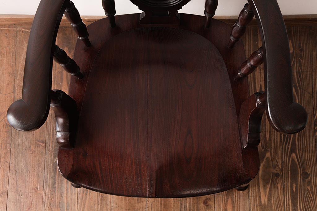 民芸家具 > 中古 松本民芸家具 ケヤキ材ラッカー仕上げ ホイールバック 大キャプテンチェア(ウィンザーチェア、アームチェア、椅子、ウインザーチェア)(R-037458)