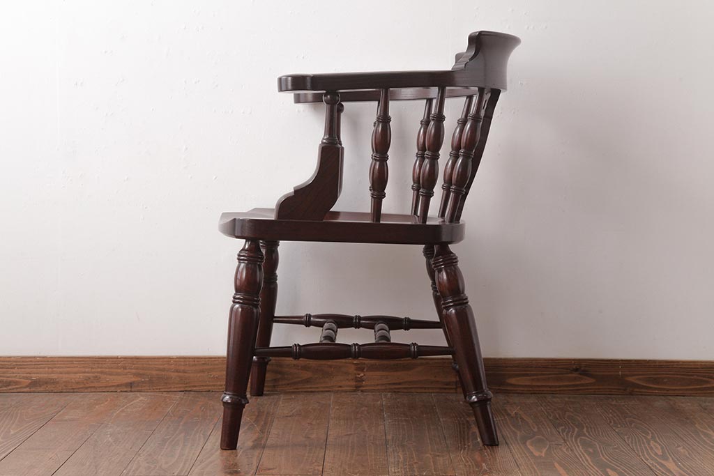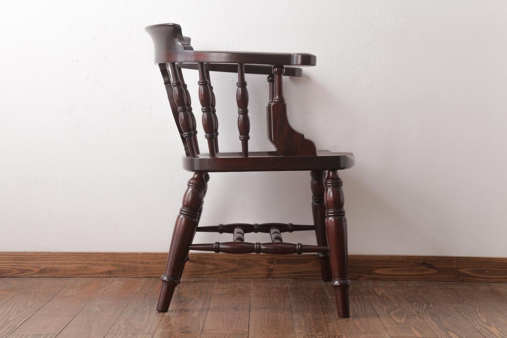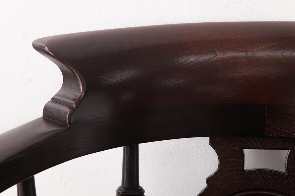 椅子・ベンチ> ダイニングチェア > 中古 松本民芸家具 ケヤキ材ラッカー仕上げ ホイールバック 大キャプテンチェア(ウィンザーチェア、アームチェア、椅子、ウインザーチェア)(R-037458)