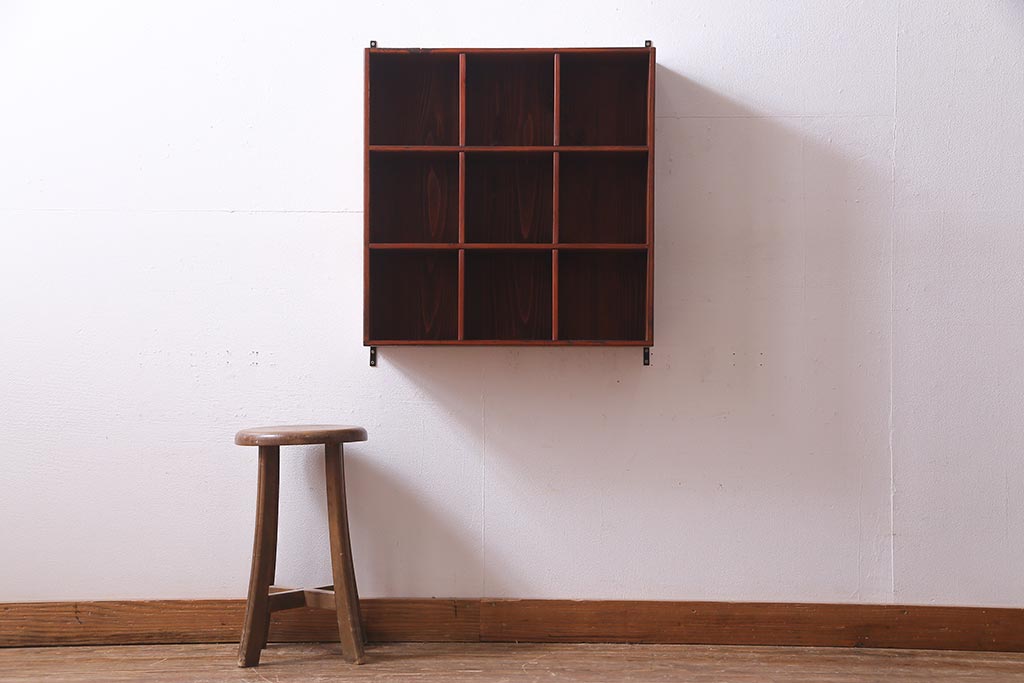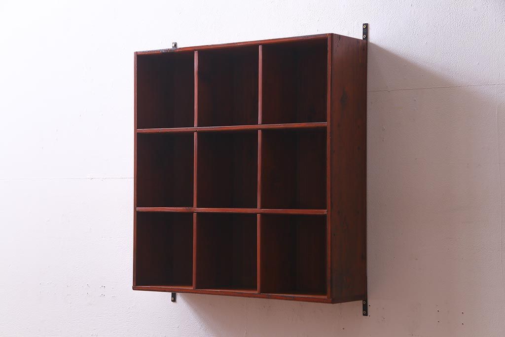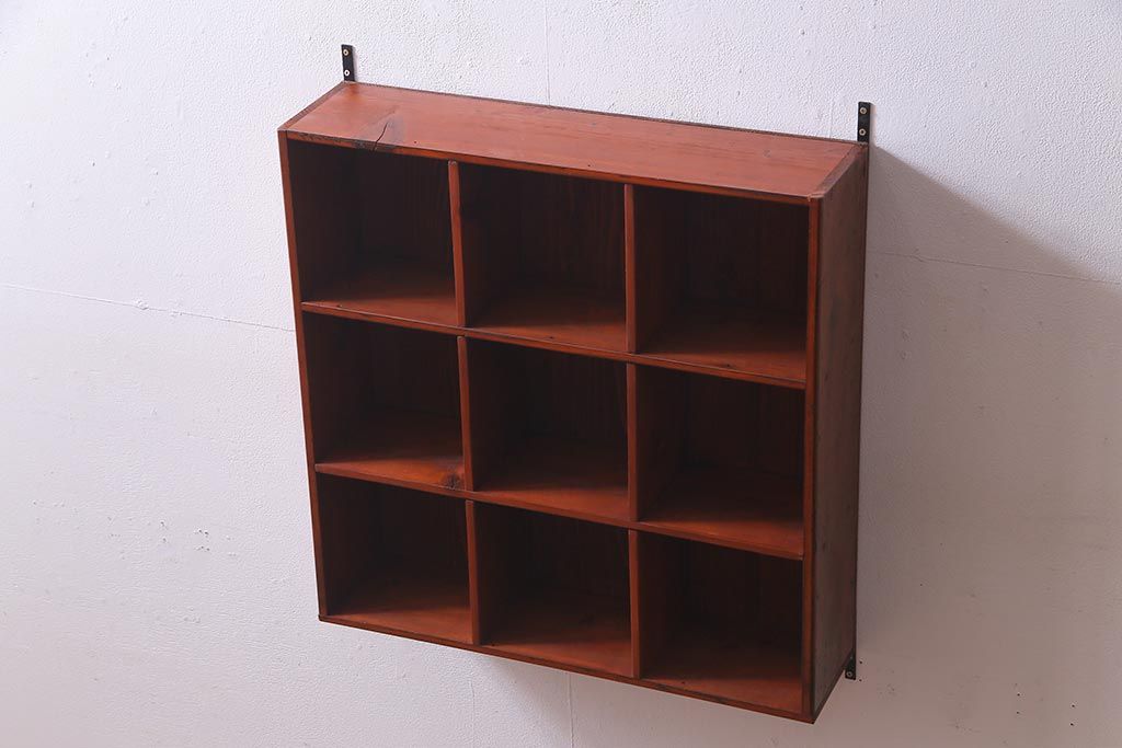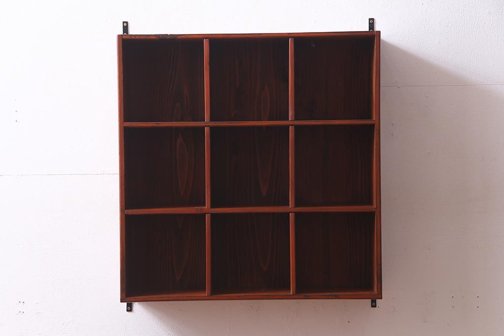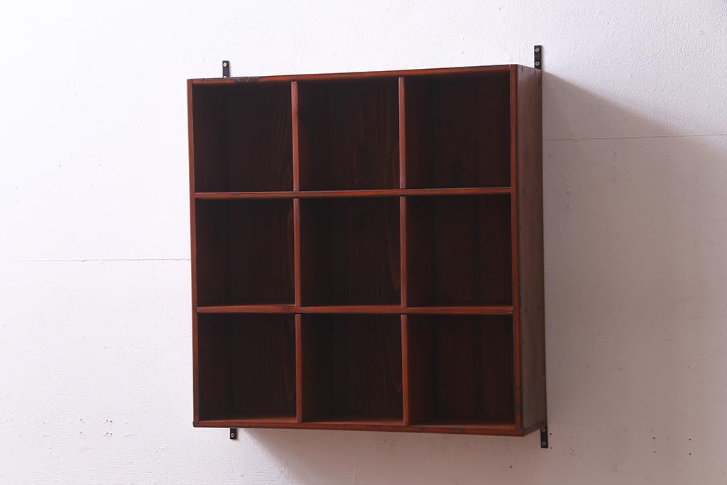 ラフジュ工房オリジナル 古材リメイク家具 3×3マス 収納とディスプレイが楽しめる壁掛けマス目棚(壁掛け収納棚、ウォールラック)(R-037442)