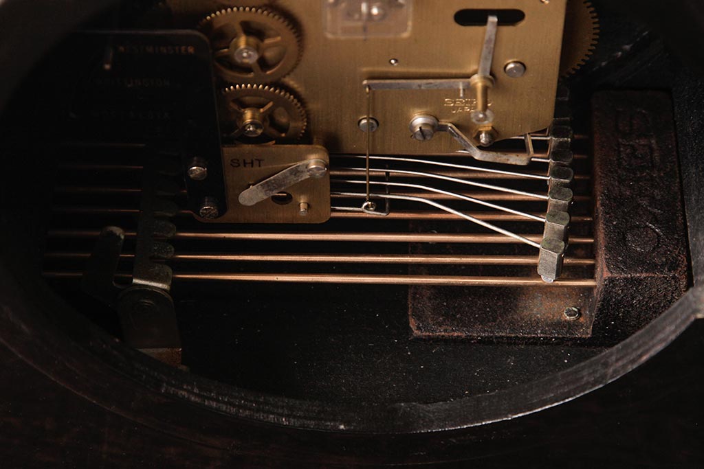 チャイムは15分ごとに鳴ります。15分で1小節まで、30分で2小節まで、45分で3小節まで、0分で4小節すべて鳴った後に時打ちが鳴ります。