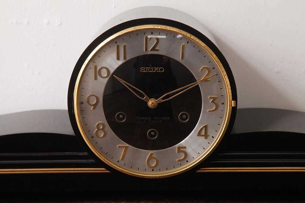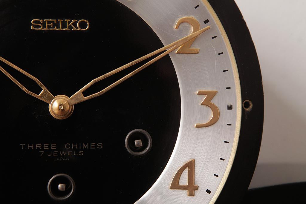 アンティーク雑貨 レトロ SEIKO(セイコー) 手巻き式 THREE CHIMES 7JEWELS 置き時計(古時計、テンプ)(R-037489)