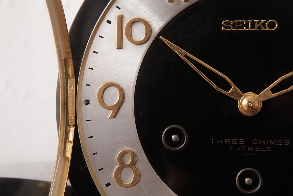 アンティーク雑貨 レトロ SEIKO(セイコー) 手巻き式 THREE CHIMES 7JEWELS 置き時計(古時計、テンプ)(R-037489)です。