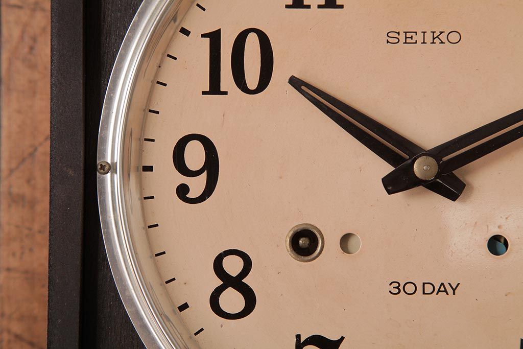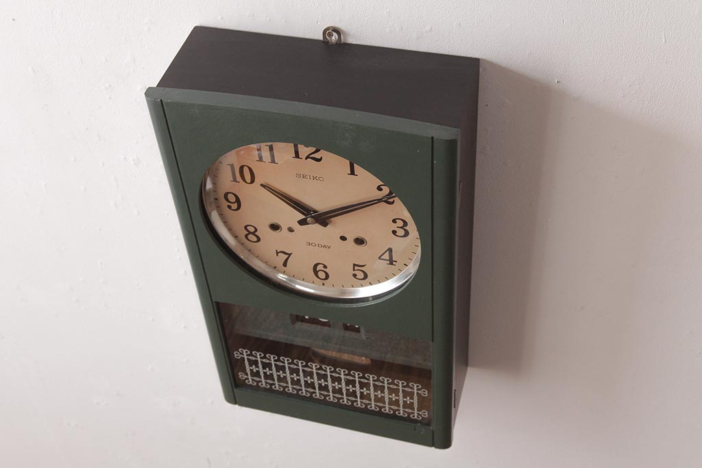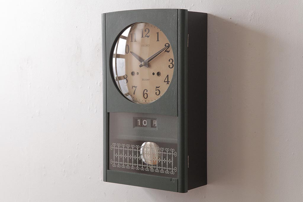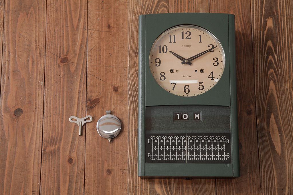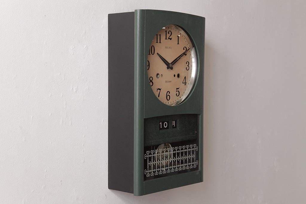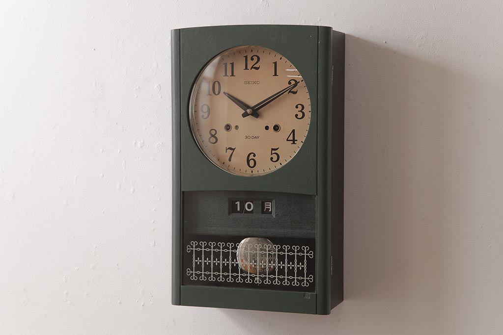 時計> 掛け時計 > レトロ雑貨 SEIKO(セイコー) ゼンマイ式 カレンダー付き レトロなペイントがおしゃれな掛け時計(柱時計、振り子時計)(R-037532)
