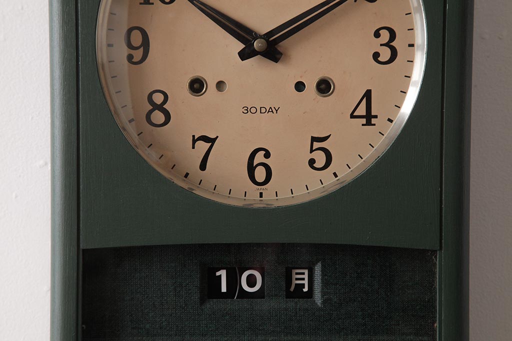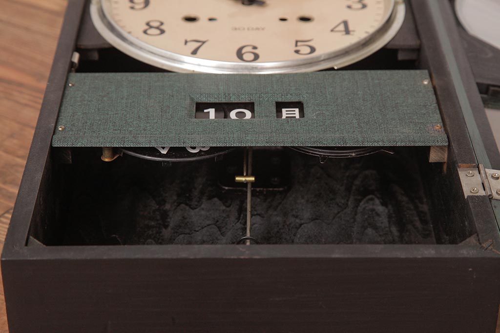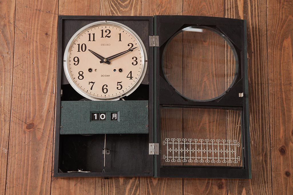 レトロ雑貨 SEIKO(セイコー) ゼンマイ式 カレンダー付き レトロなペイントがおしゃれな掛け時計(柱時計、振り子時計)(R-037532)