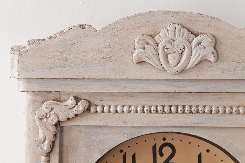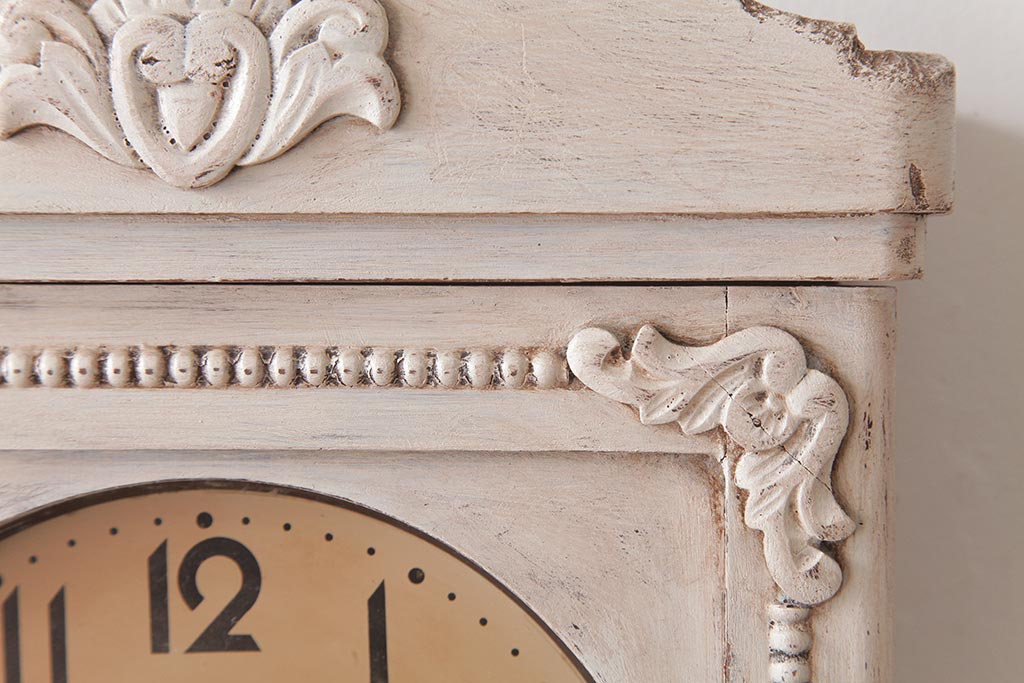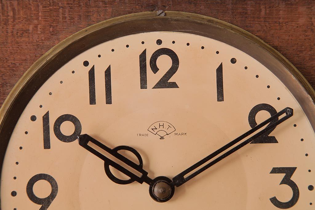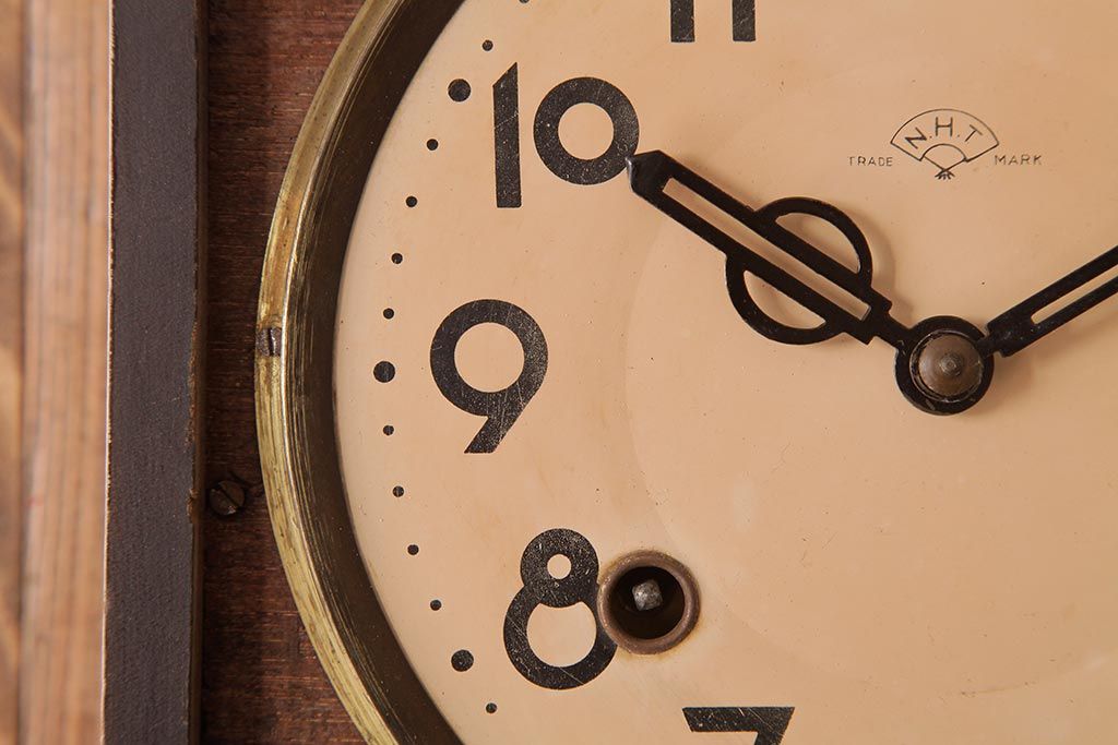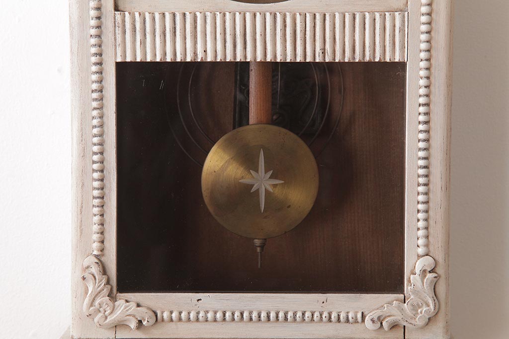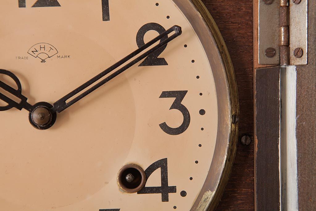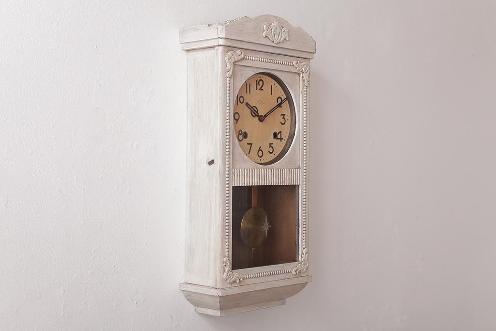 時計> 掛け時計 > ビンテージ雑貨 堀田時計店 N.H.T ゼンマイ式 アンティークペイントがおしゃれな振り子掛時計(柱時計、壁掛け時計)(R-037529)