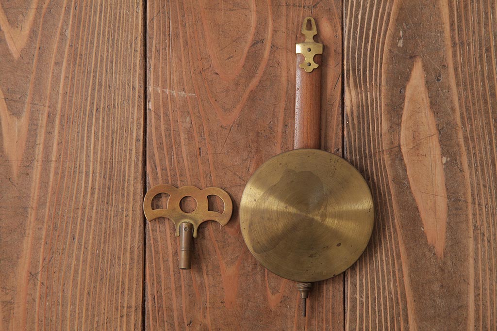 ビンテージ雑貨 堀田時計店 N.H.T ゼンマイ式 アンティークペイントがおしゃれな振り子掛時計(柱時計、壁掛け時計)(R-037529)