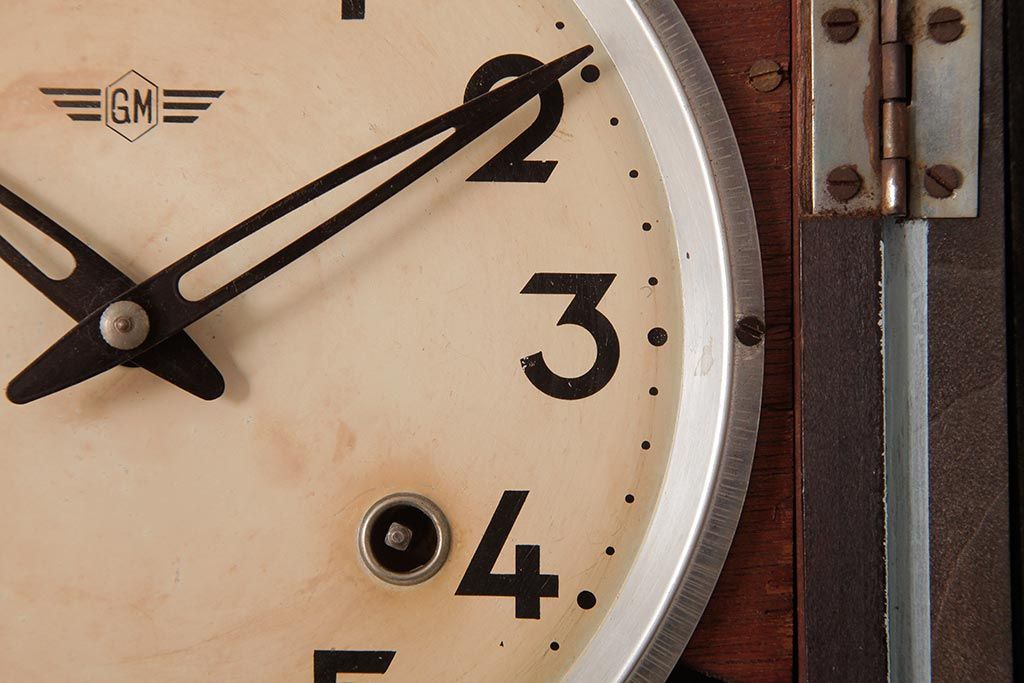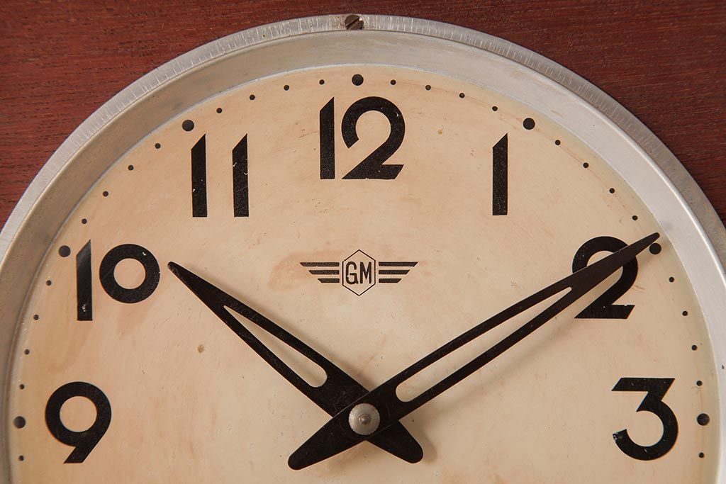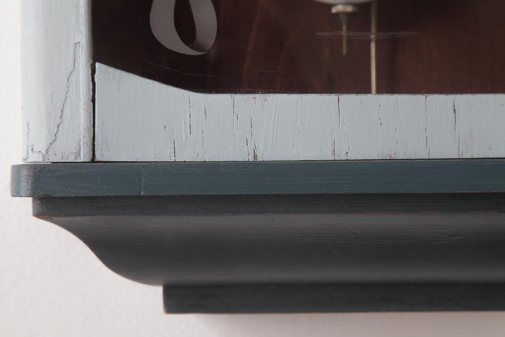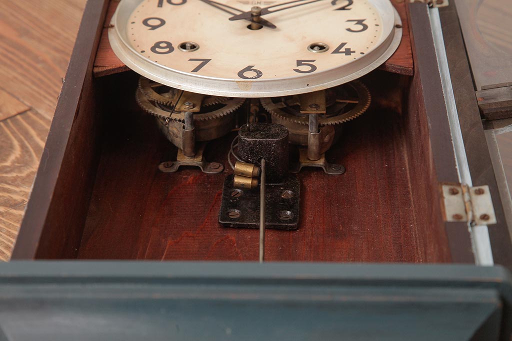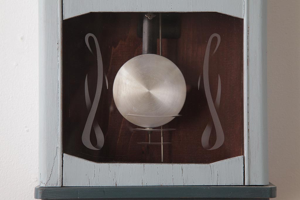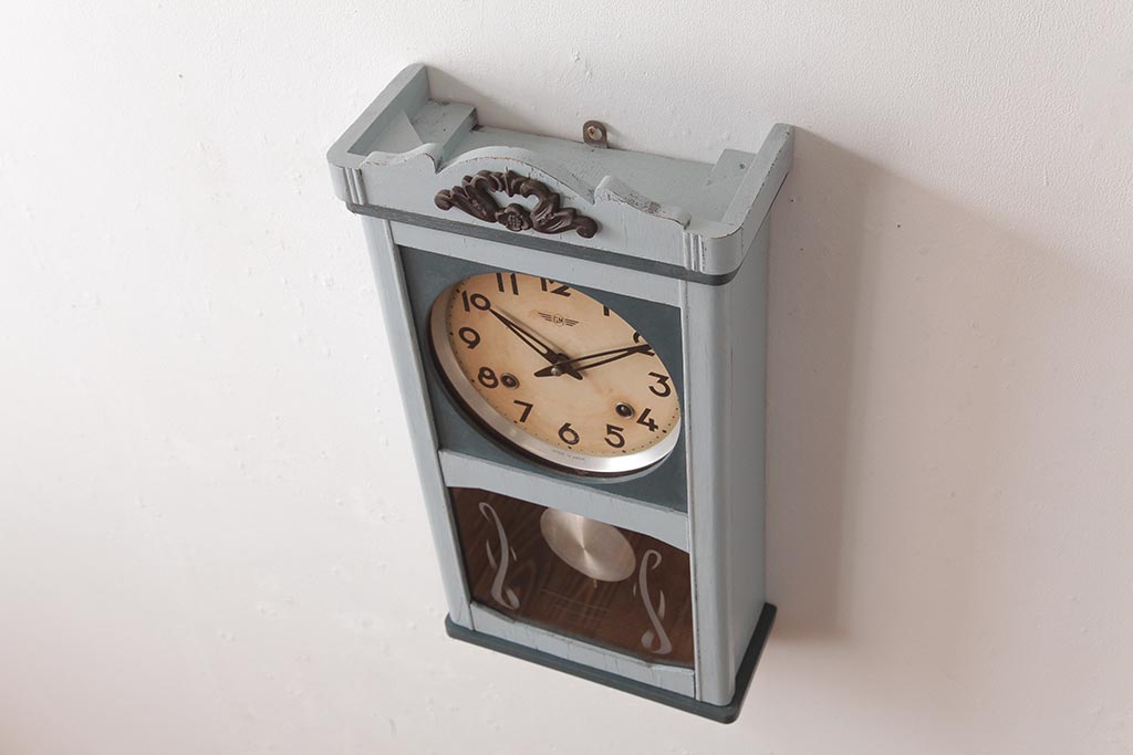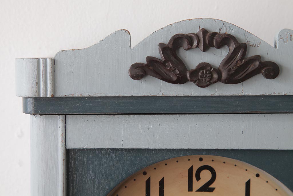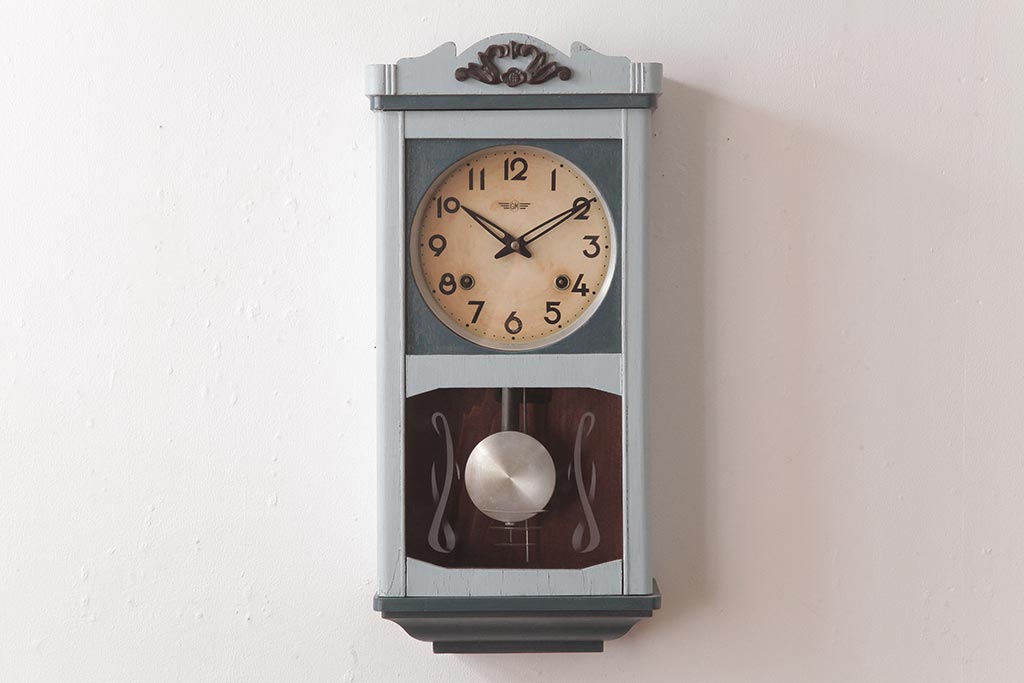 時計> 掛け時計 > アンティーク雑貨 GMマーク ゼンマイ式 レトロなペイントがお洒落な掛け時計(振り子時計、柱時計)(R-037530)