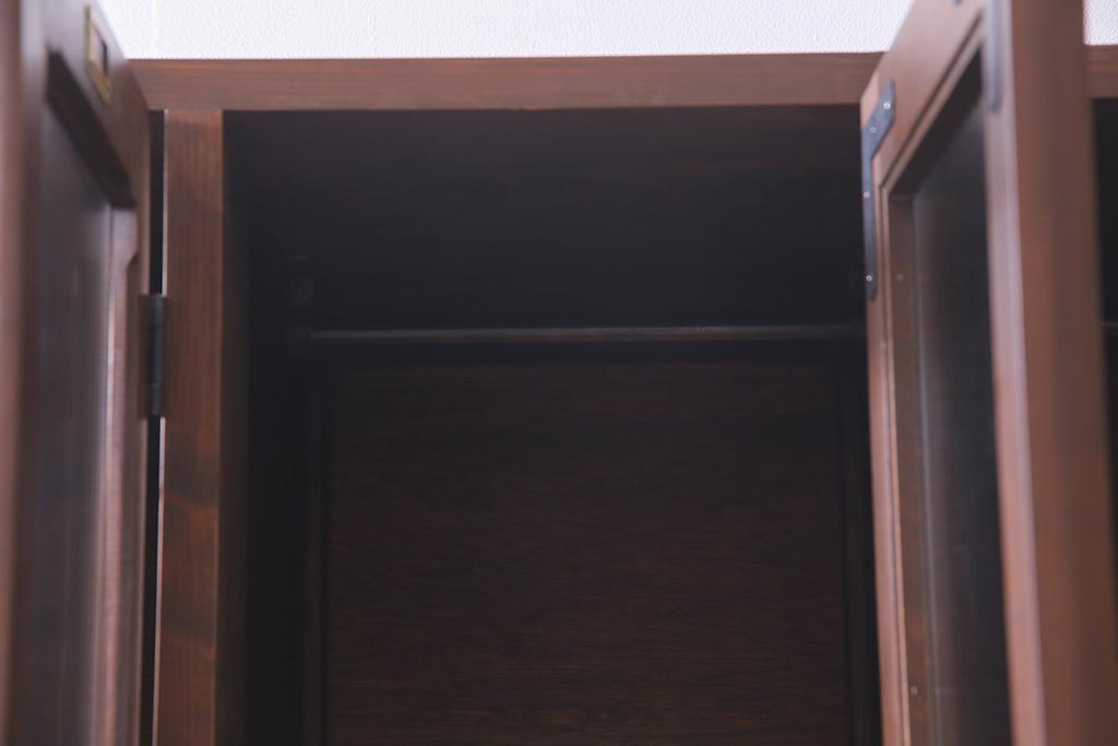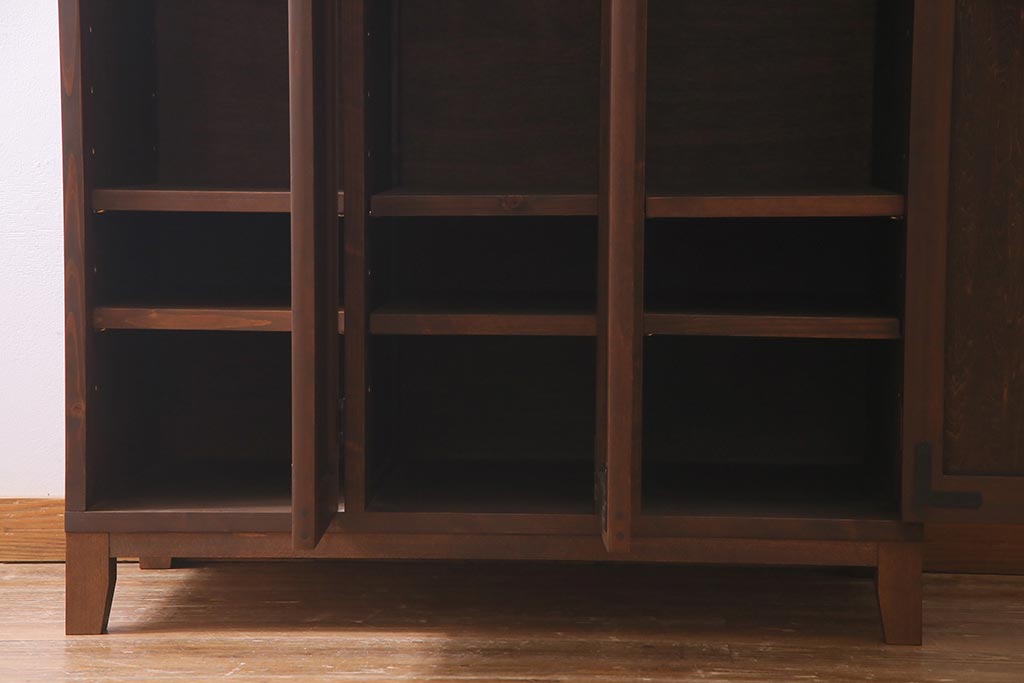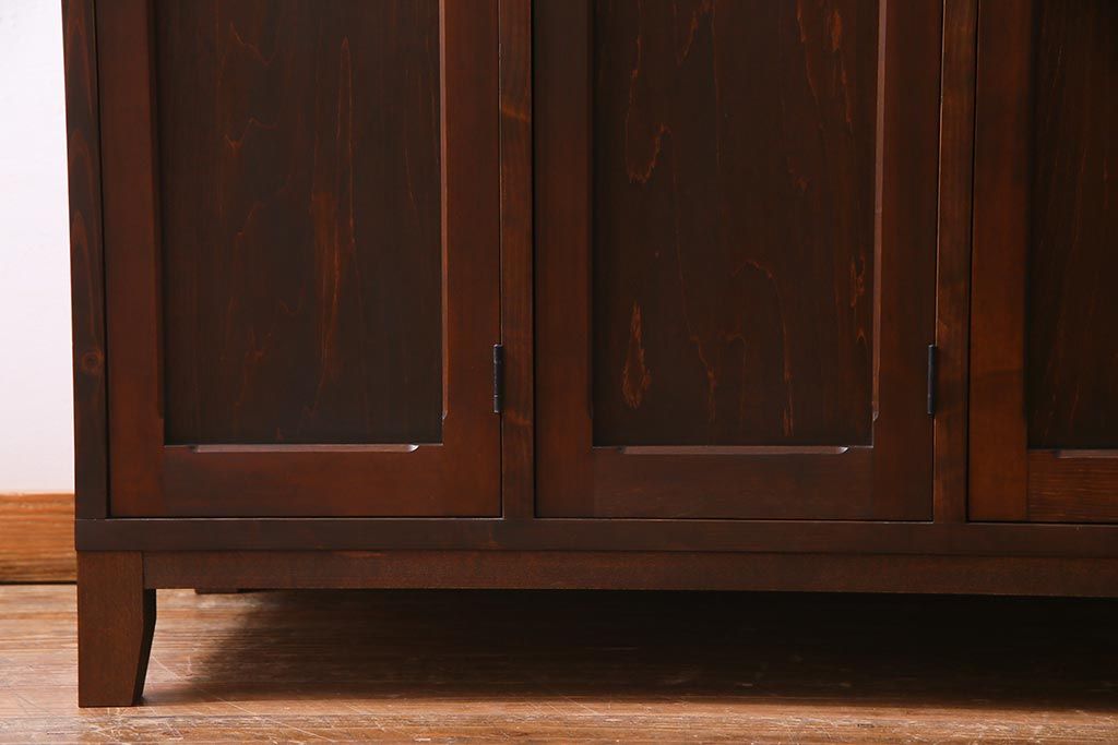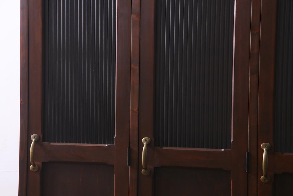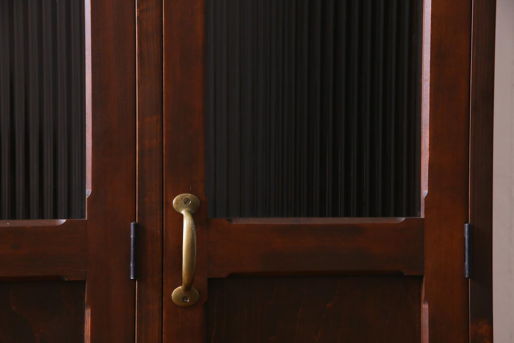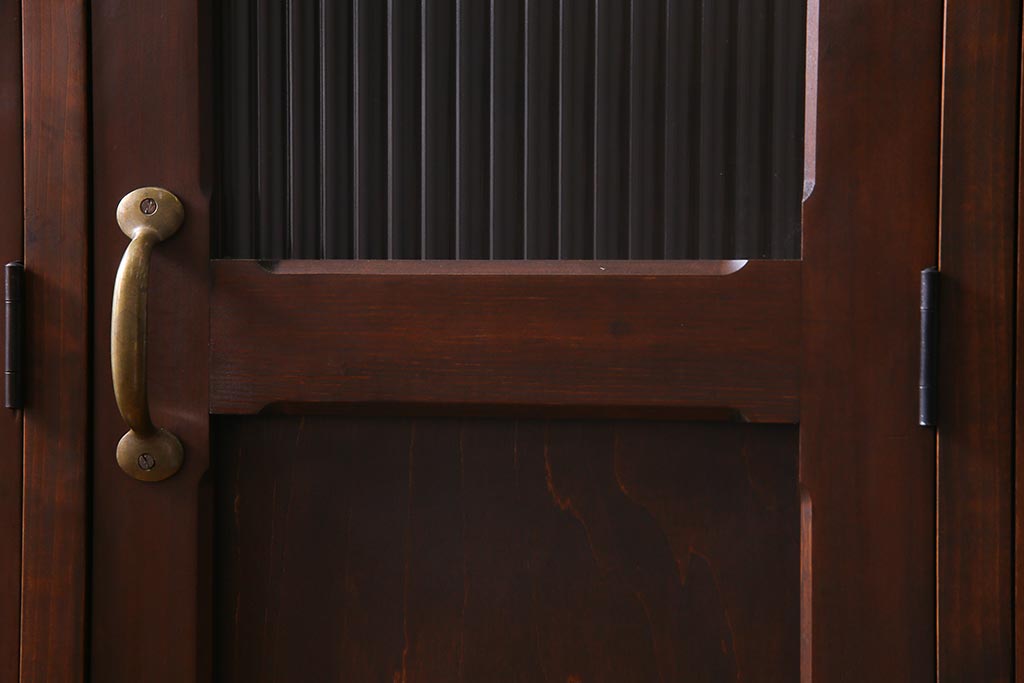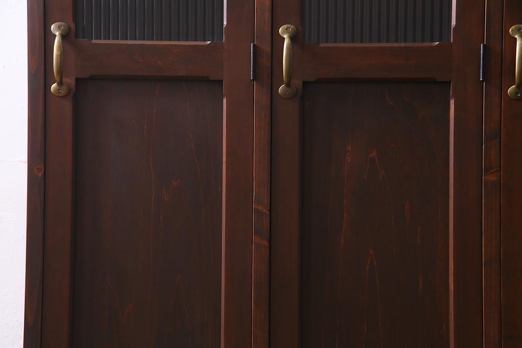 ラフジュ工房オリジナル ヒノキ無垢材・ヒバ材 モールガラス入り レトロな趣漂う3人用ロッカー(ワードローブ)(R-037541)