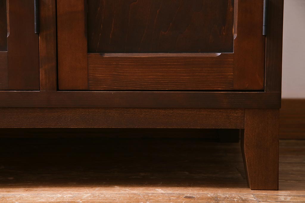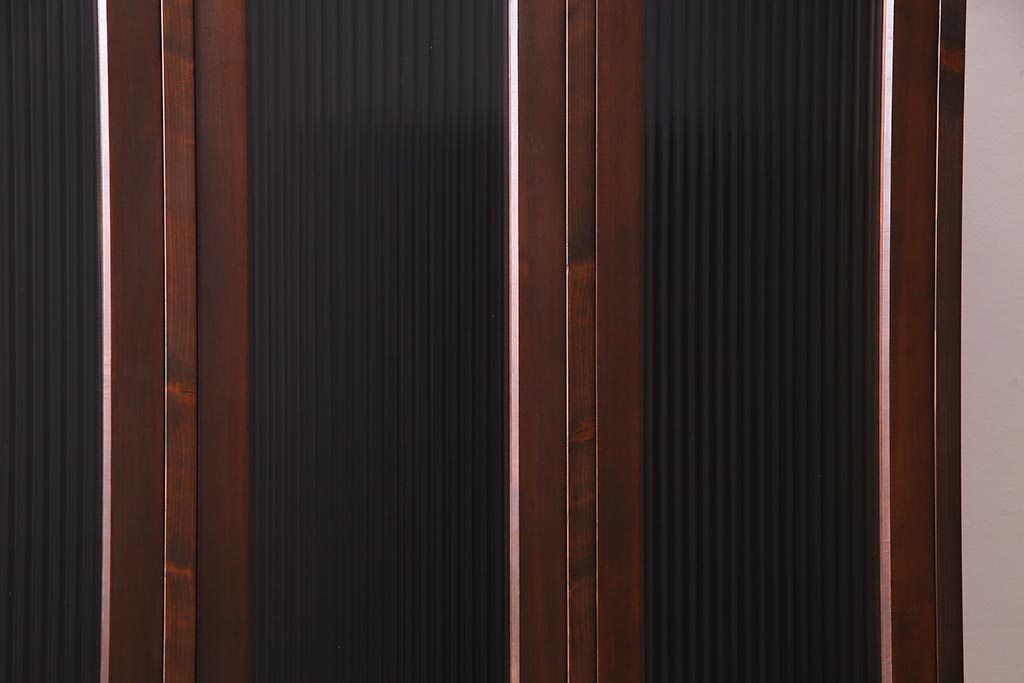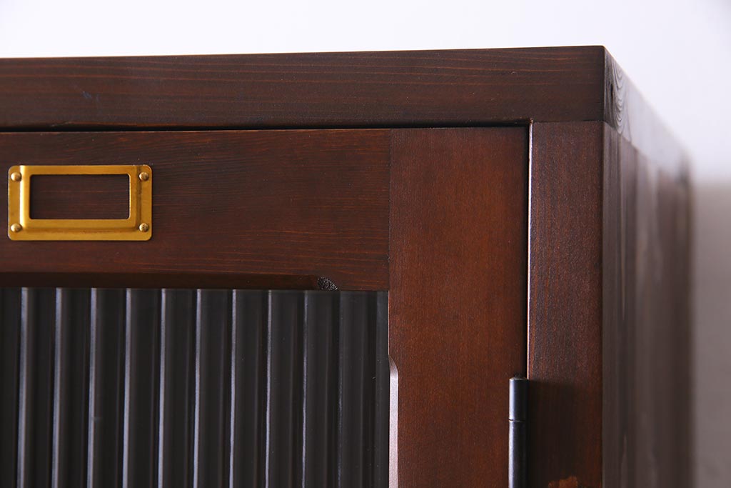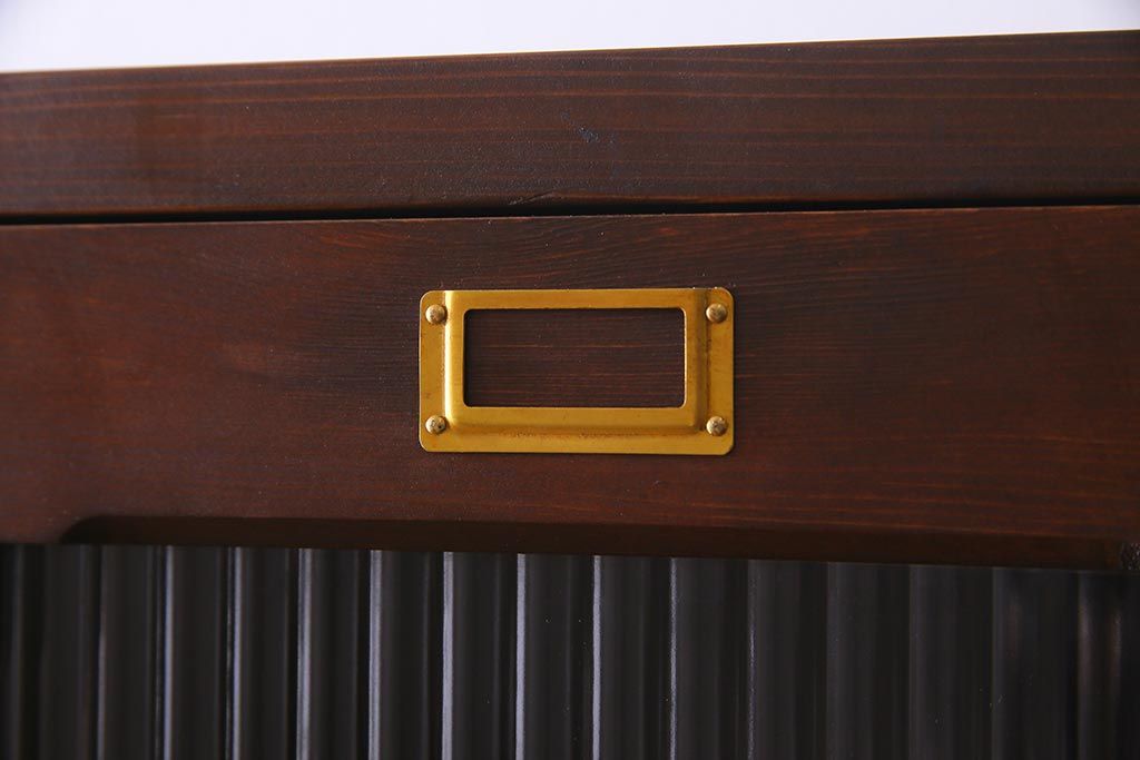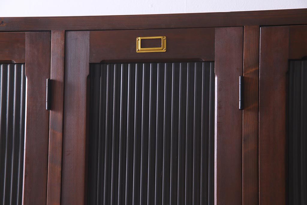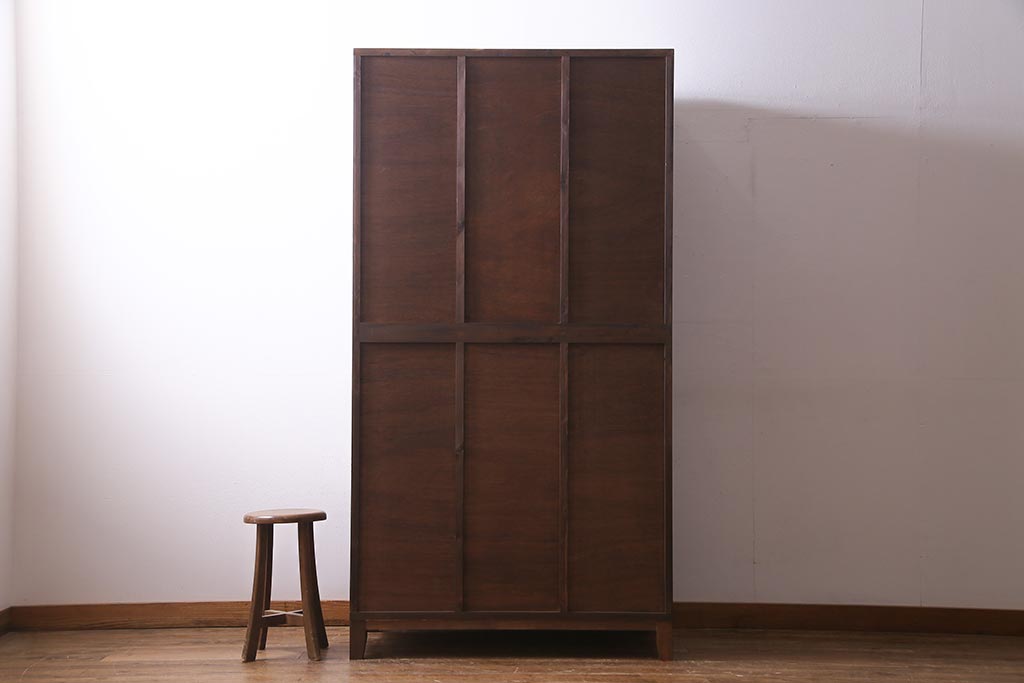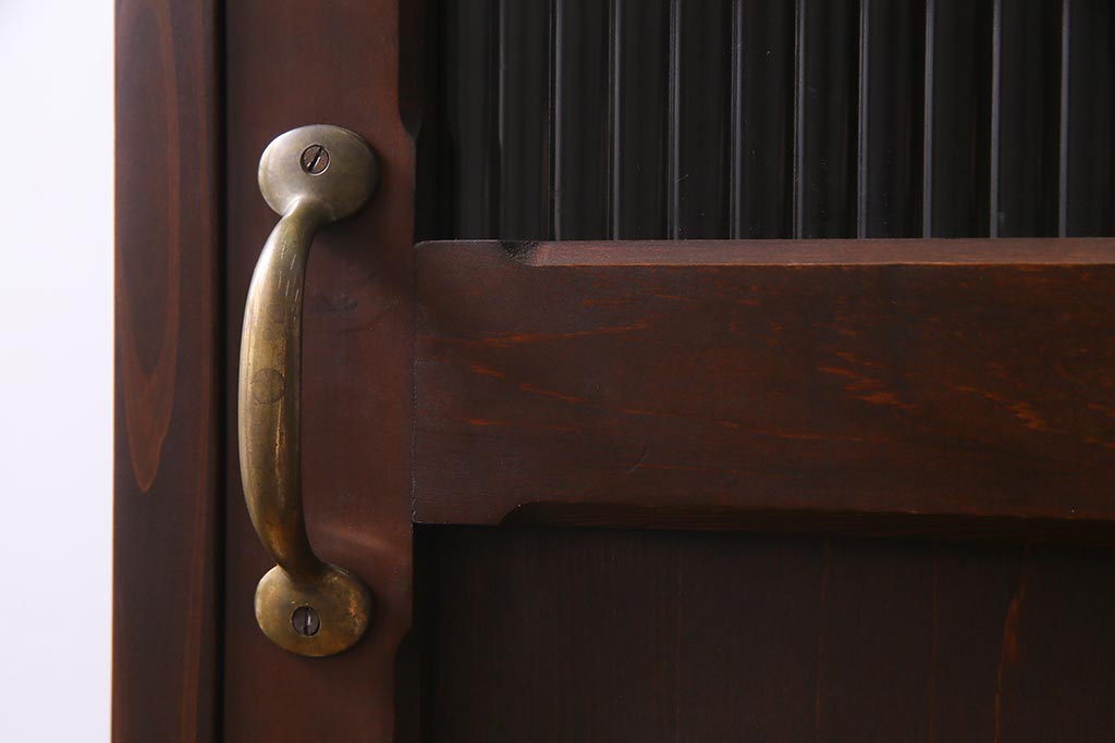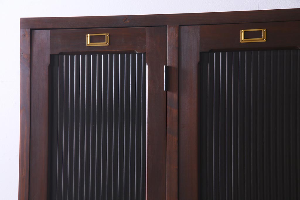 ラフジュ工房オリジナル ヒノキ無垢材・ヒバ材 モールガラス入り レトロな趣漂う3人用ロッカー(ワードローブ)(R-037541)