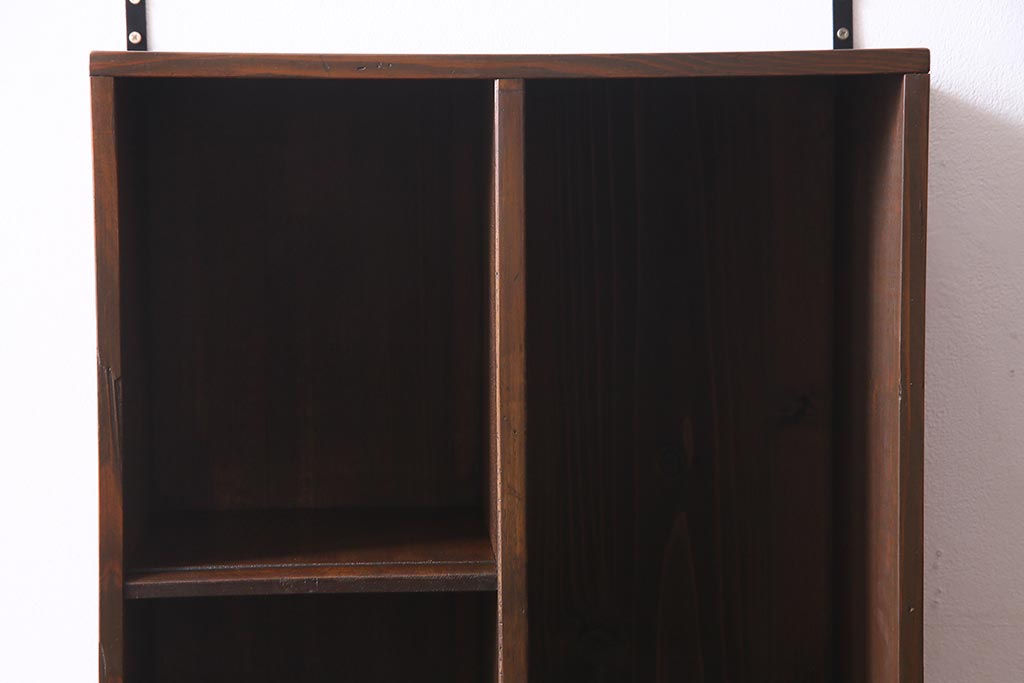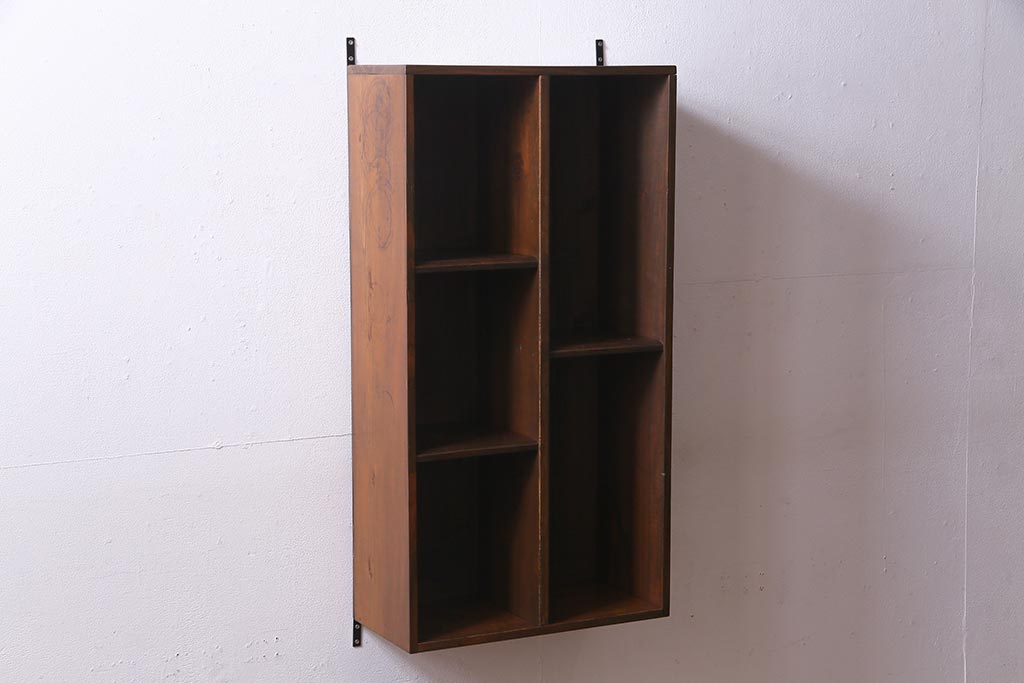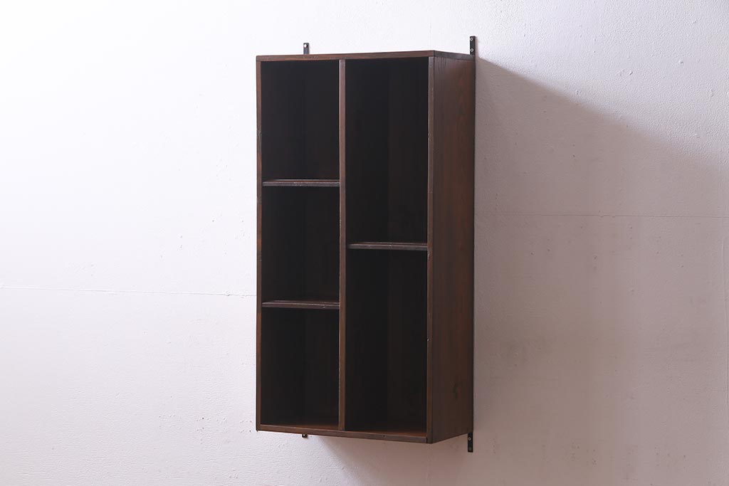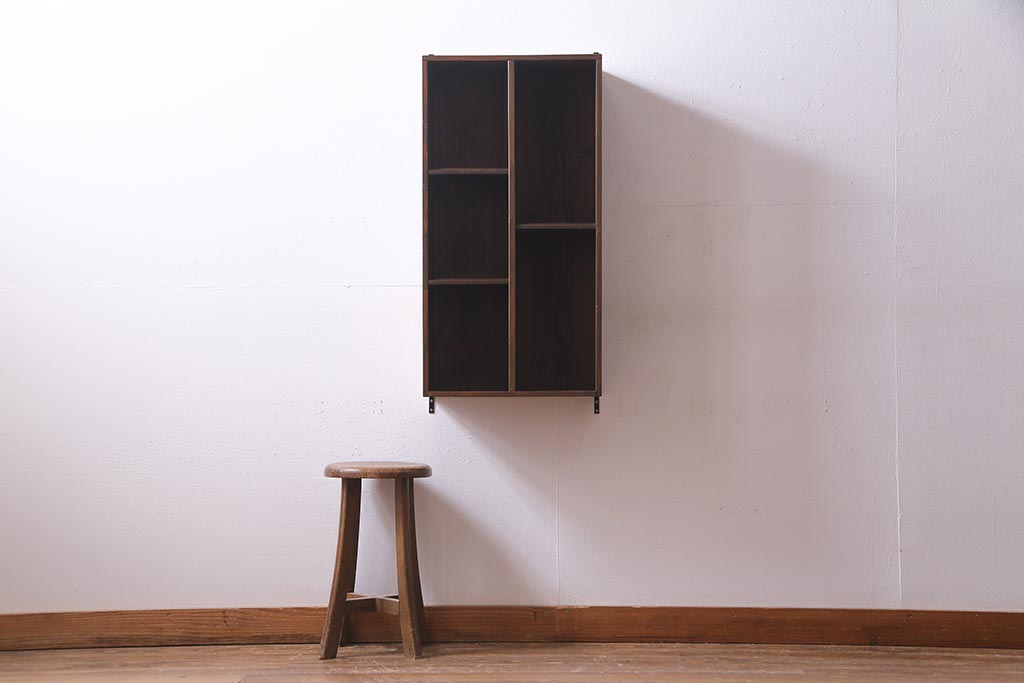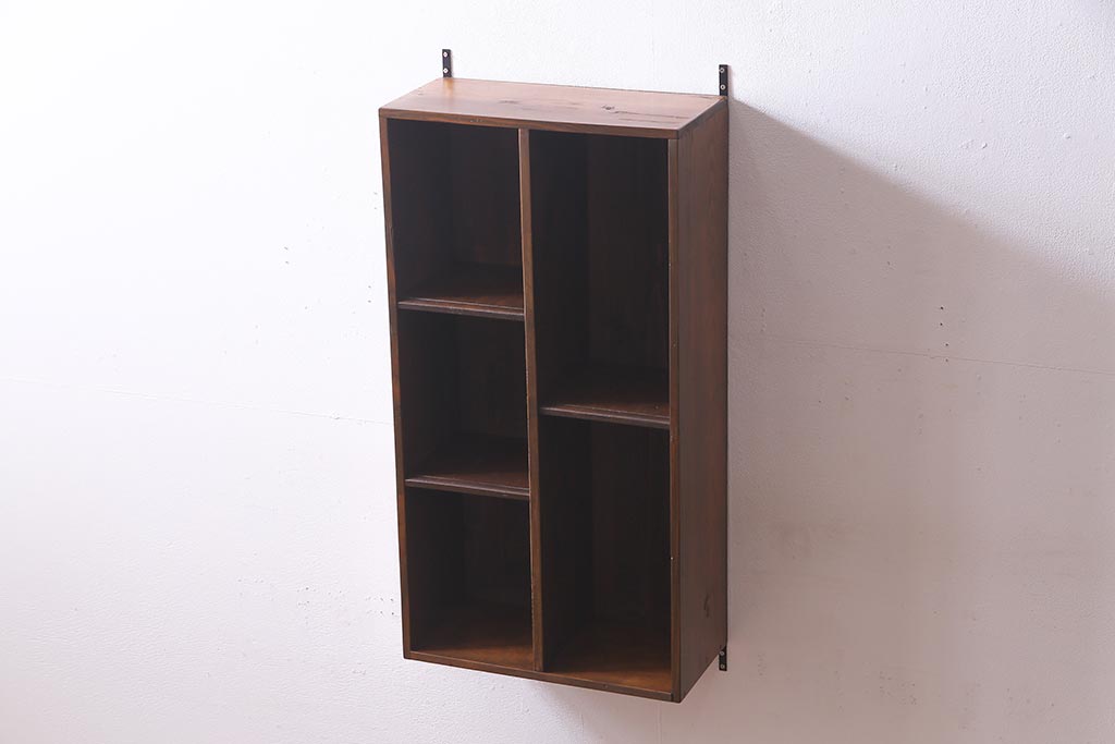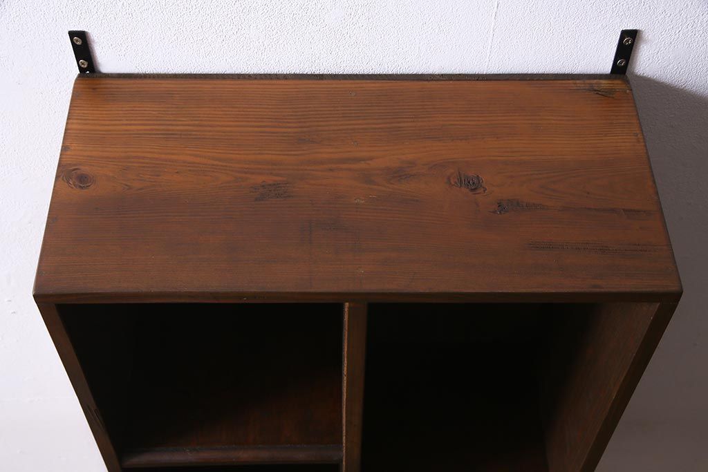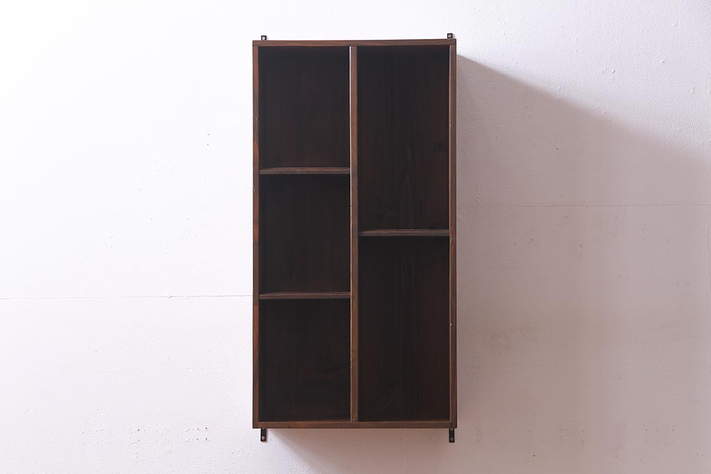 ラフジュ工房オリジナル 古材リメイク家具 ディスプレイが映えるレトロな壁掛け収納棚(ウォールシェルフ、ウォールラック、飾り棚)(R-037582)