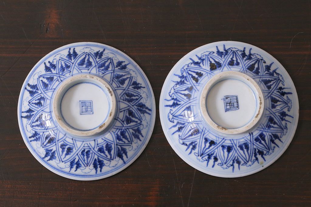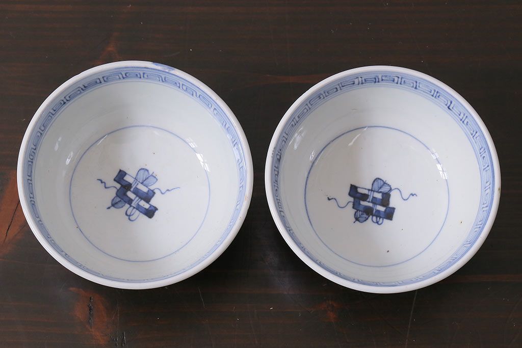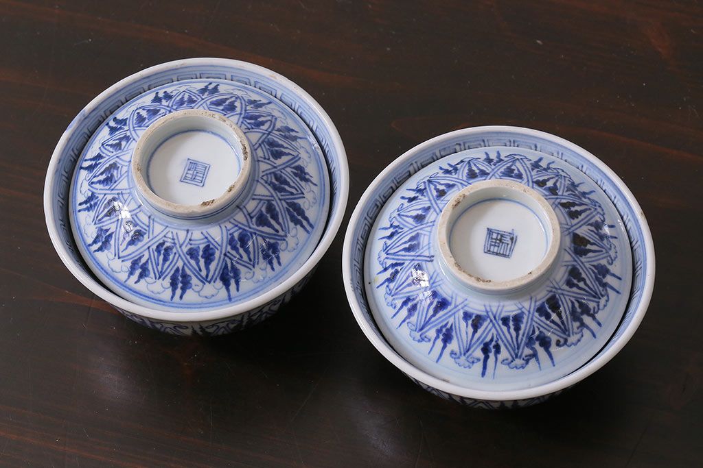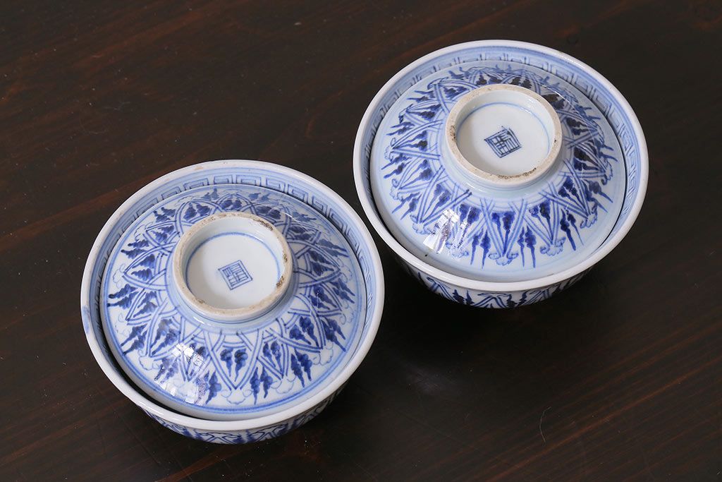 ラフジュ工房> 骨董・美術品 > アンティーク雑貨 古民具・骨董 味のある絵柄の蓋茶碗2客セット(和食器)(R-037292)
