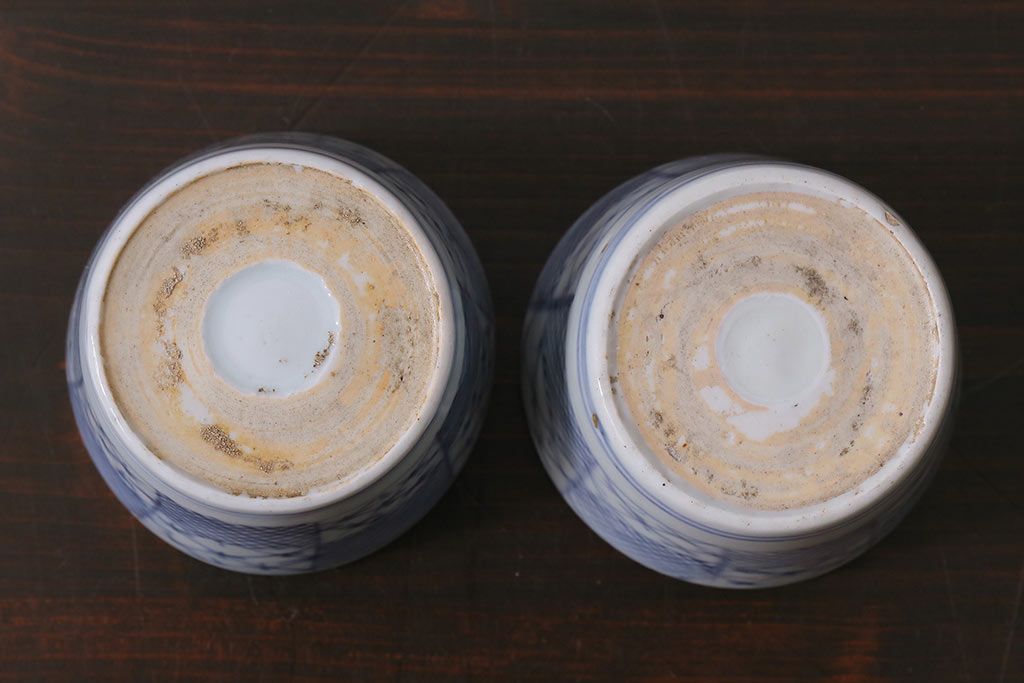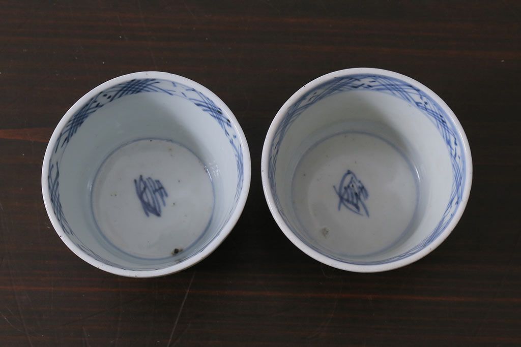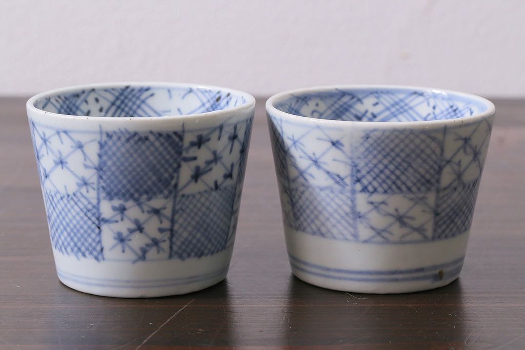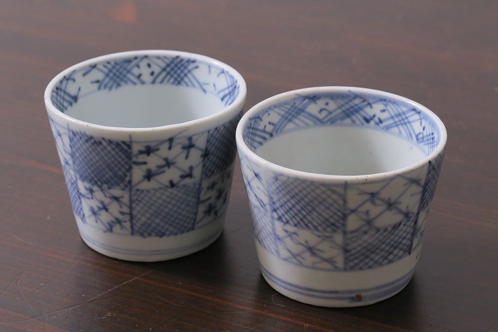 アンティーク雑貨 江戸後期 古伊万里 幾何学蕎麦猪口2個セット(和食器)(R-037232)