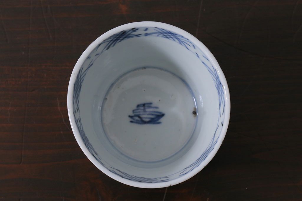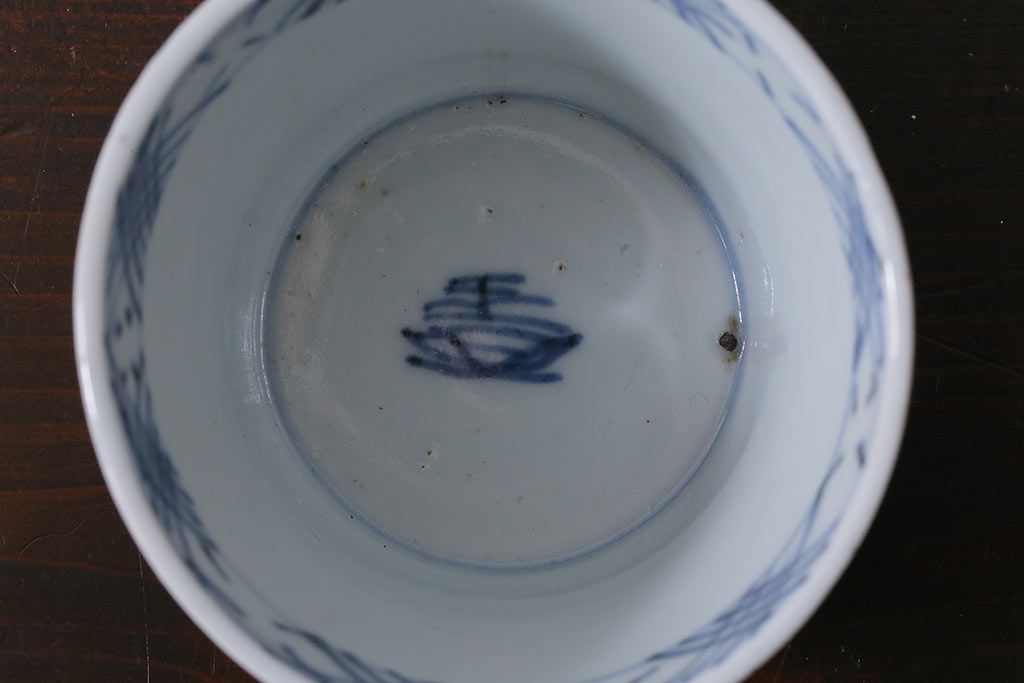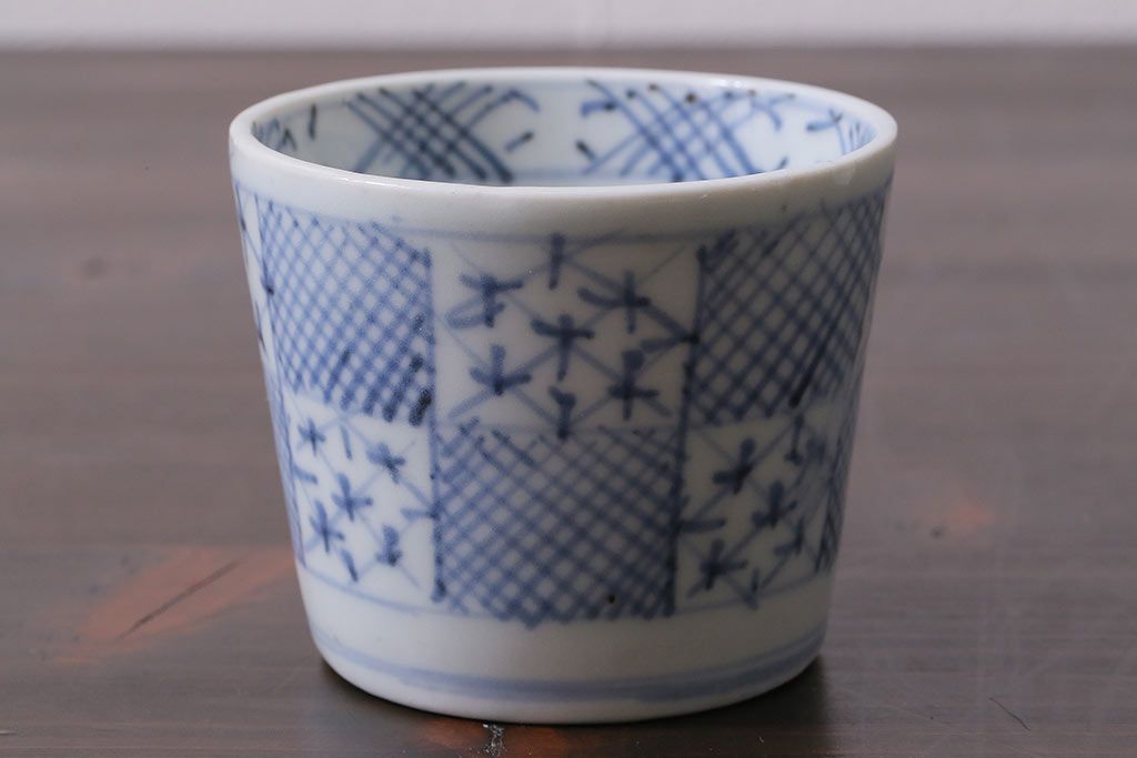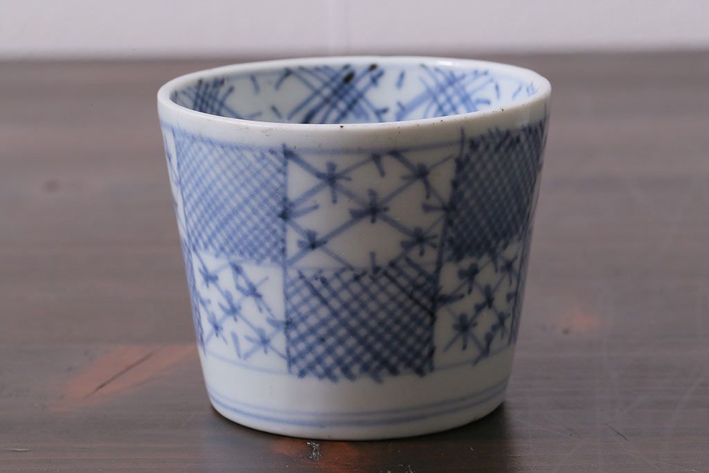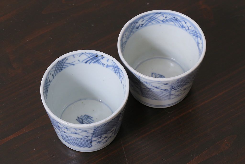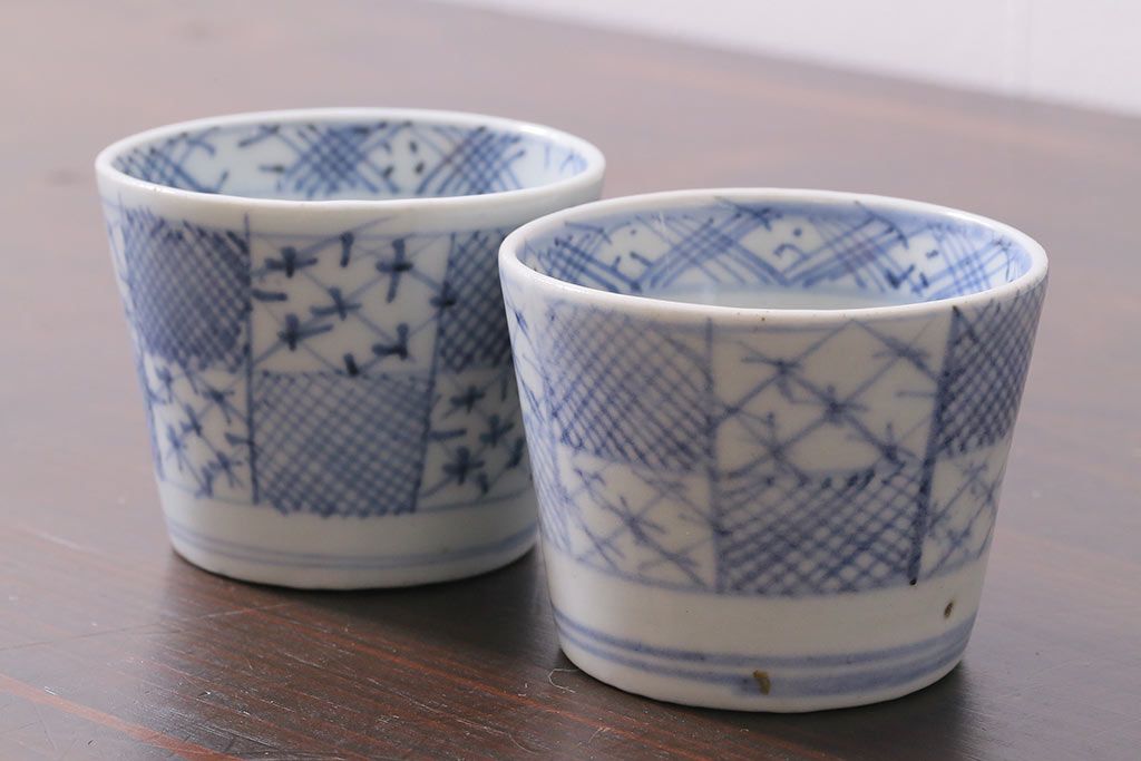ラフジュ工房> 骨董・美術品> 骨董-陶磁器 > アンティーク雑貨 江戸後期 古伊万里 幾何学蕎麦猪口2個セット(和食器)(R-037232)