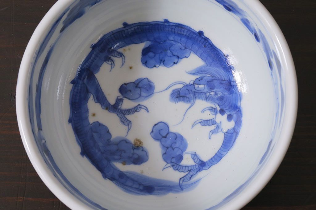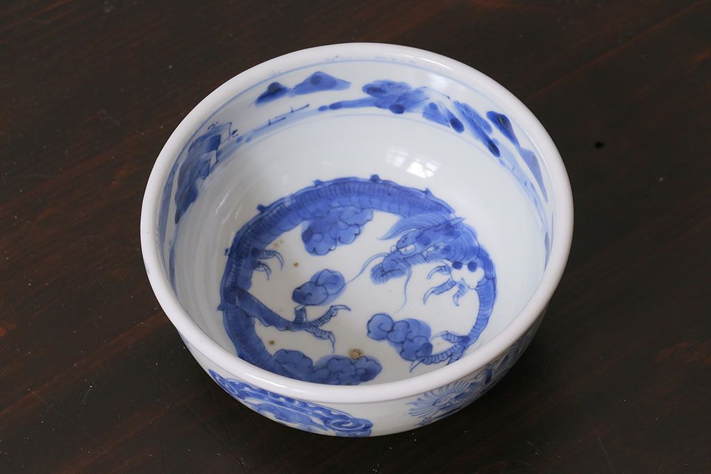 ラフジュ工房> 骨董・美術品> 骨董-陶磁器 > アンティーク雑貨 江戸期 古伊万里 染付 雲龍文 深鉢(深皿)(R-037295)