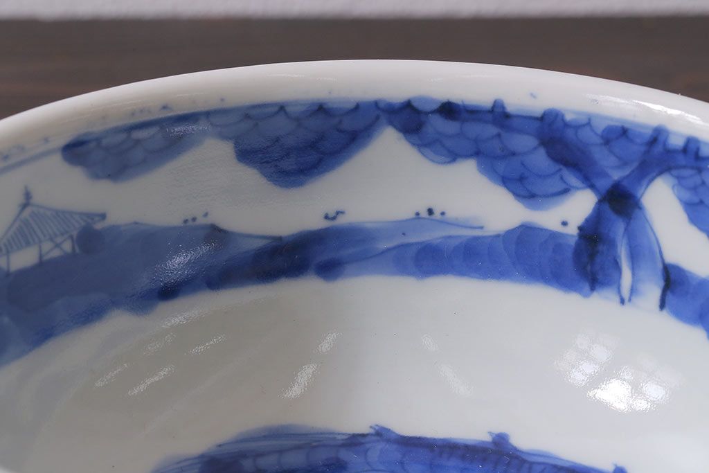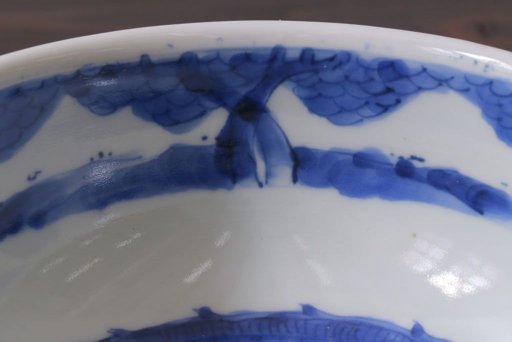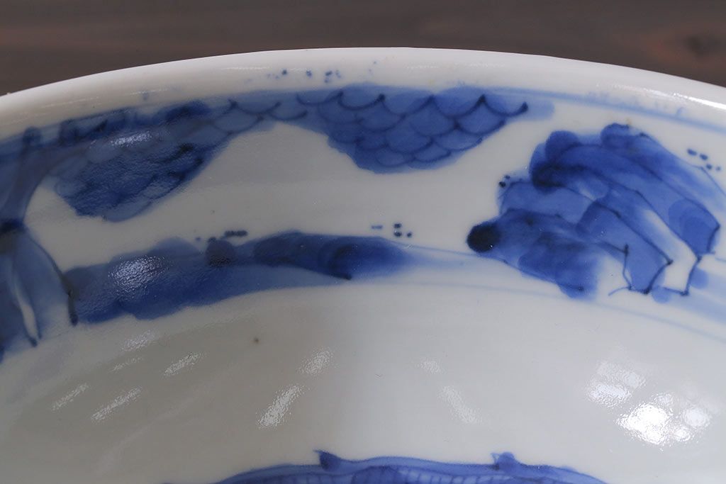 アンティーク雑貨 江戸期 古伊万里 染付 雲龍文 深鉢(深皿)(R-037295)