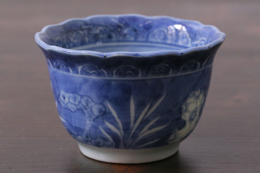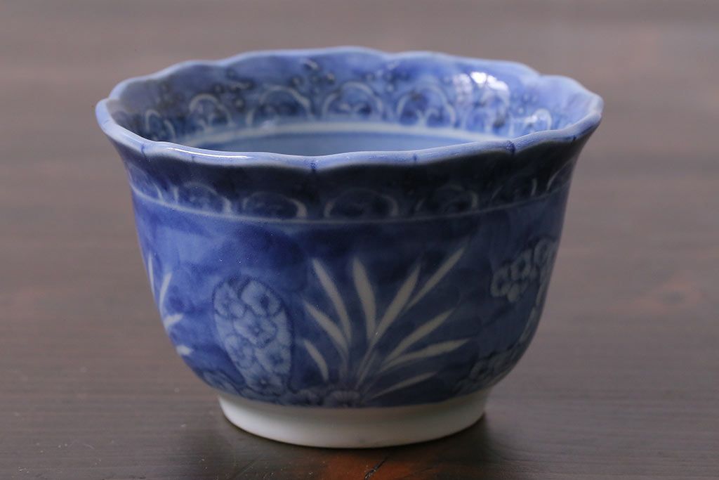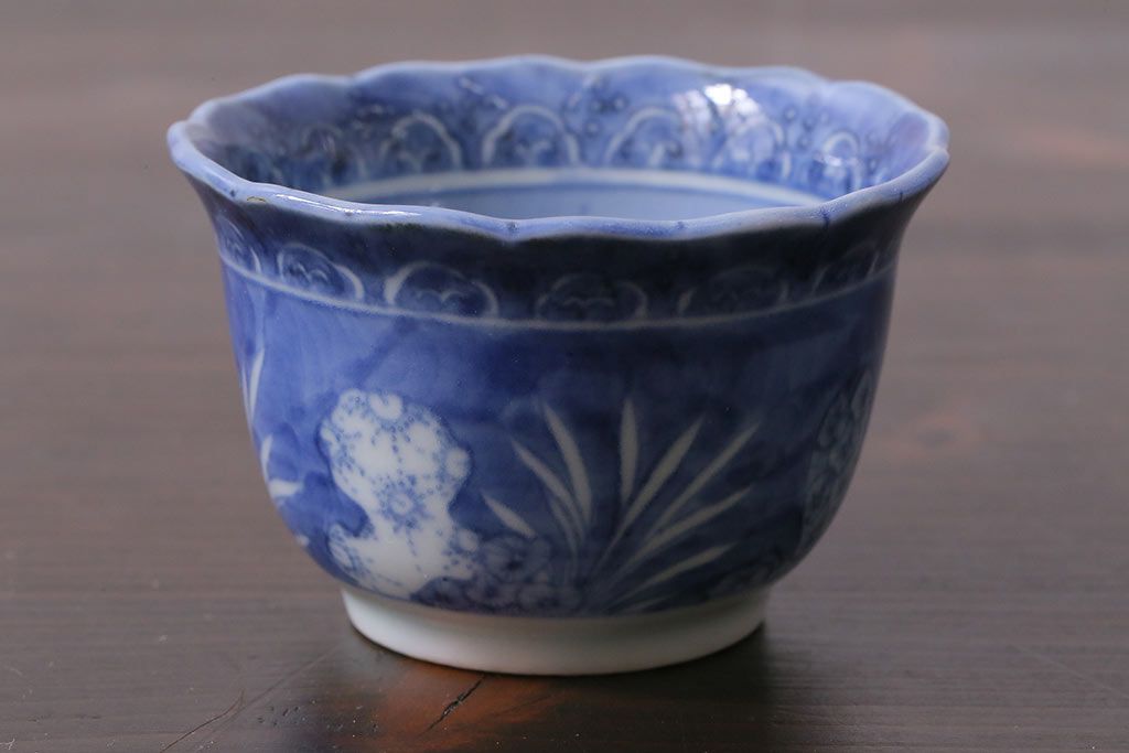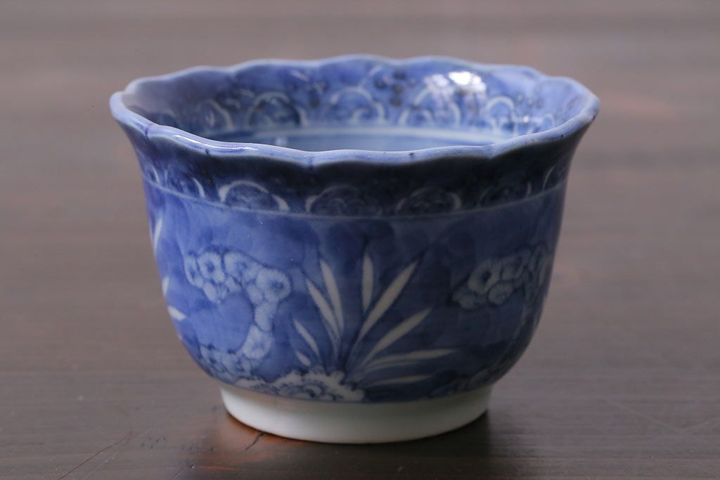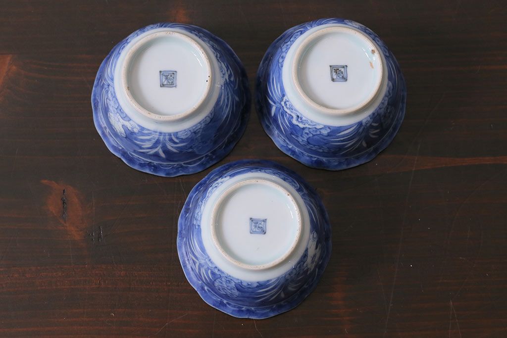アンティーク雑貨 江戸期 古伊万里 染付 湯呑3客セット(向付、蕎麦猪口)(R-037233)